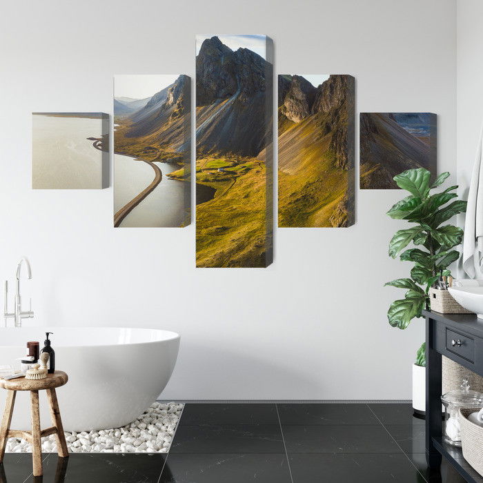 Motivet 3d aerial view of icelandic återges med hög färgprecision och detaljrikedom tack vare HP Latex-teknologi. Trycket sker med vattenbaserade, luktfria och GREENGUARD Gold-certifierade bläck som ger en upplösning på upp till 300 DPI. Färgerna är UV-beständiga och behåller sin styrka även i ljusa rum, vilket gör tavlan lämplig för både hem- och offentliga miljöer.