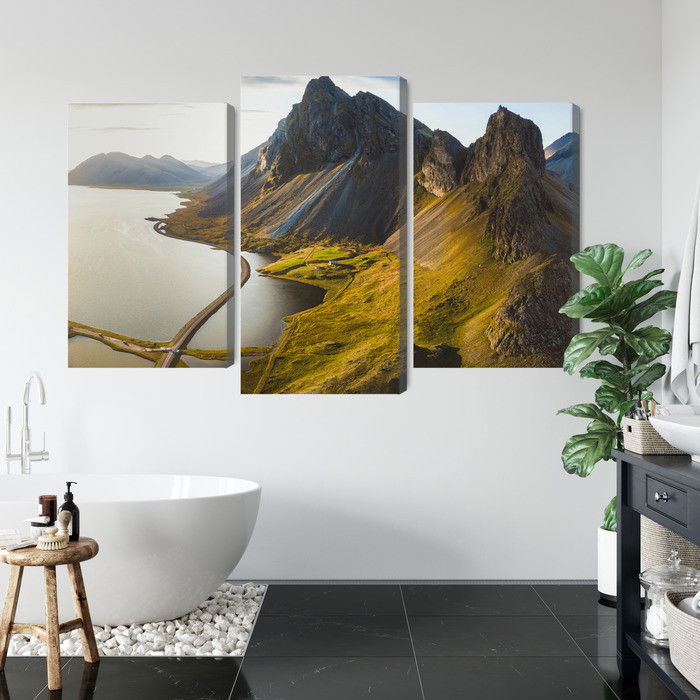 Motivet 3d aerial view of icelandic återges med hög färgprecision och detaljrikedom tack vare HP Latex-teknologi. Trycket sker med vattenbaserade, luktfria och GREENGUARD Gold-certifierade bläck som ger en upplösning på upp till 300 DPI. Färgerna är UV-beständiga och behåller sin styrka även i ljusa rum, vilket gör tavlan lämplig för både hem- och offentliga miljöer.
