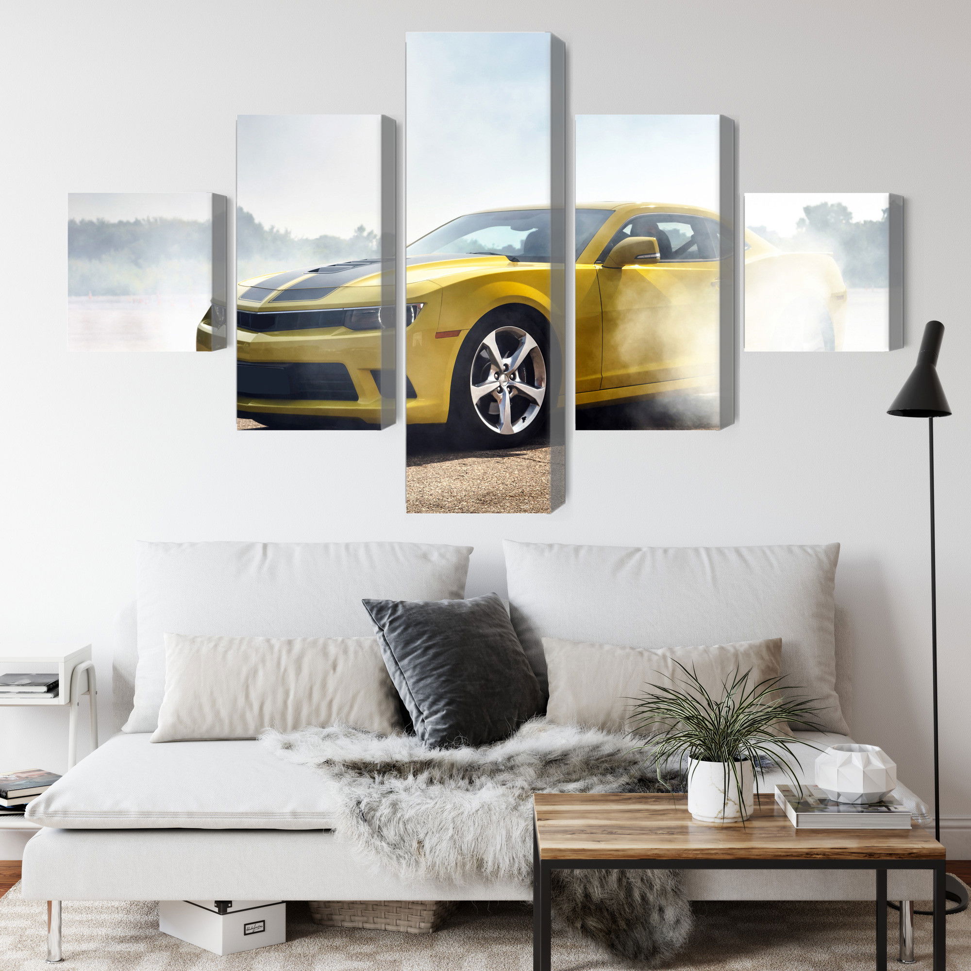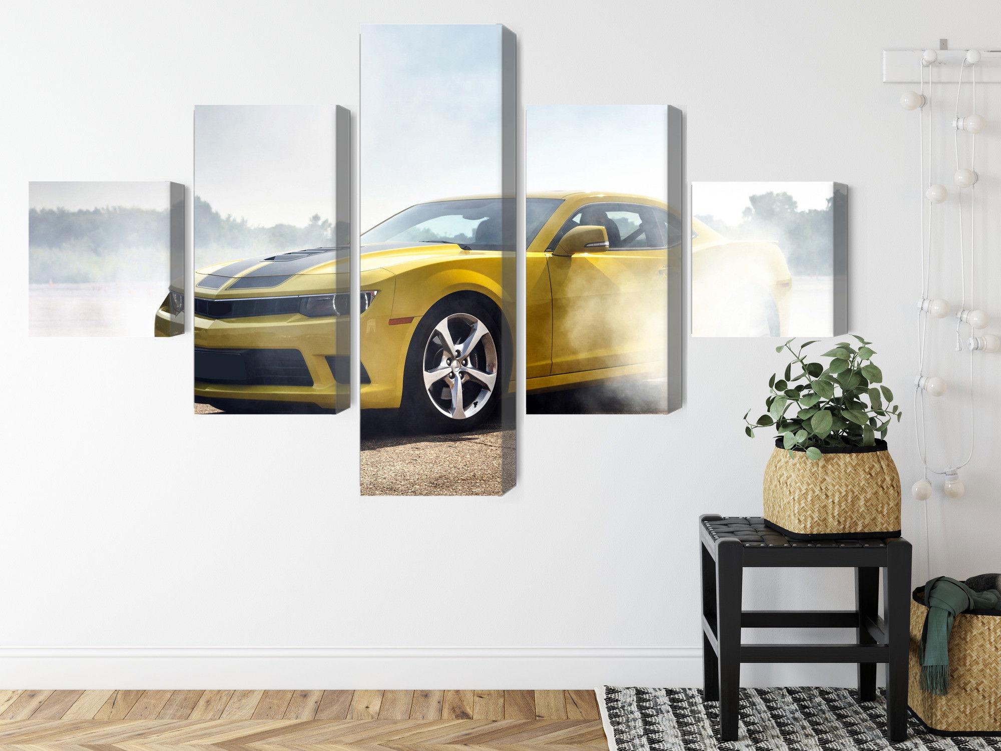 Ljuddämpande tavla – 3d drifting yellow car för lugnare rum och mjukare akustik