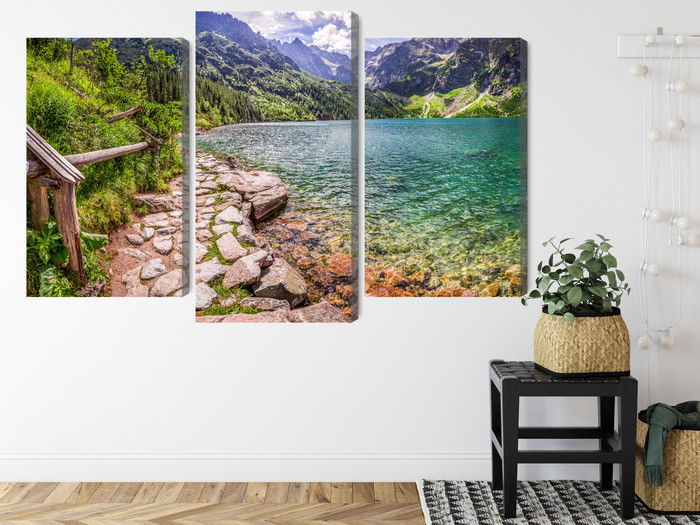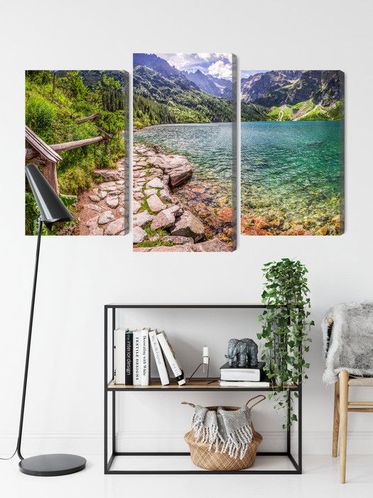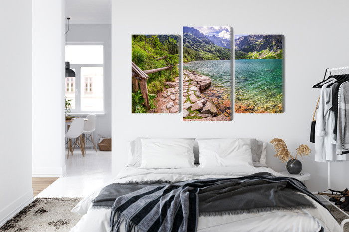 Varje tavla monteras på en massiv fururam. Format upp till 70×50 cm har en ram på 15 mm, medan format från 90×60 cm och uppåt har en ram på 20 mm. Den exakta dukspänningen gör att tavlan håller sin form över tid. Motivet 3d view of the lake trycks runt hela ramen vilket ger ett stilrent galleriuttryck där tavlan är lika vacker från sidan som framifrån. Kombinationen av rak dukspänning, rena linjer och korrekt tryck ger en professionell finish.