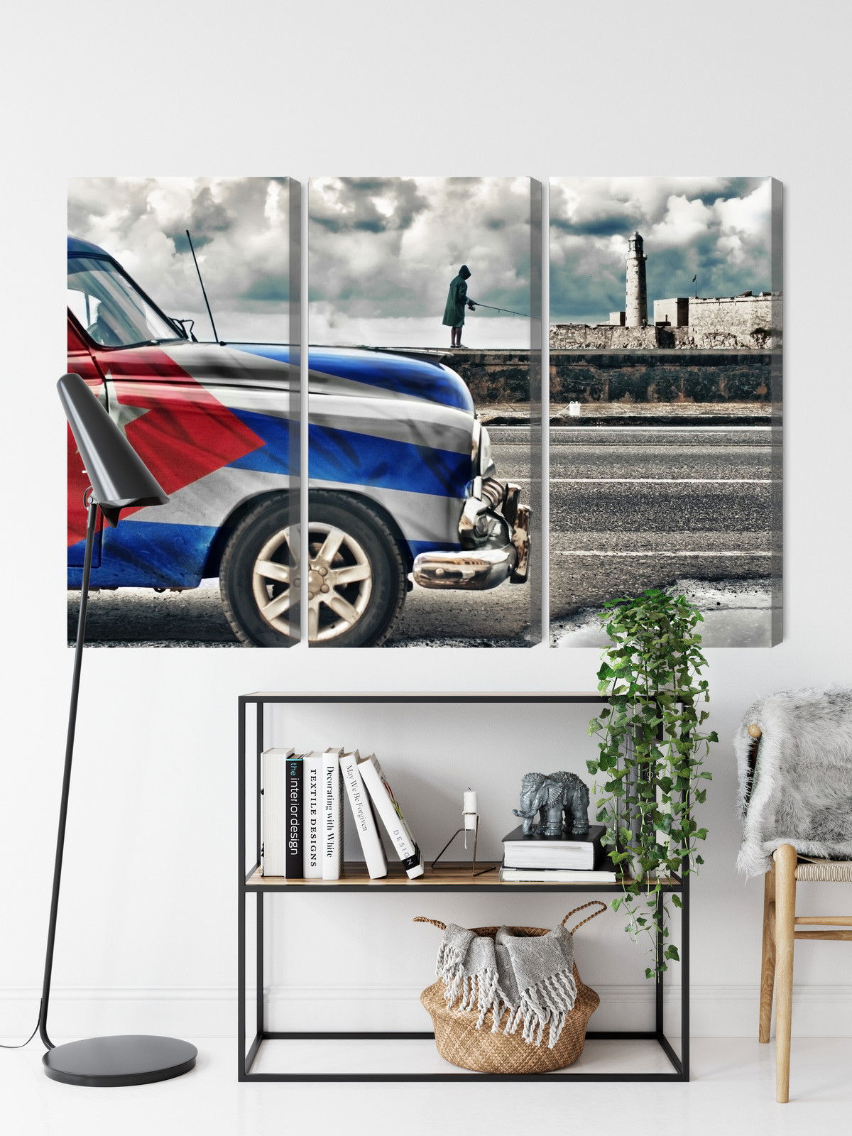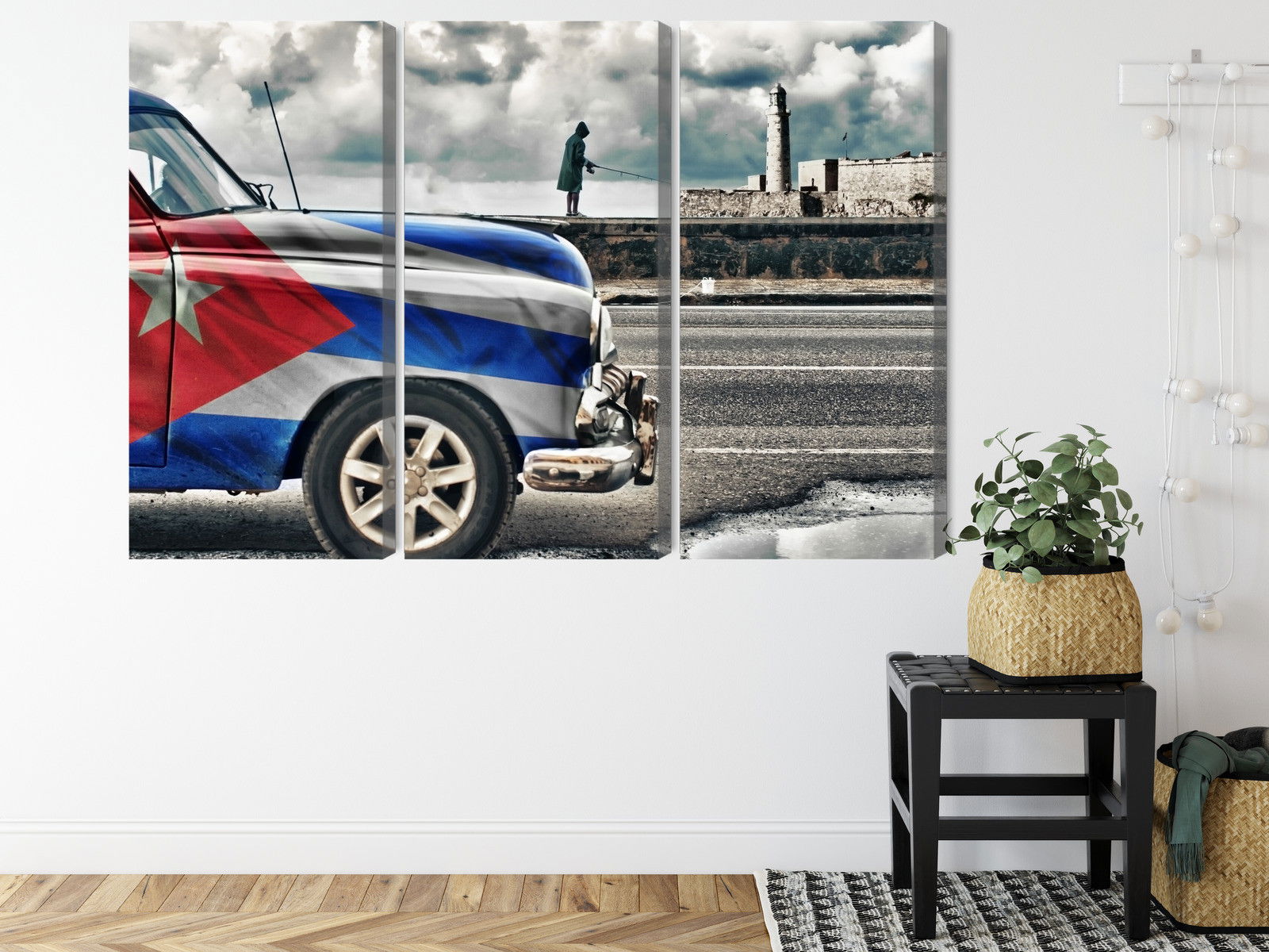 Ljuddämpande tavla – A car with a cuban flag för lugnare rum och mjukare akustik