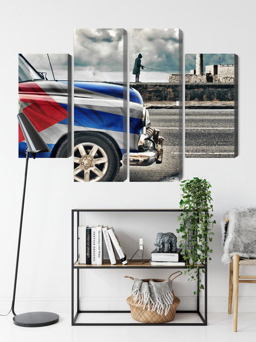 Ljuddämpande tavla – A car with a cuban flag för lugnare rum och mjukare akustik