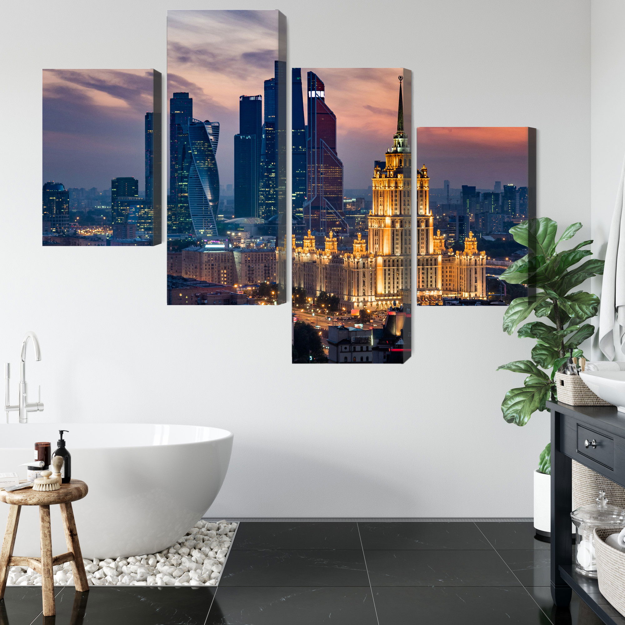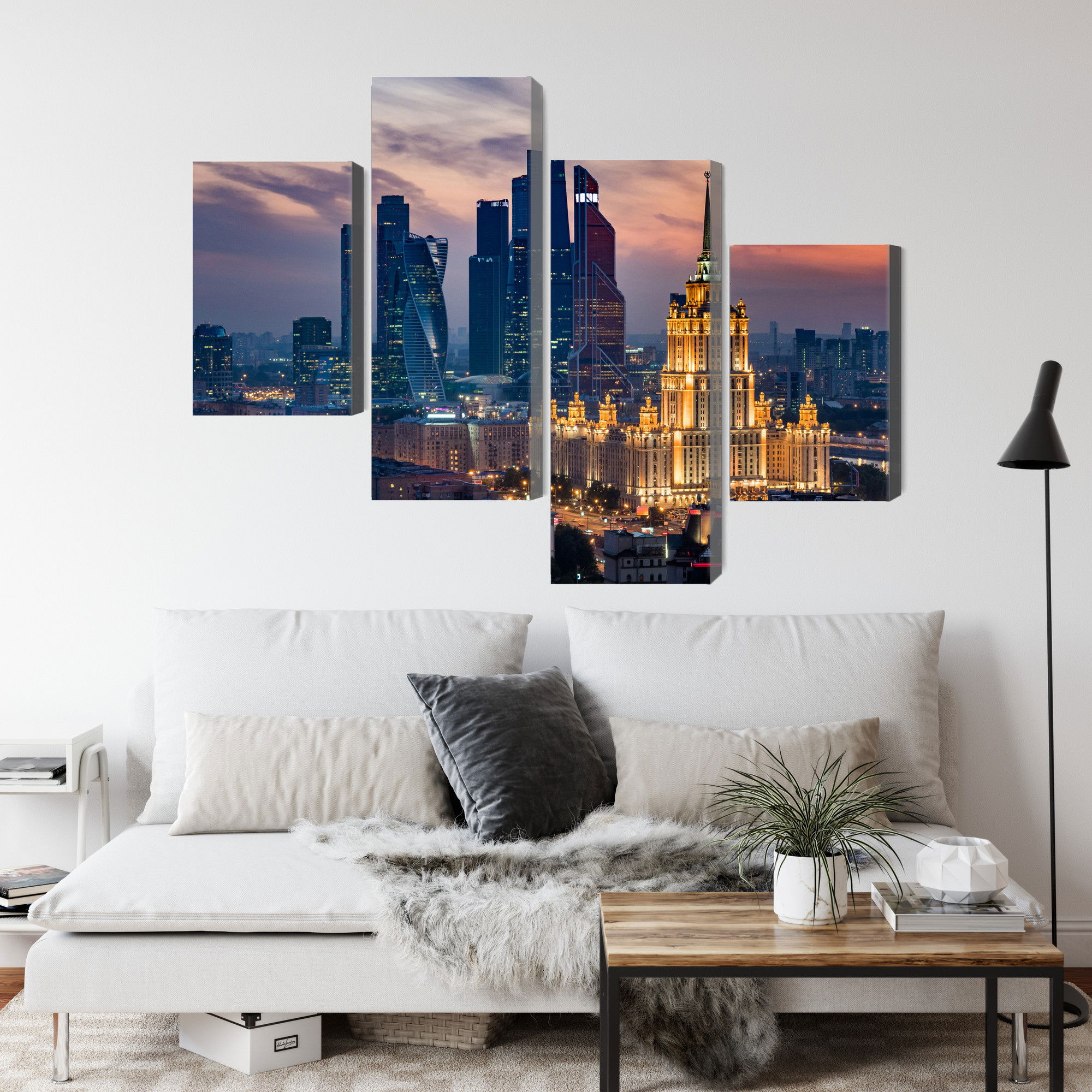 Motivet Aerial view of the moscow återges med hög färgprecision och detaljrikedom tack vare HP Latex-teknologi. Trycket sker med vattenbaserade, luktfria och GREENGUARD Gold-certifierade bläck som ger en upplösning på upp till 300 DPI. Färgerna är UV-beständiga och behåller sin styrka även i ljusa rum, vilket gör tavlan lämplig för både hem- och offentliga miljöer.