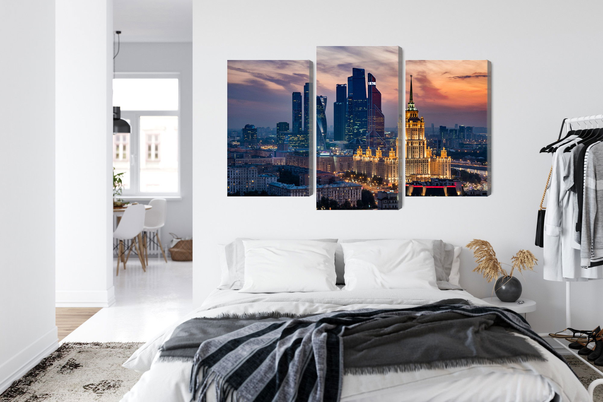 Varje tavla monteras på en massiv fururam. Format upp till 70×50 cm har en ram på 15 mm, medan format från 90×60 cm och uppåt har en ram på 20 mm. Den exakta dukspänningen gör att tavlan håller sin form över tid. Motivet Aerial view of the moscow trycks runt hela ramen vilket ger ett stilrent galleriuttryck där tavlan är lika vacker från sidan som framifrån. Kombinationen av rak dukspänning, rena linjer och korrekt tryck ger en professionell finish.