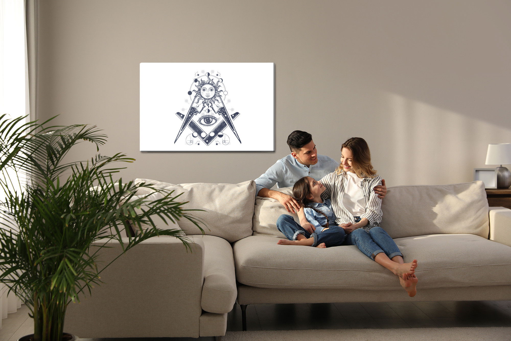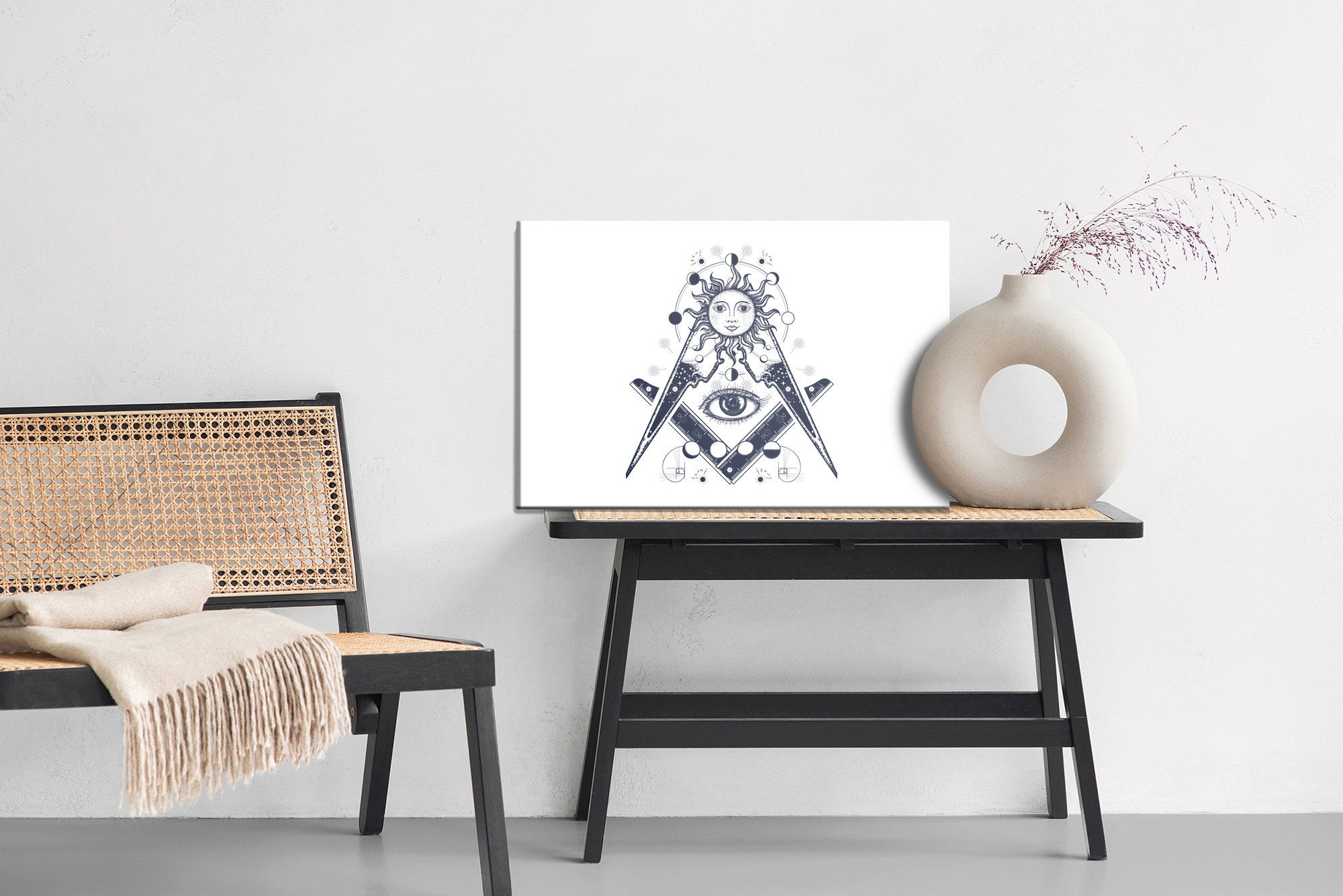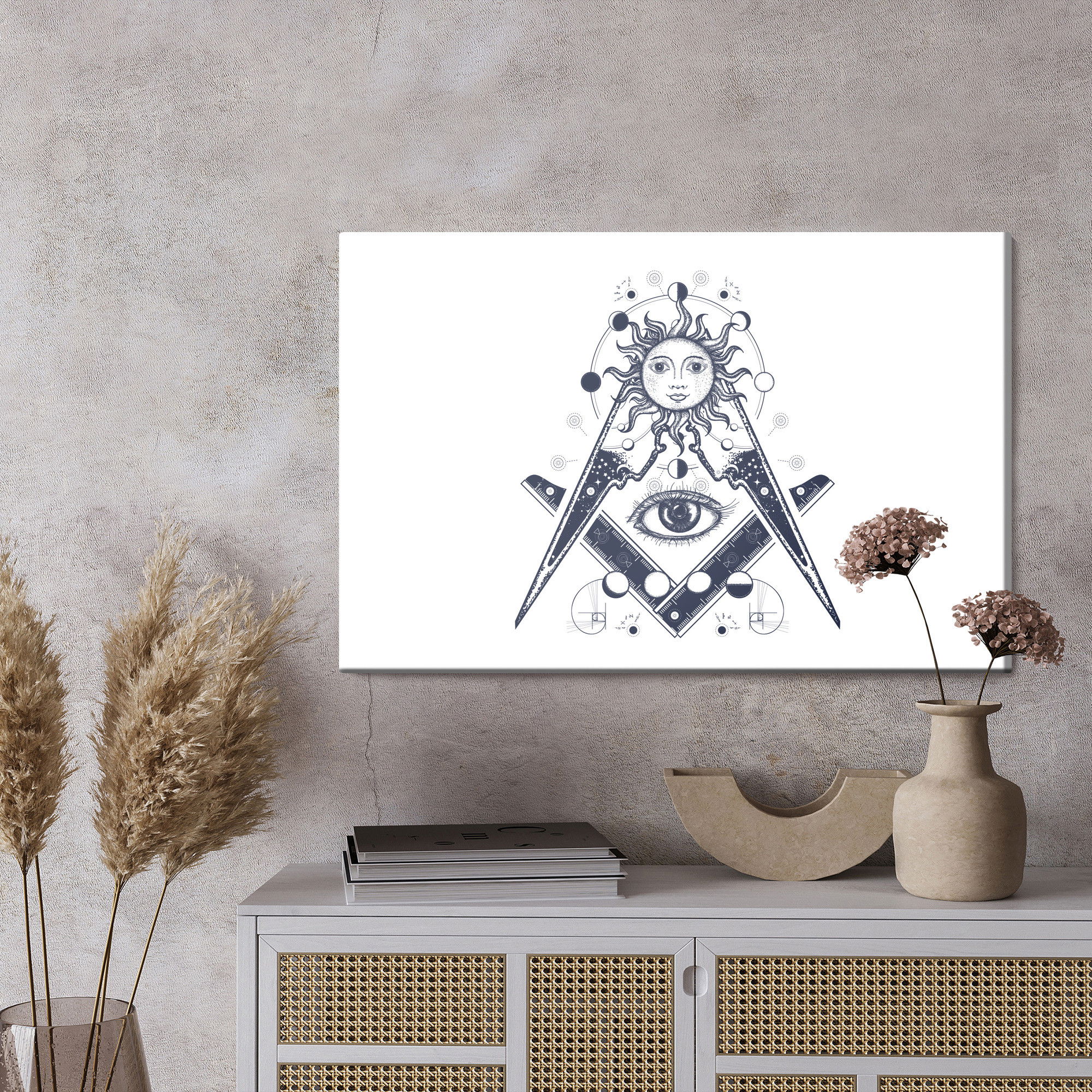 Motivet All seeing eye återges med hög färgprecision och detaljrikedom tack vare HP Latex-teknologi. Trycket sker med vattenbaserade, luktfria och GREENGUARD Gold-certifierade bläck som ger en upplösning på upp till 300 DPI. Färgerna är UV-beständiga och behåller sin styrka även i ljusa rum, vilket gör tavlan lämplig för både hem- och offentliga miljöer.