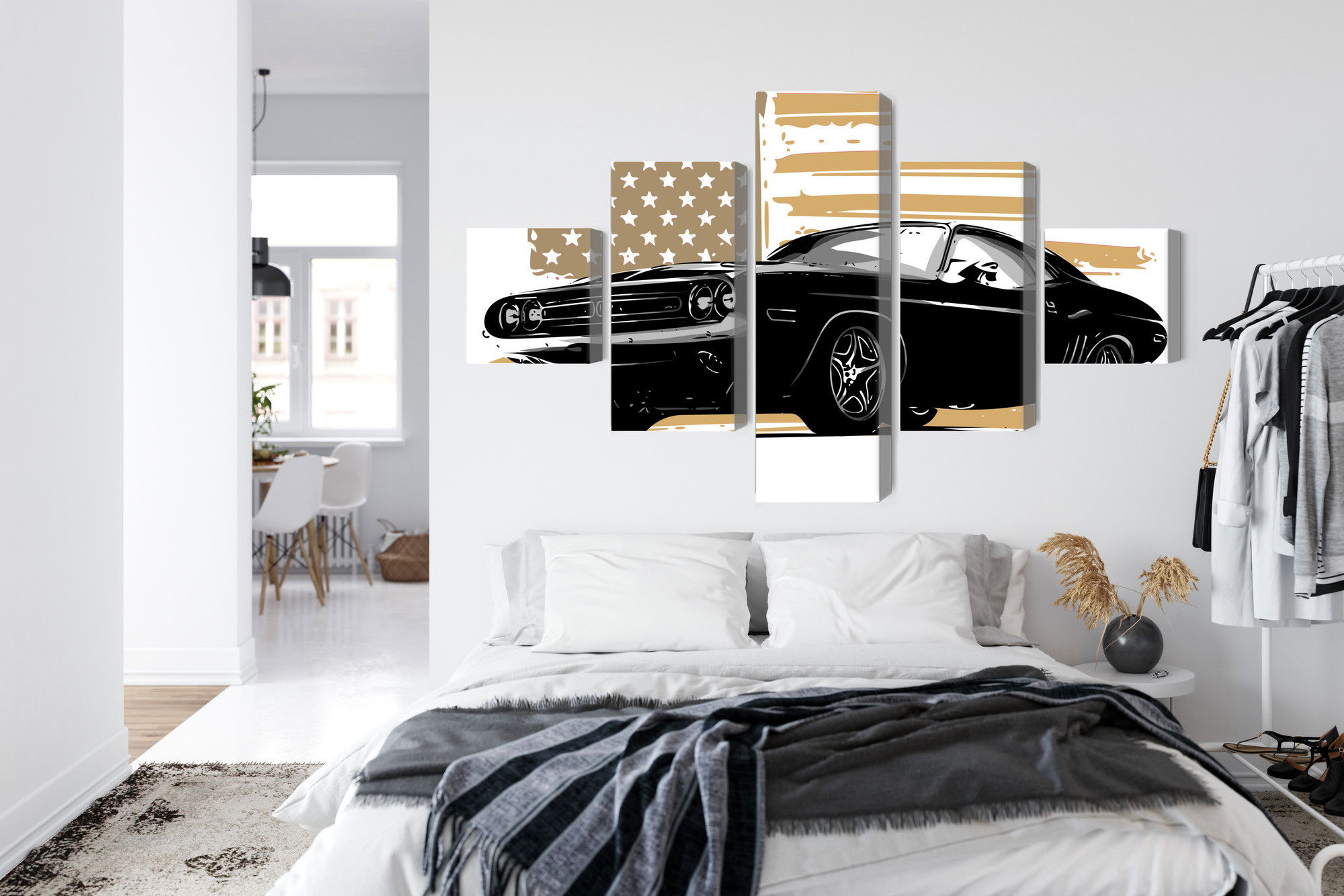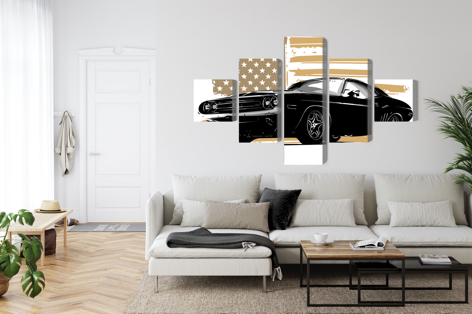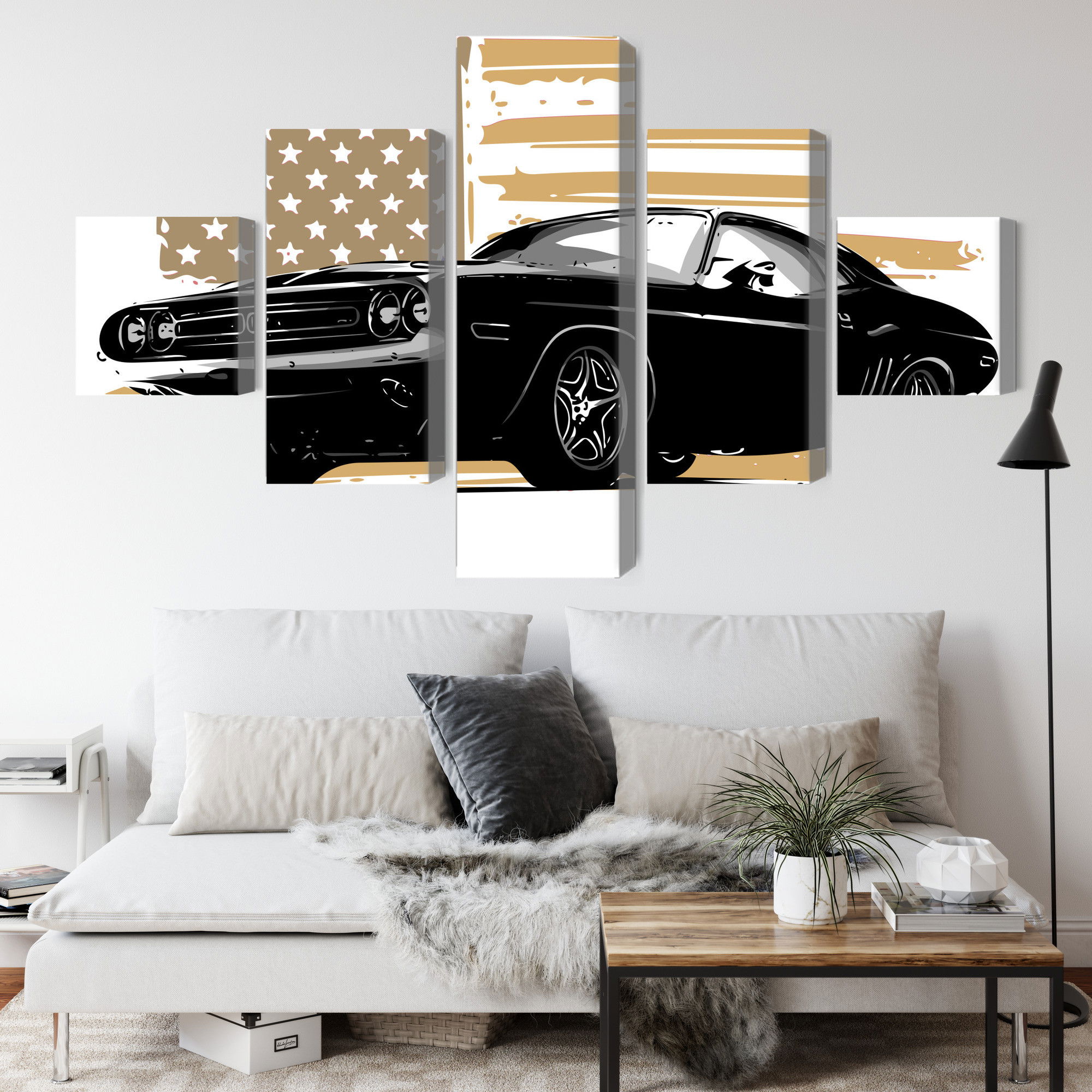 Ljuddämpande tavla – American muscle car with Usa för lugnare rum och mjukare akustik
