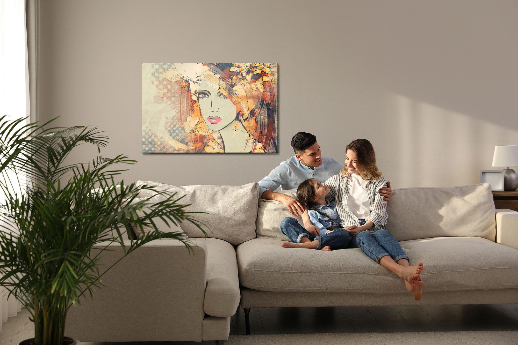 Motivet Art sketching beautiful girl återges med hög färgprecision och detaljrikedom tack vare HP Latex-teknologi. Trycket sker med vattenbaserade, luktfria och GREENGUARD Gold-certifierade bläck som ger en upplösning på upp till 300 DPI. Färgerna är UV-beständiga och behåller sin styrka även i ljusa rum, vilket gör tavlan lämplig för både hem- och offentliga miljöer.