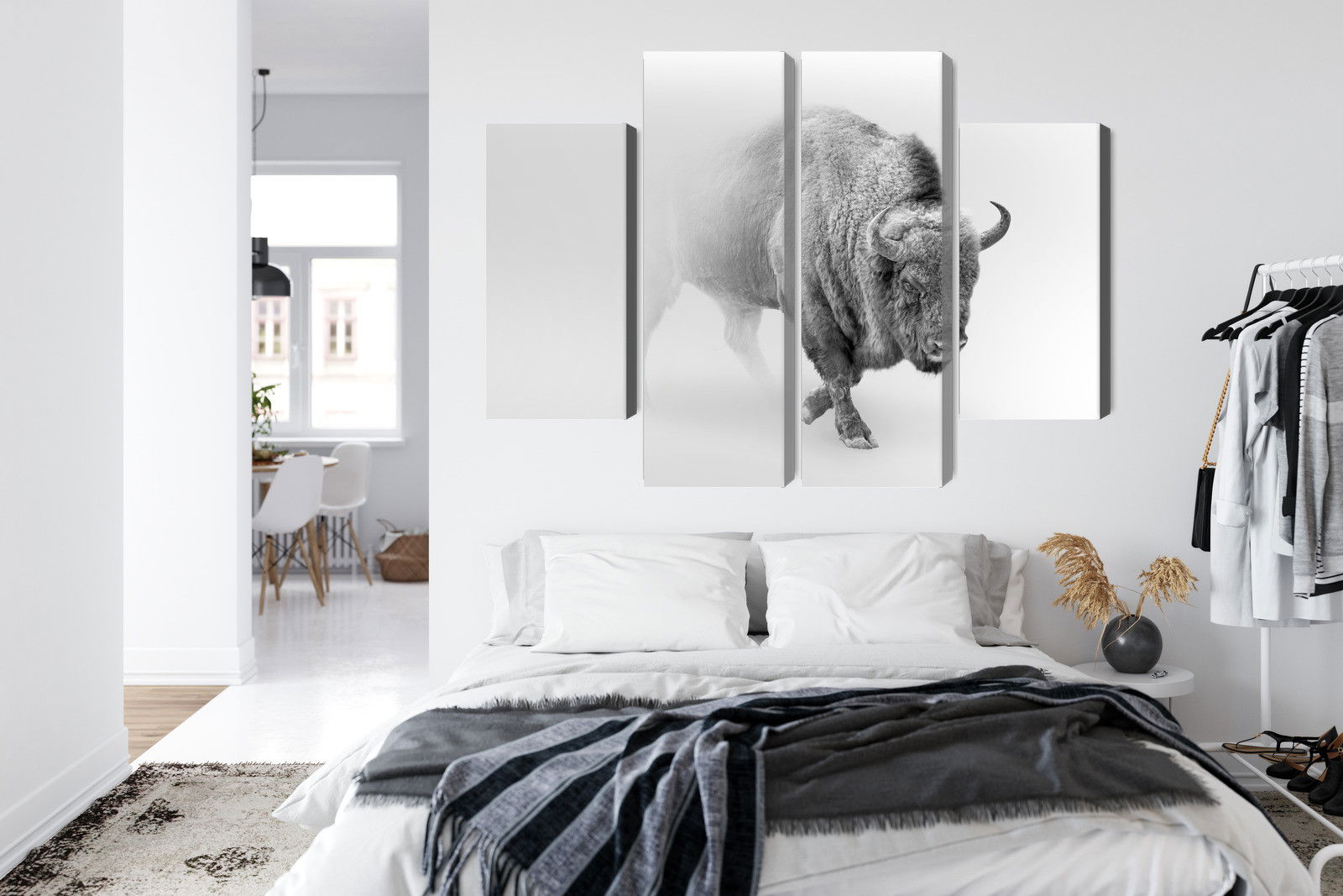Ljuddämpande tavla – Bison in the fog 3d för lugnare rum och mjukare akustik