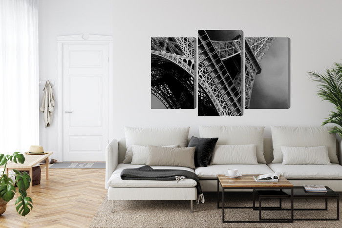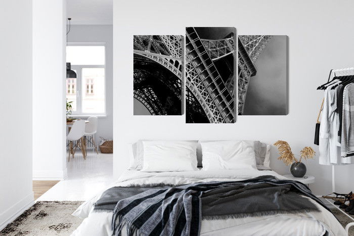 Ljuddämpande tavla – Black and white eiffel tower för lugnare rum och mjukare akustik