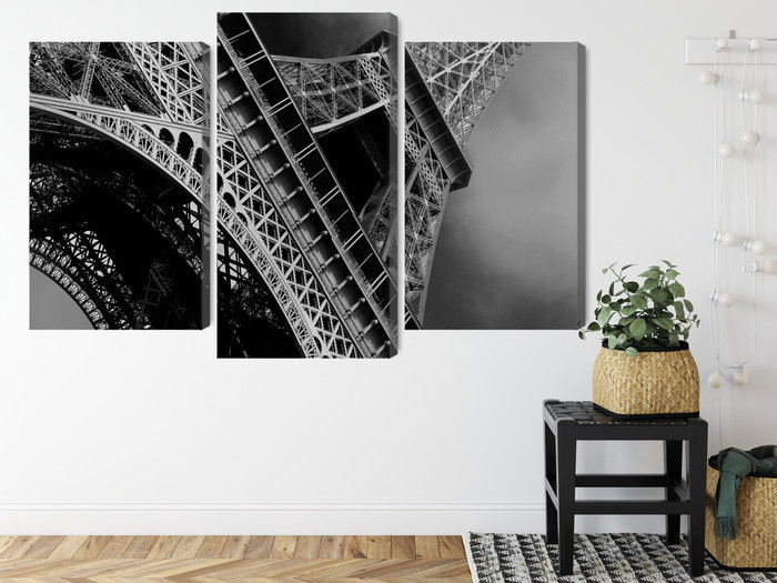 Varje tavla monteras på en massiv fururam. Format upp till 70×50 cm har en ram på 15 mm, medan format från 90×60 cm och uppåt har en ram på 20 mm. Den exakta dukspänningen gör att tavlan håller sin form över tid. Motivet Black and white eiffel tower trycks runt hela ramen vilket ger ett stilrent galleriuttryck där tavlan är lika vacker från sidan som framifrån. Kombinationen av rak dukspänning, rena linjer och korrekt tryck ger en professionell finish.