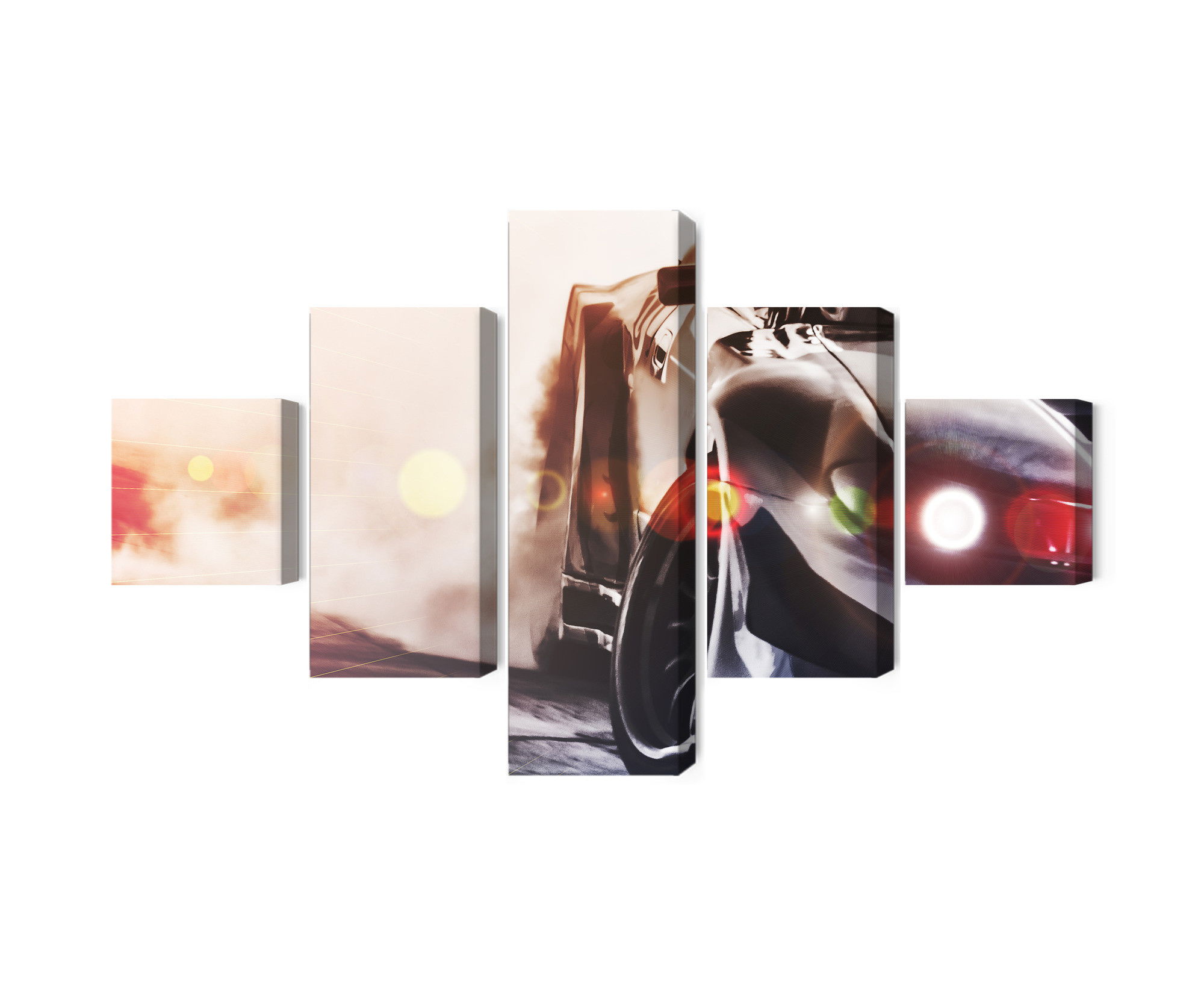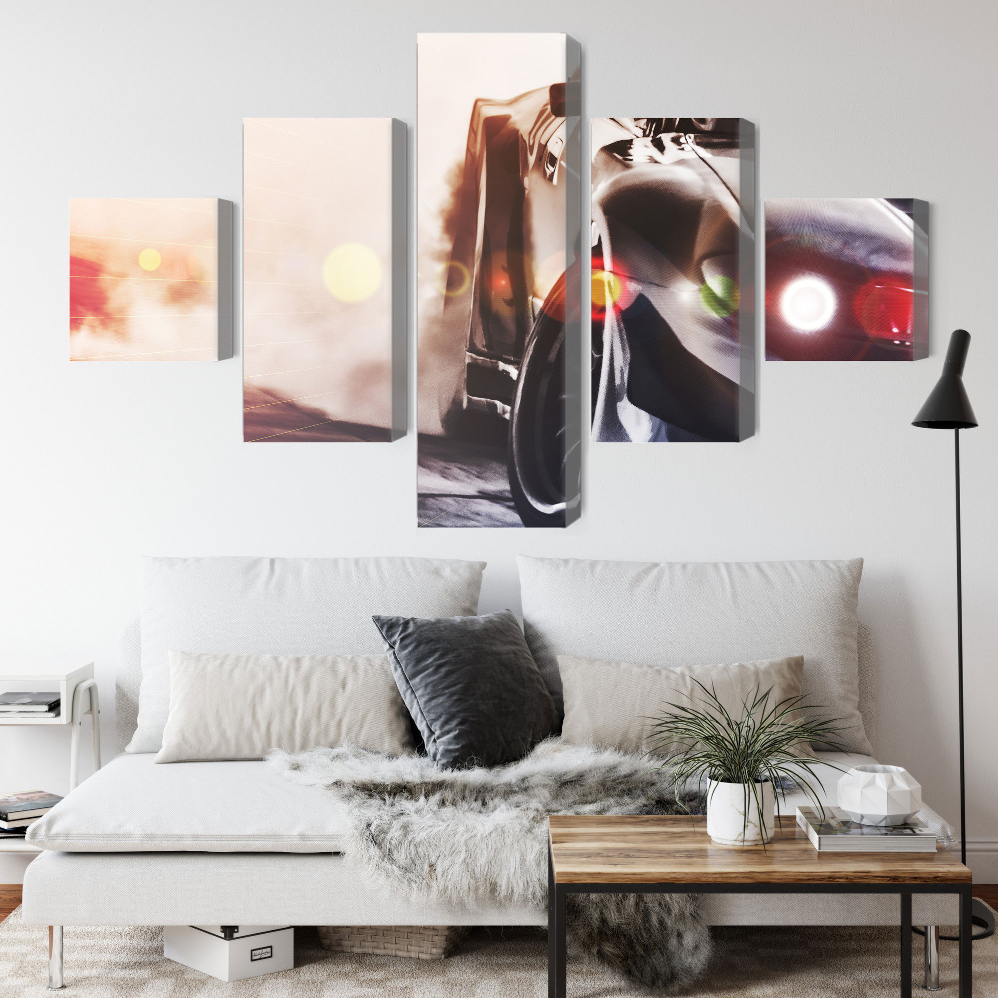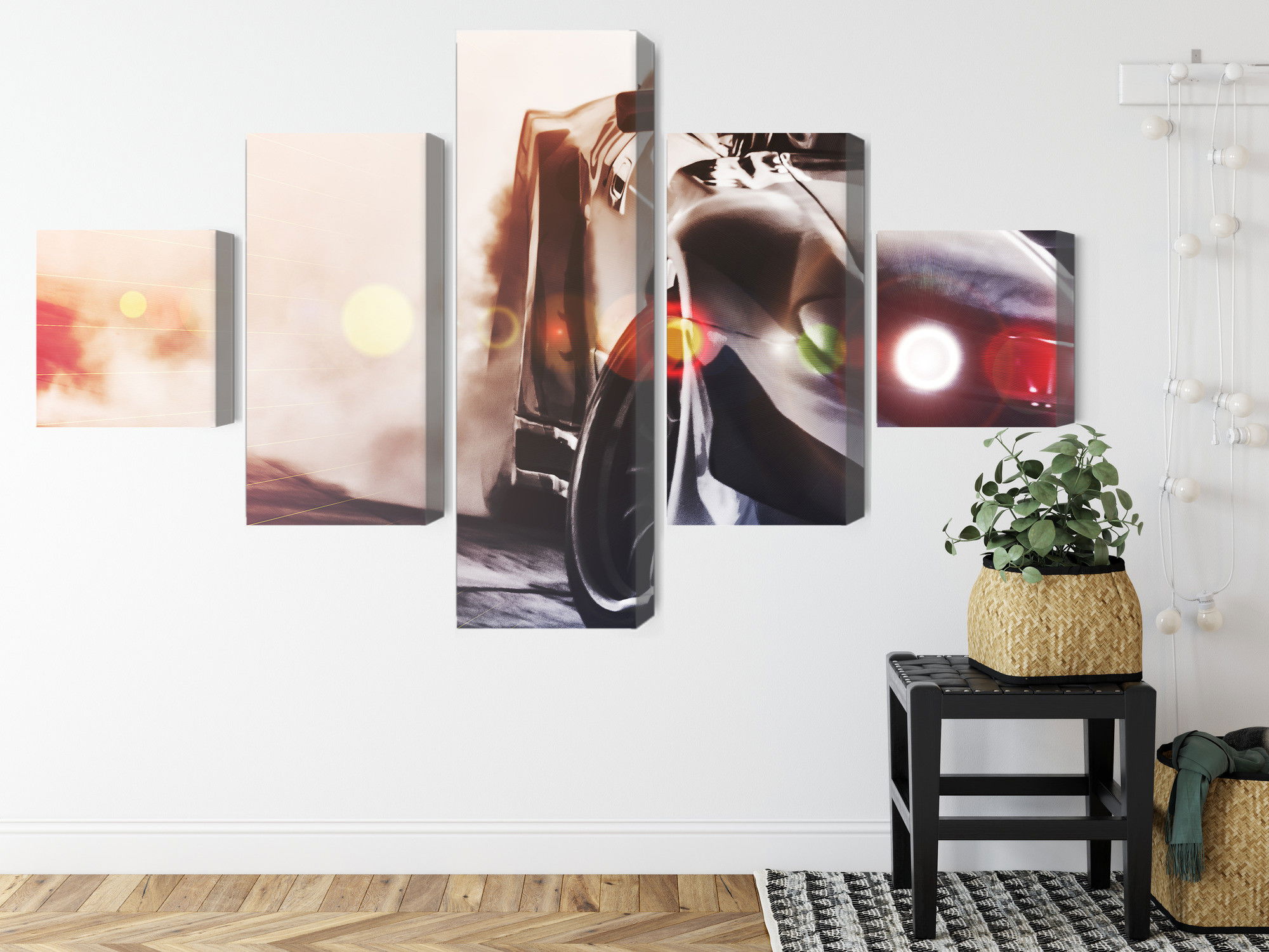 Ljuddämpande tavla – Black drifting 3d car för lugnare rum och mjukare akustik