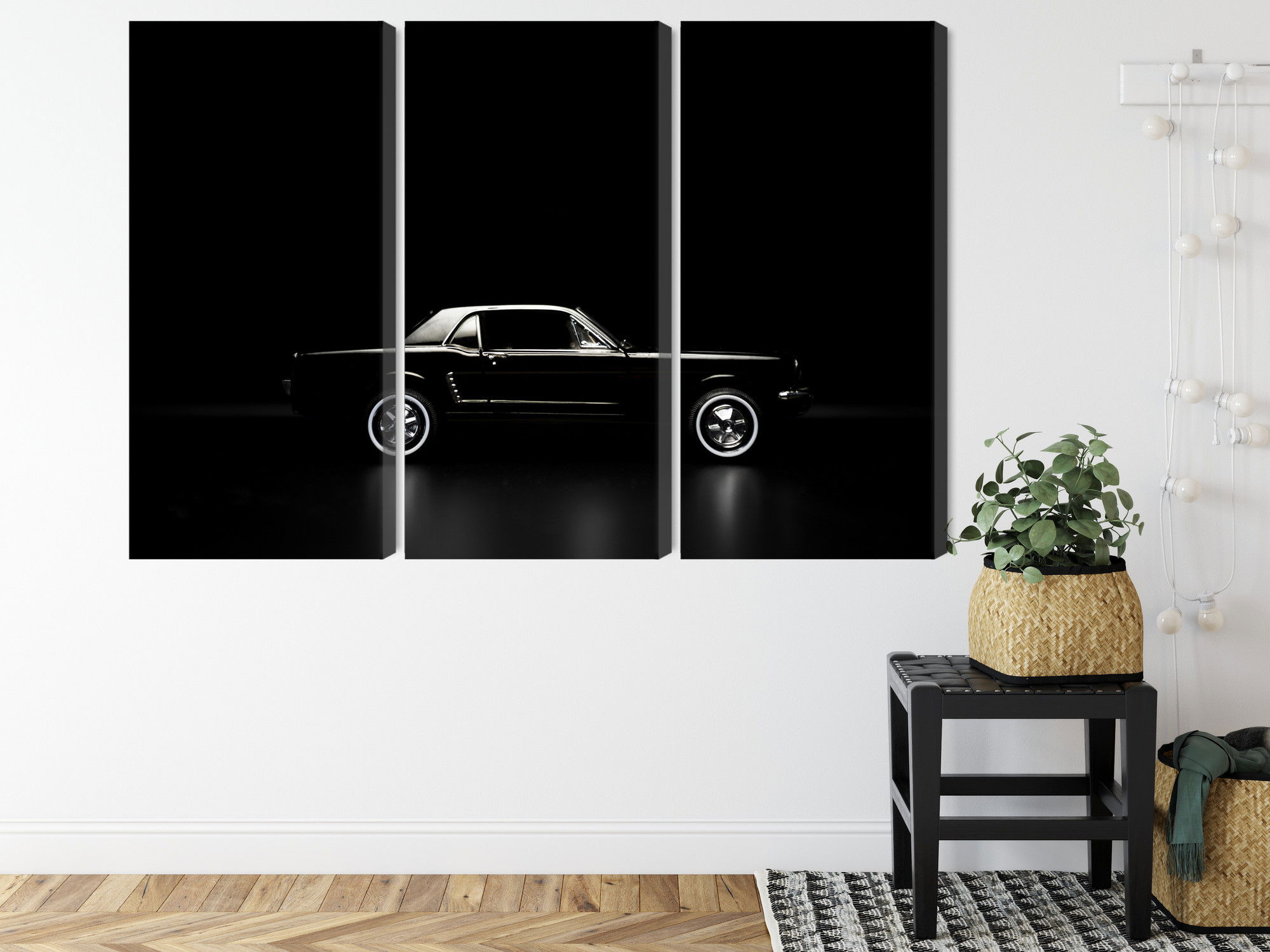 Ljuddämpande tavla – Black retro car on a dark för lugnare rum och mjukare akustik