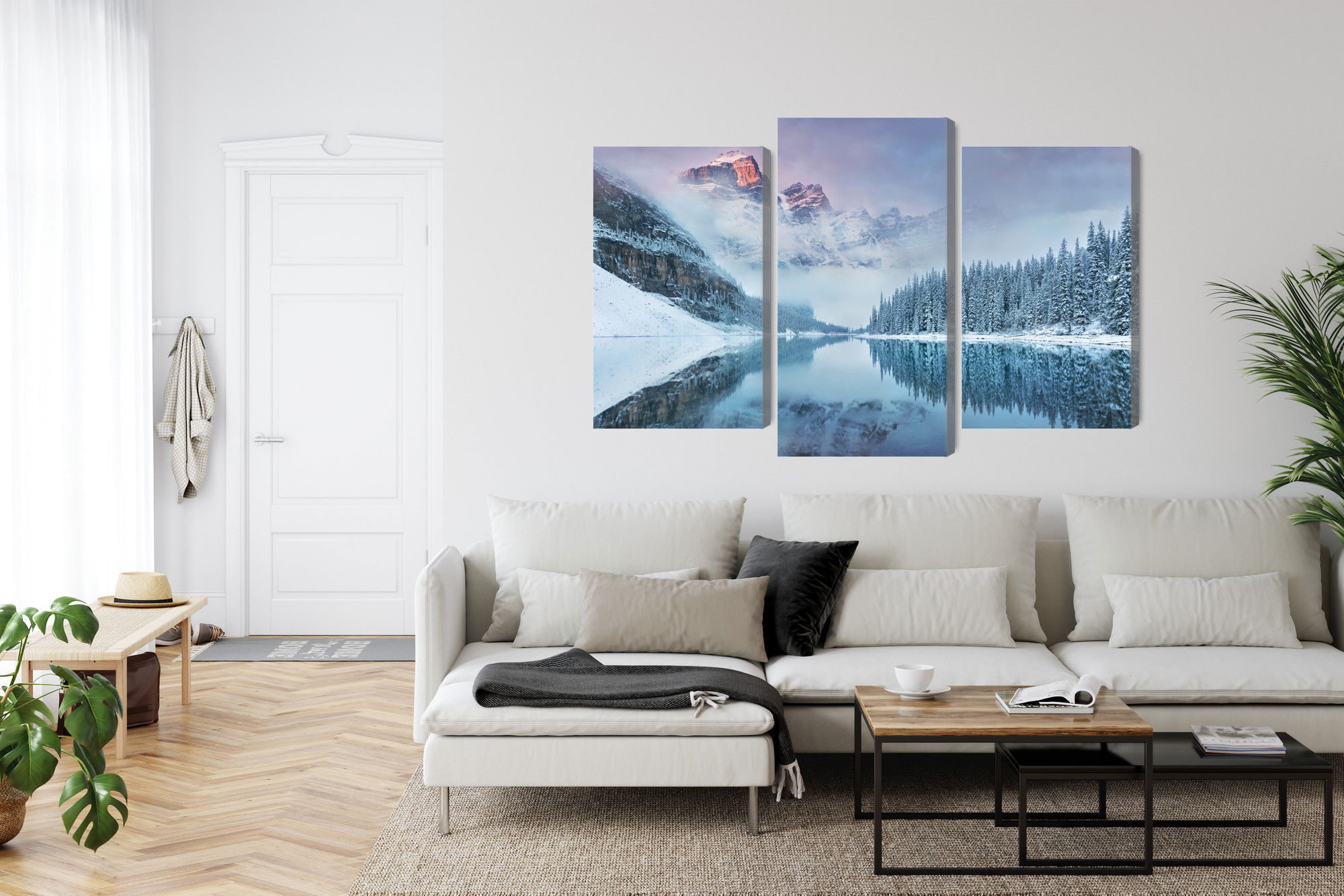 Varje tavla monteras på en massiv fururam. Format upp till 70×50 cm har en ram på 15 mm, medan format från 90×60 cm och uppåt har en ram på 20 mm. Den exakta dukspänningen gör att tavlan håller sin form över tid. Motivet Canadian Moraine Lake on a trycks runt hela ramen vilket ger ett stilrent galleriuttryck där tavlan är lika vacker från sidan som framifrån. Kombinationen av rak dukspänning, rena linjer och korrekt tryck ger en professionell finish.