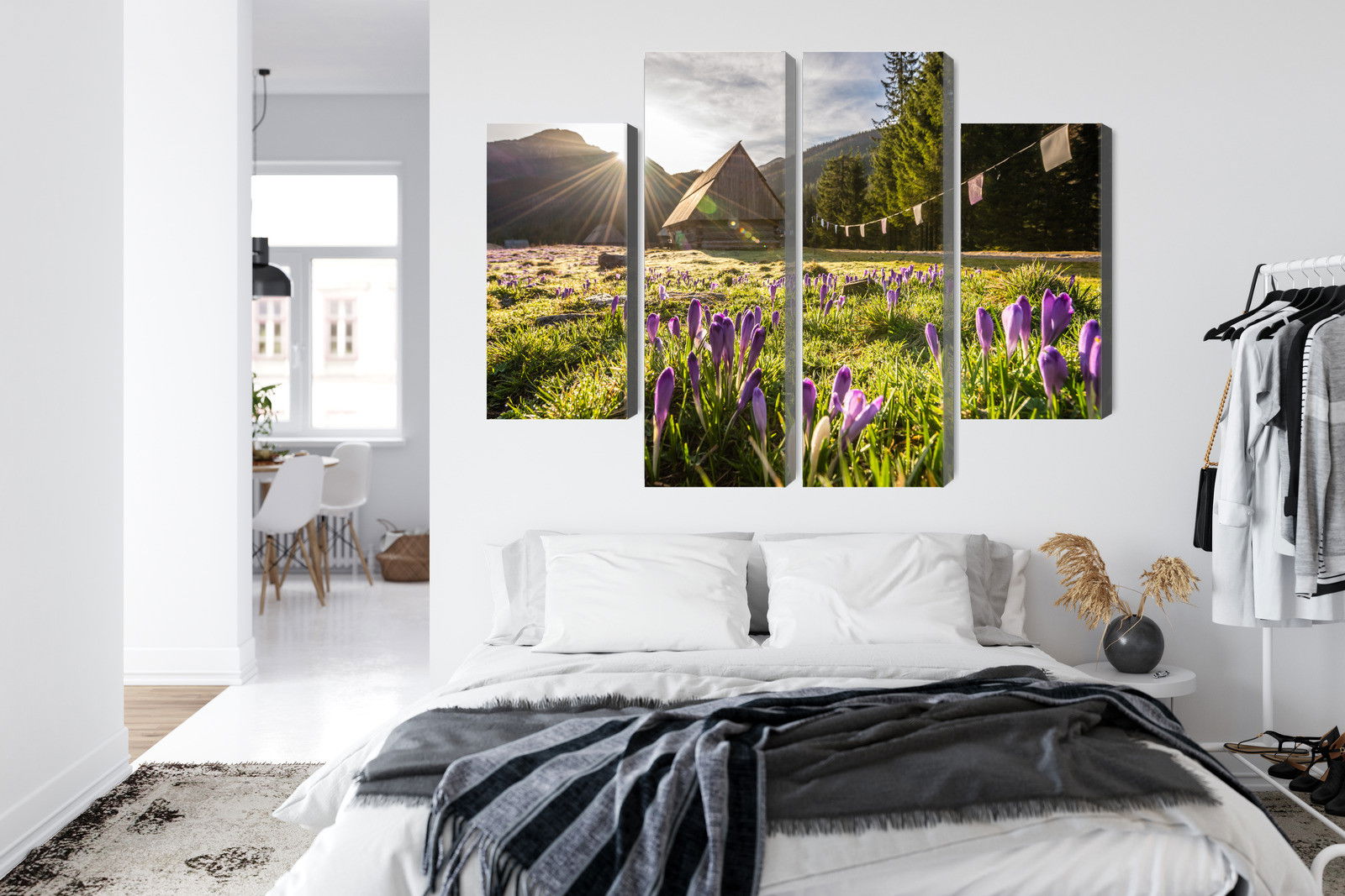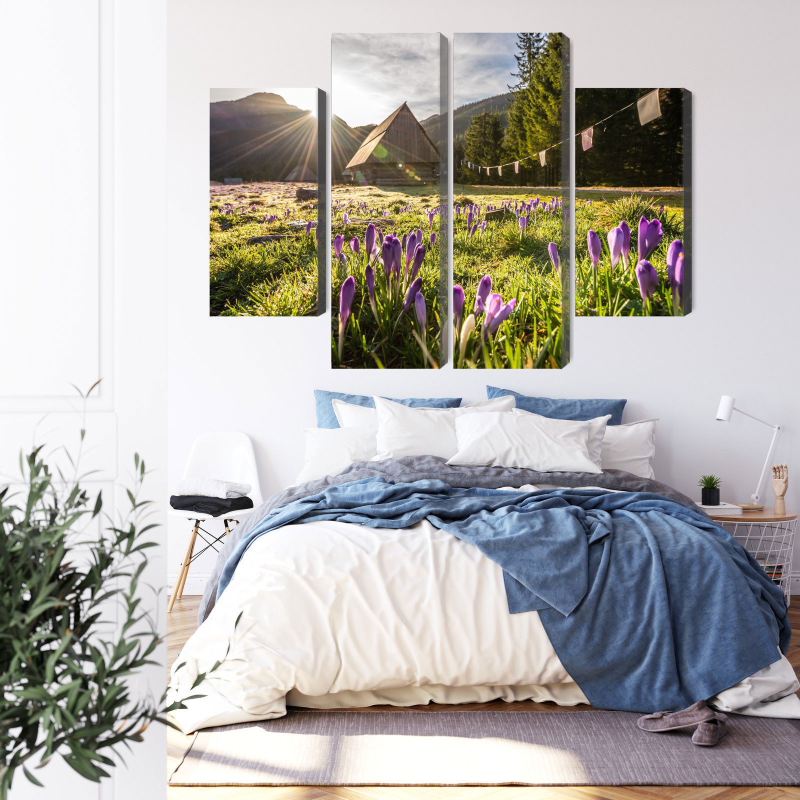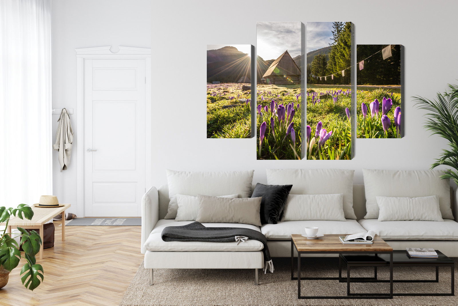 SilentDirects ljuddämpande tavla Chocholowska valley kombinerar ett högupplöst motiv med avancerad akustikteknik. Varje tavla monteras i Sverige och bygger på en stabil canvastavla med fururam, där insidan av ramen fylls med en ljudabsorberande kärna av återvunnen polyester. Konstruktionen gör tavlan till ett både estetiskt och funktionellt inslag i rummet.