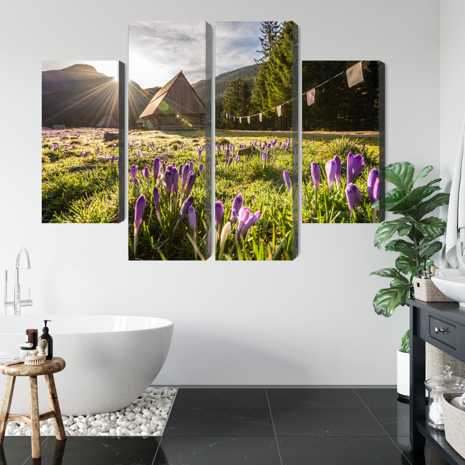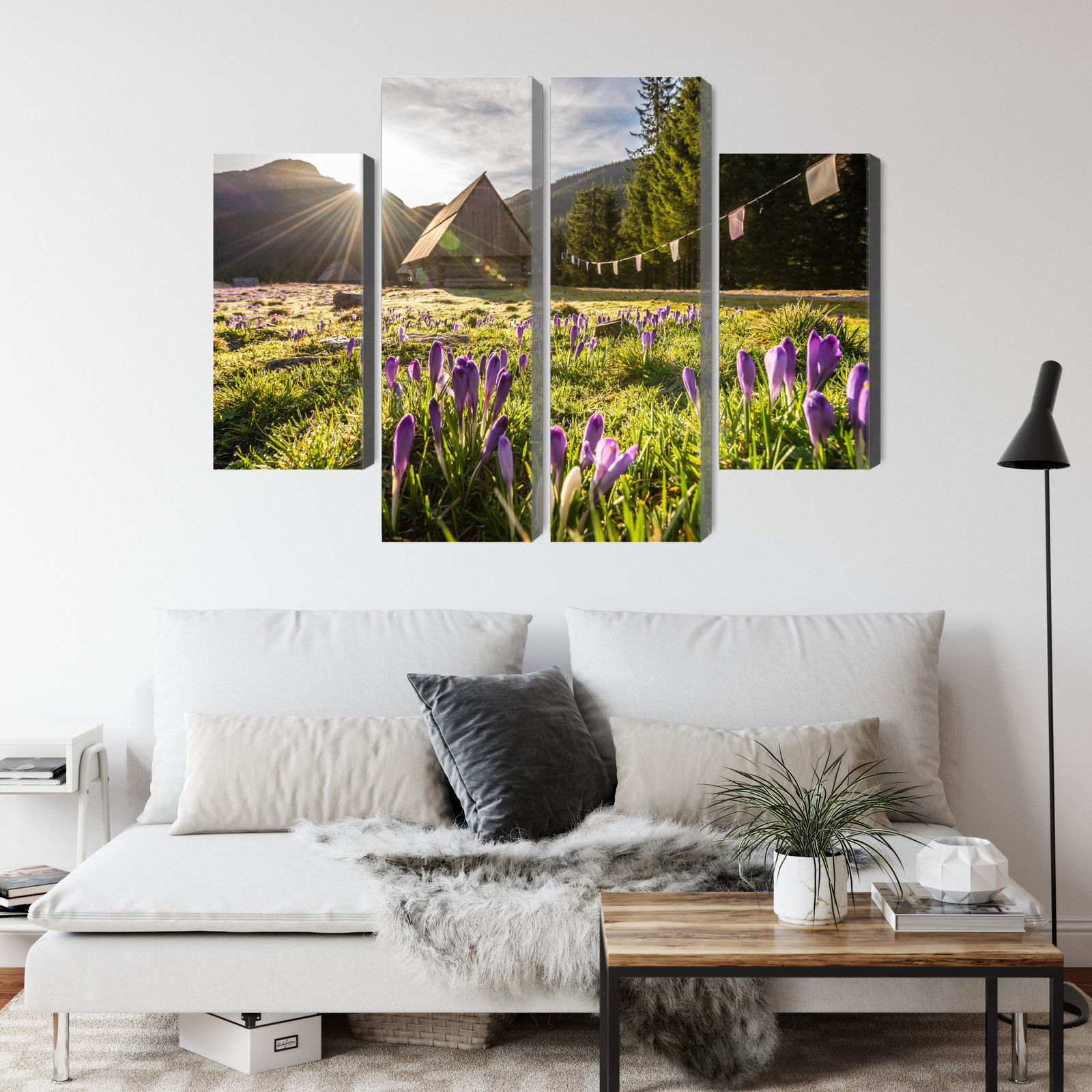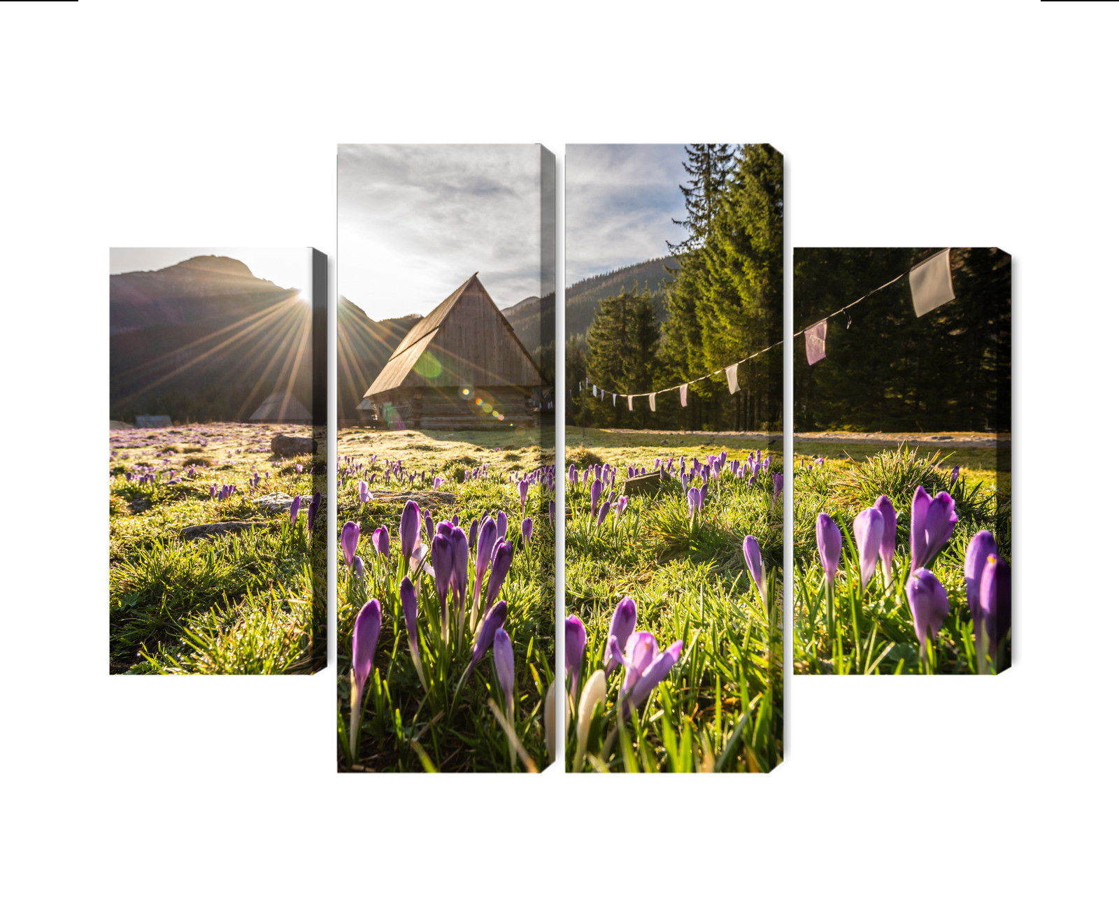 Varje tavla monteras på en massiv fururam. Format upp till 70×50 cm har en ram på 15 mm, medan format från 90×60 cm och uppåt har en ram på 20 mm. Den exakta dukspänningen gör att tavlan håller sin form över tid. Motivet Chocholowska valley trycks runt hela ramen vilket ger ett stilrent galleriuttryck där tavlan är lika vacker från sidan som framifrån. Kombinationen av rak dukspänning, rena linjer och korrekt tryck ger en professionell finish.