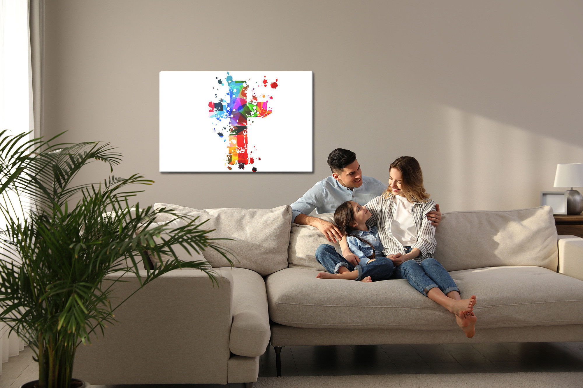 Motivet Colorful cross återges med hög färgprecision och detaljrikedom tack vare HP Latex-teknologi. Trycket sker med vattenbaserade, luktfria och GREENGUARD Gold-certifierade bläck som ger en upplösning på upp till 300 DPI. Färgerna är UV-beständiga och behåller sin styrka även i ljusa rum, vilket gör tavlan lämplig för både hem- och offentliga miljöer.
