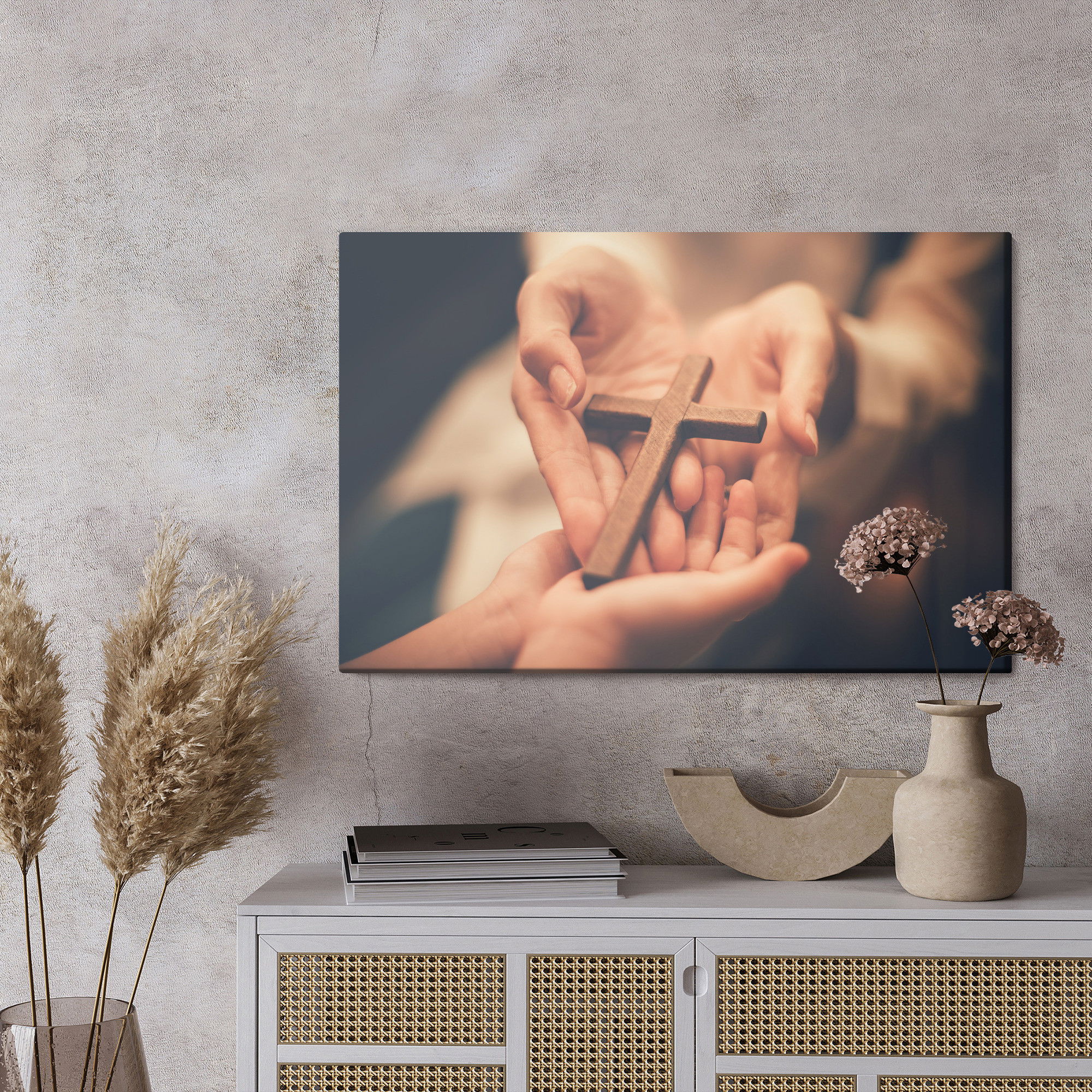 Ljuddämpande tavla – Cross on the hands för lugnare rum och mjukare akustik