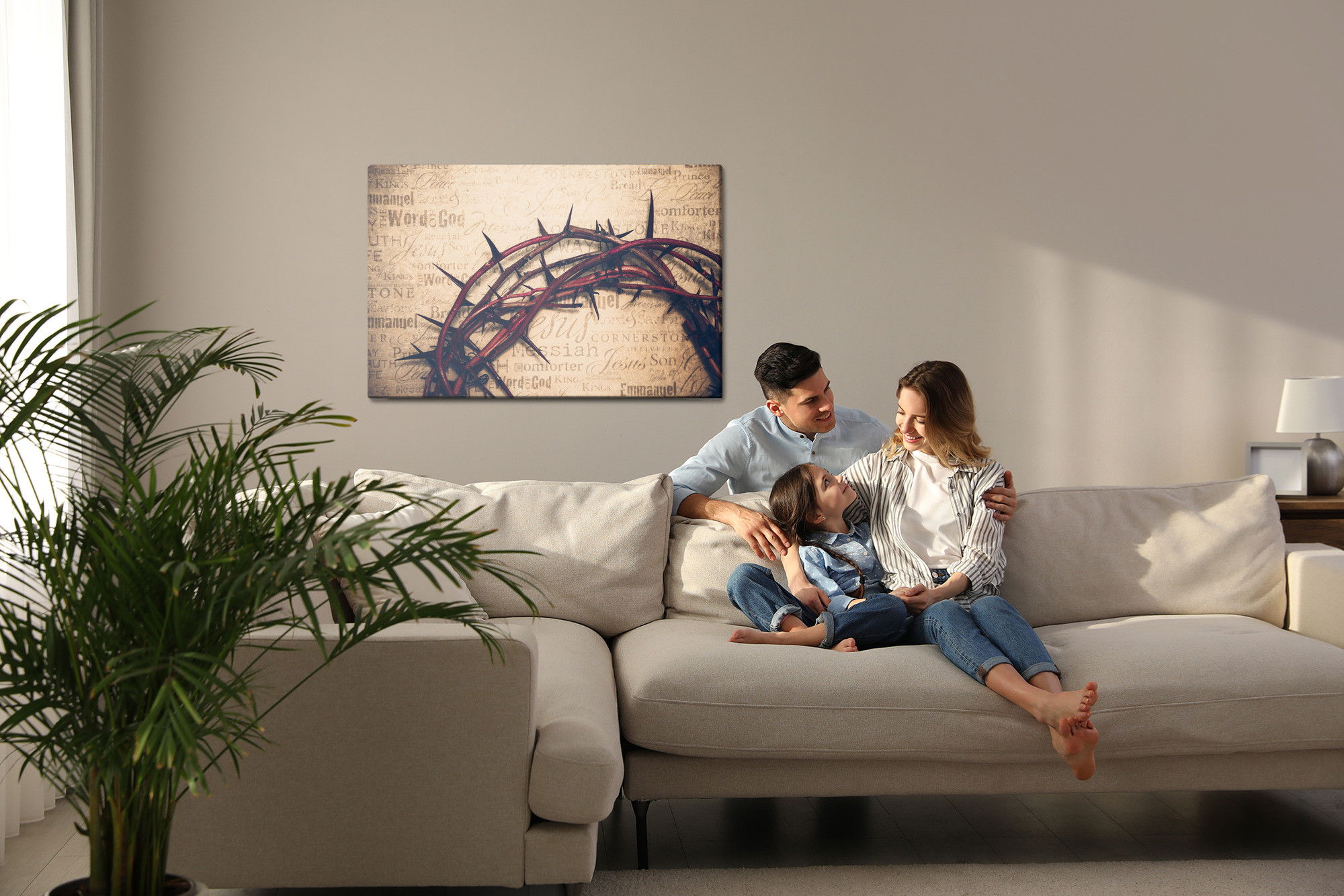 Varje tavla monteras på en massiv fururam. Format upp till 70×50 cm har en ram på 15 mm, medan format från 90×60 cm och uppåt har en ram på 20 mm. Den exakta dukspänningen gör att tavlan håller sin form över tid. Motivet Crown of thorns trycks runt hela ramen vilket ger ett stilrent galleriuttryck där tavlan är lika vacker från sidan som framifrån. Kombinationen av rak dukspänning, rena linjer och korrekt tryck ger en professionell finish.