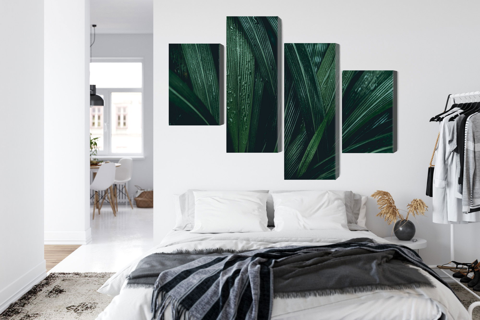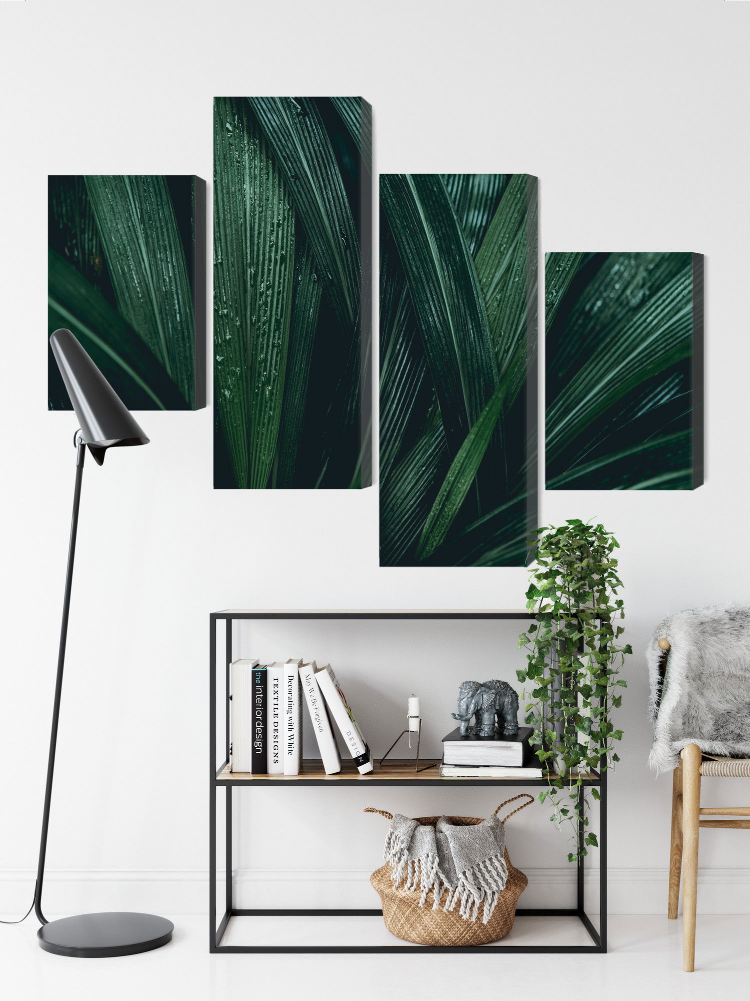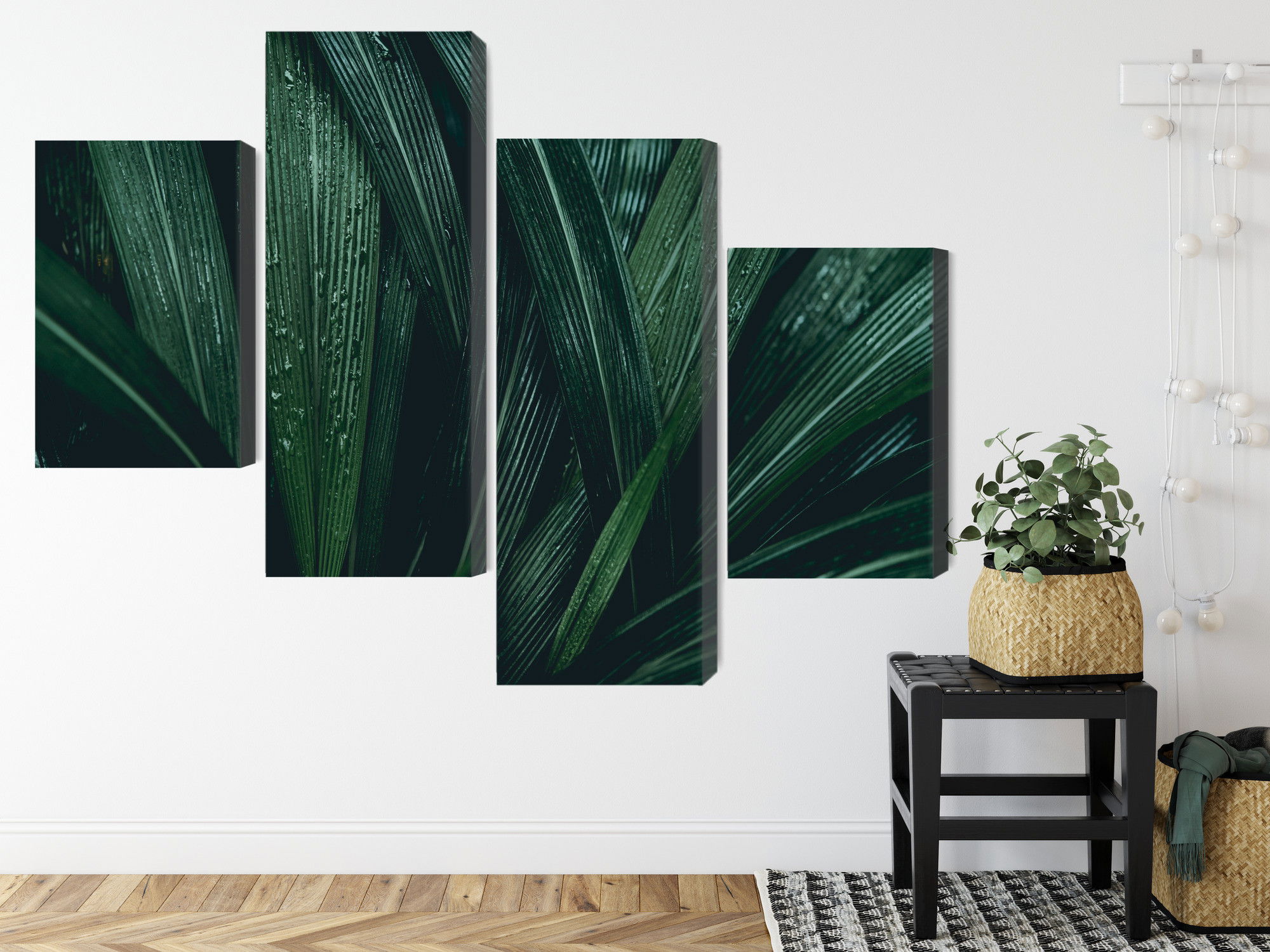 Varje tavla monteras på en massiv fururam. Format upp till 70×50 cm har en ram på 15 mm, medan format från 90×60 cm och uppåt har en ram på 20 mm. Den exakta dukspänningen gör att tavlan håller sin form över tid. Motivet Dark green leaves on a macro trycks runt hela ramen vilket ger ett stilrent galleriuttryck där tavlan är lika vacker från sidan som framifrån. Kombinationen av rak dukspänning, rena linjer och korrekt tryck ger en professionell finish.