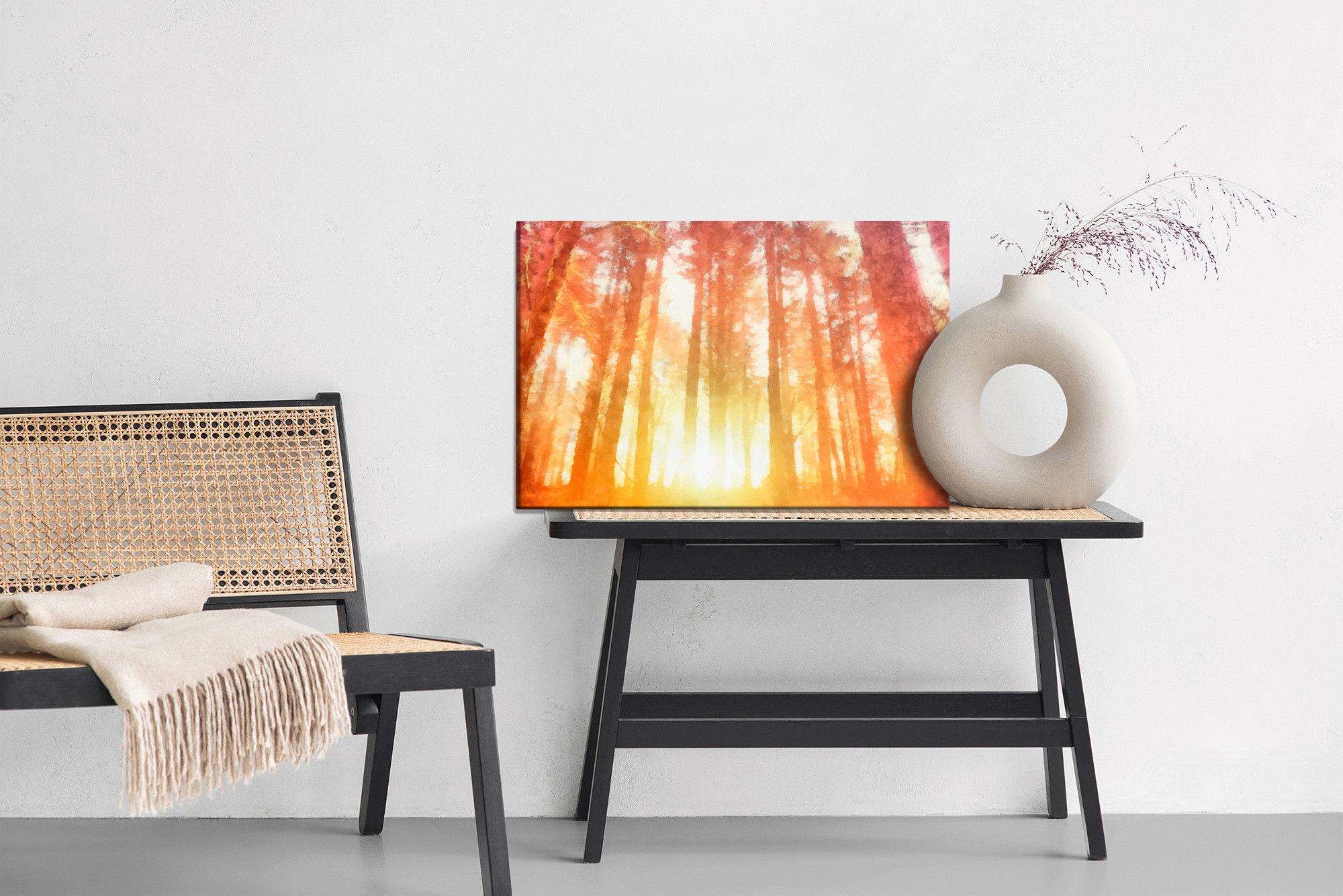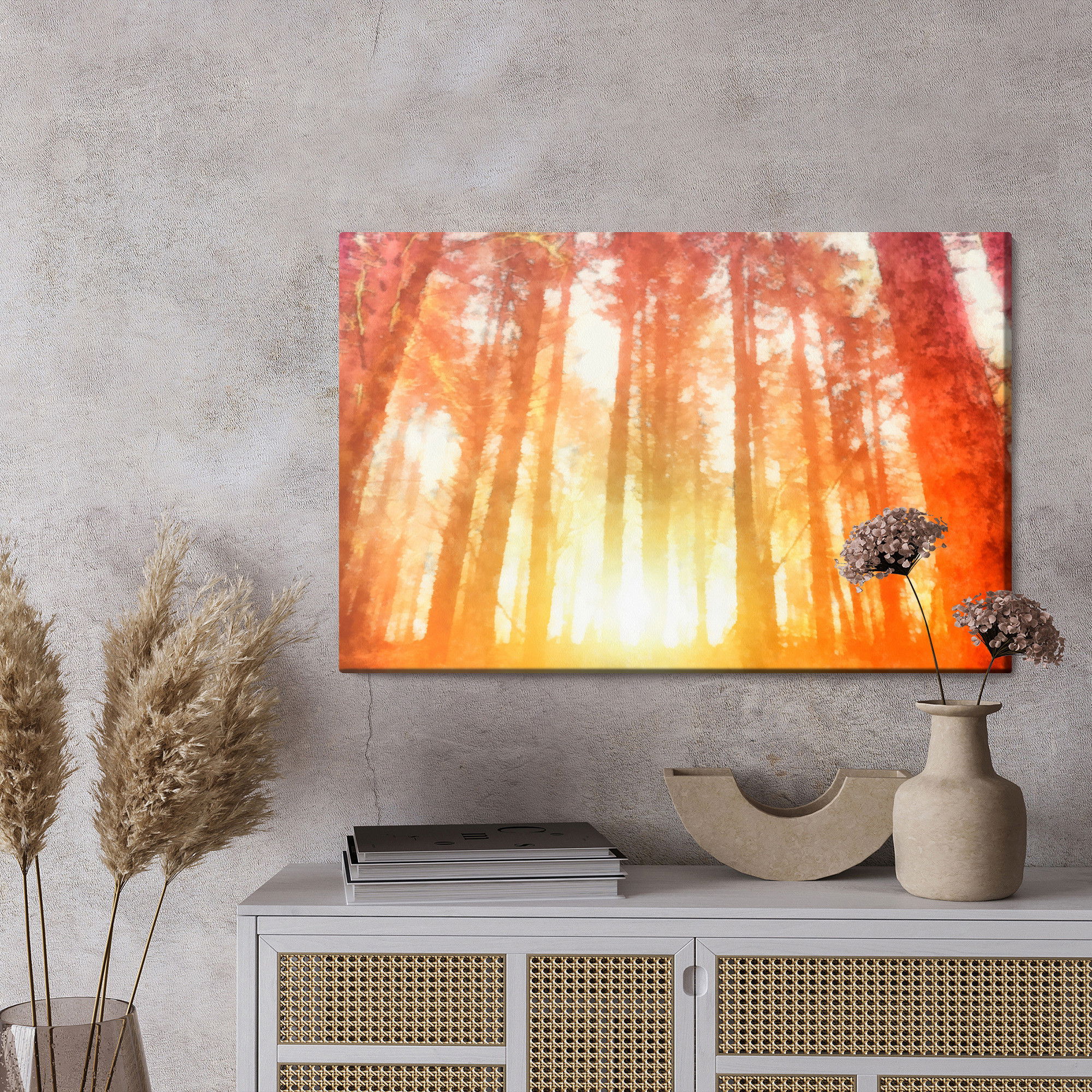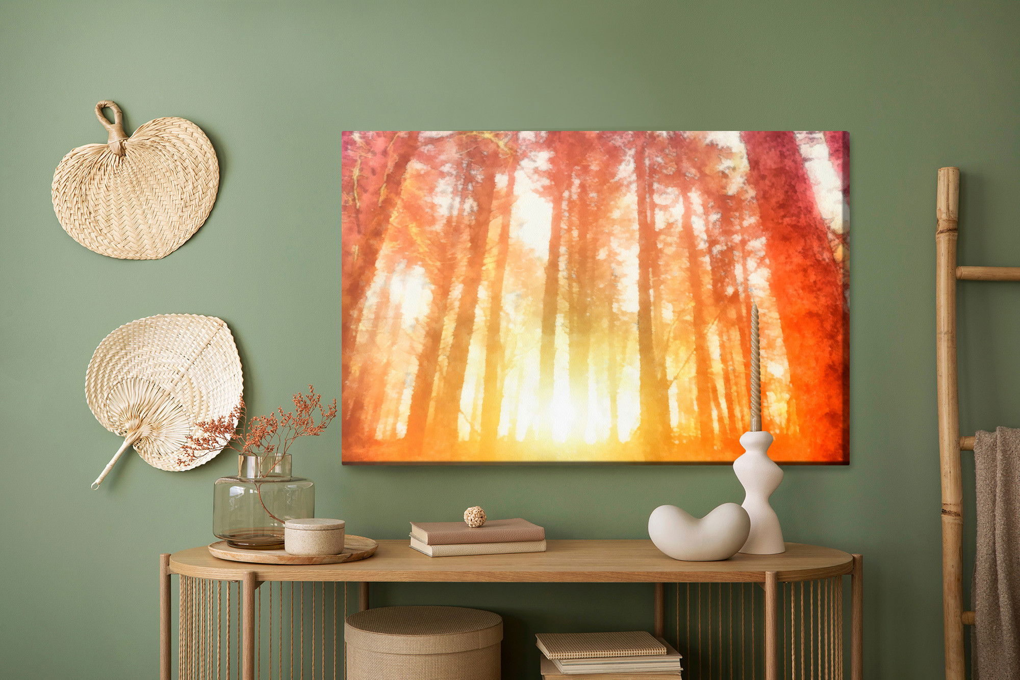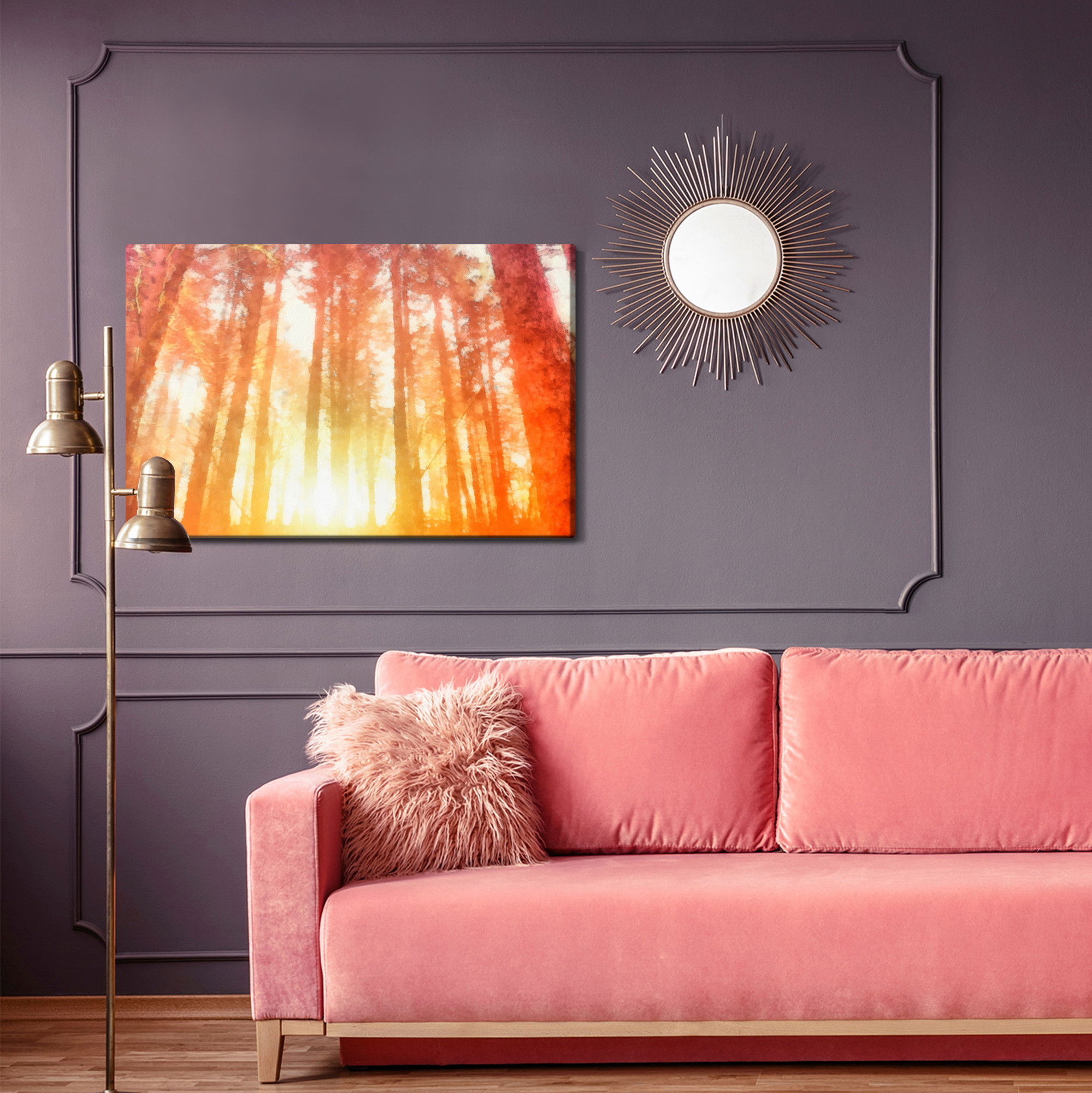 Ljuddämpande tavla – Dawn in a beautiful forest för lugnare rum och mjukare akustik