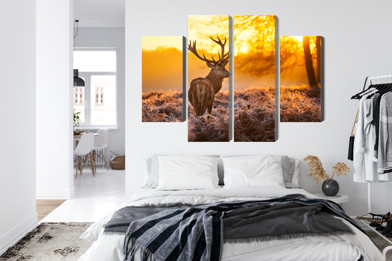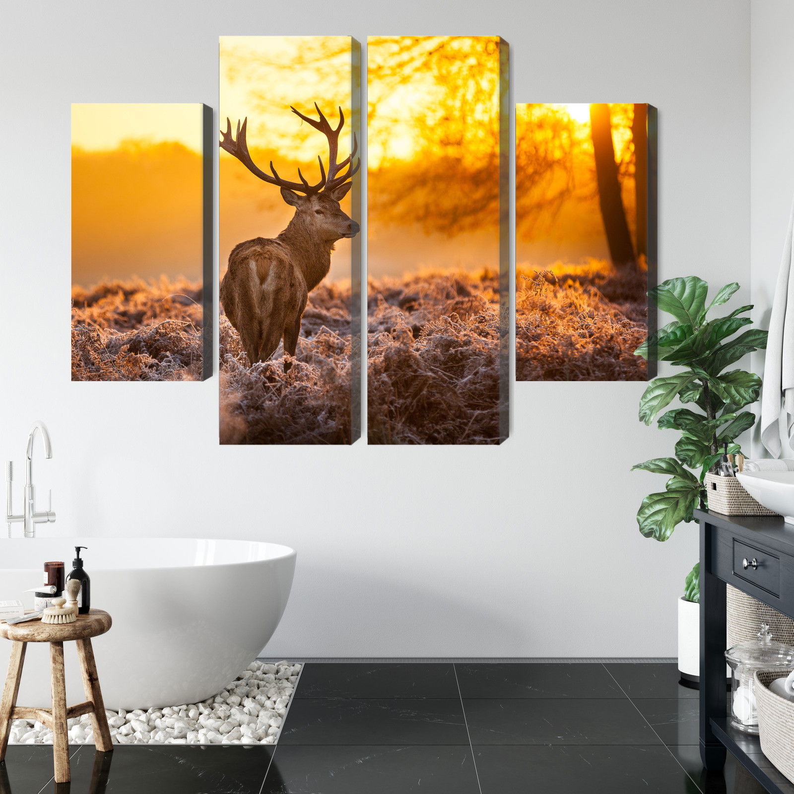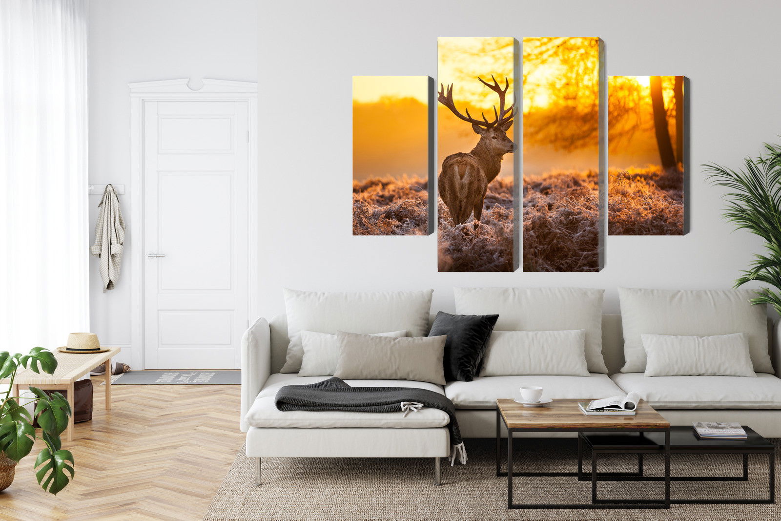 Ljuddämpande tavla – Deer in the forest at sunset för lugnare rum och mjukare akustik