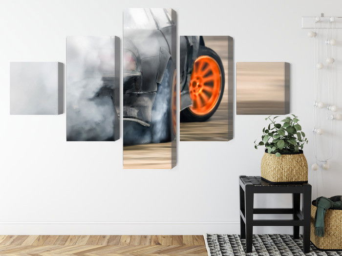 Ljuddämpande tavla – Drifting car in a puff för lugnare rum och mjukare akustik