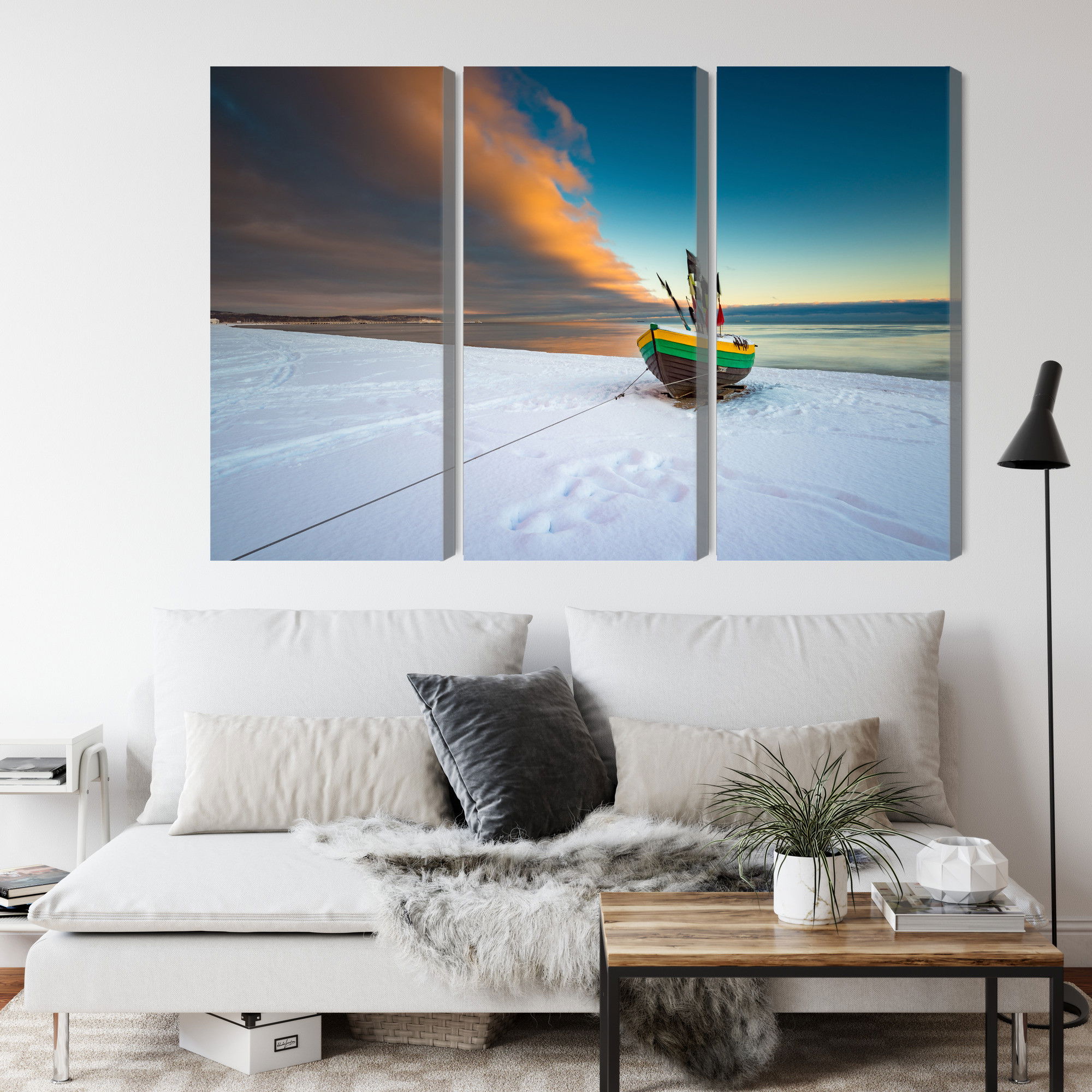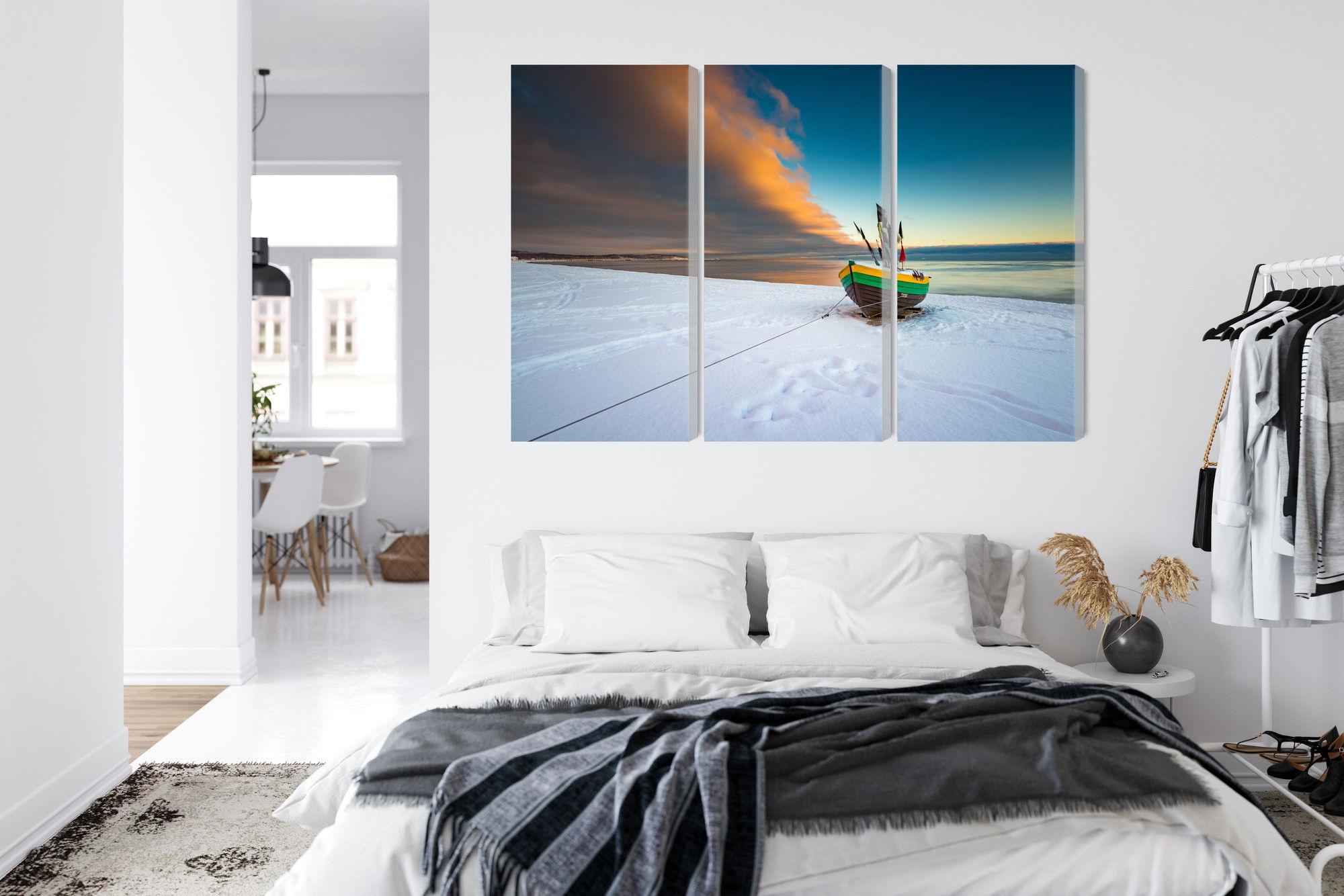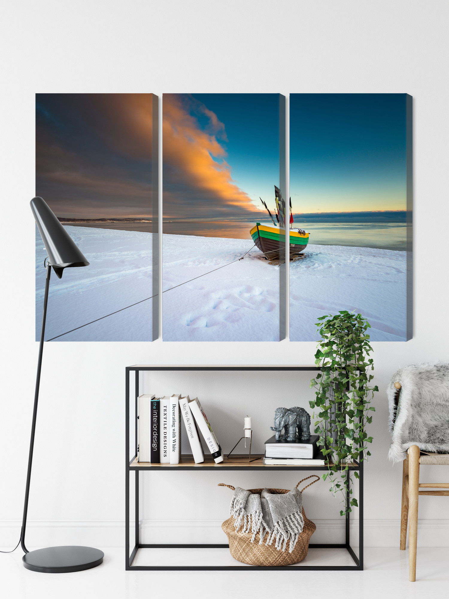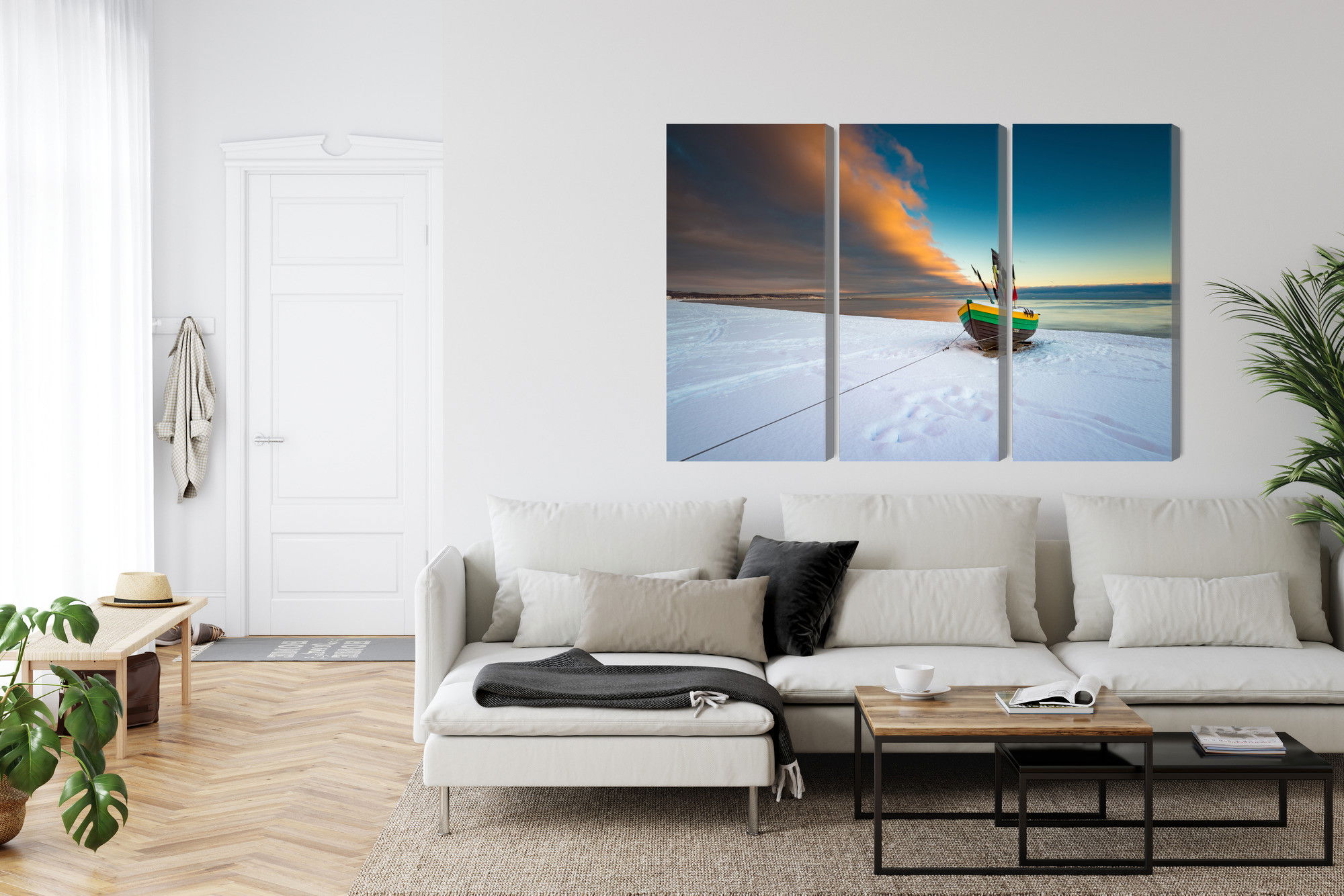 Varje tavla monteras på en massiv fururam. Format upp till 70×50 cm har en ram på 15 mm, medan format från 90×60 cm och uppåt har en ram på 20 mm. Den exakta dukspänningen gör att tavlan håller sin form över tid. Motivet Fishing boat trycks runt hela ramen vilket ger ett stilrent galleriuttryck där tavlan är lika vacker från sidan som framifrån. Kombinationen av rak dukspänning, rena linjer och korrekt tryck ger en professionell finish.