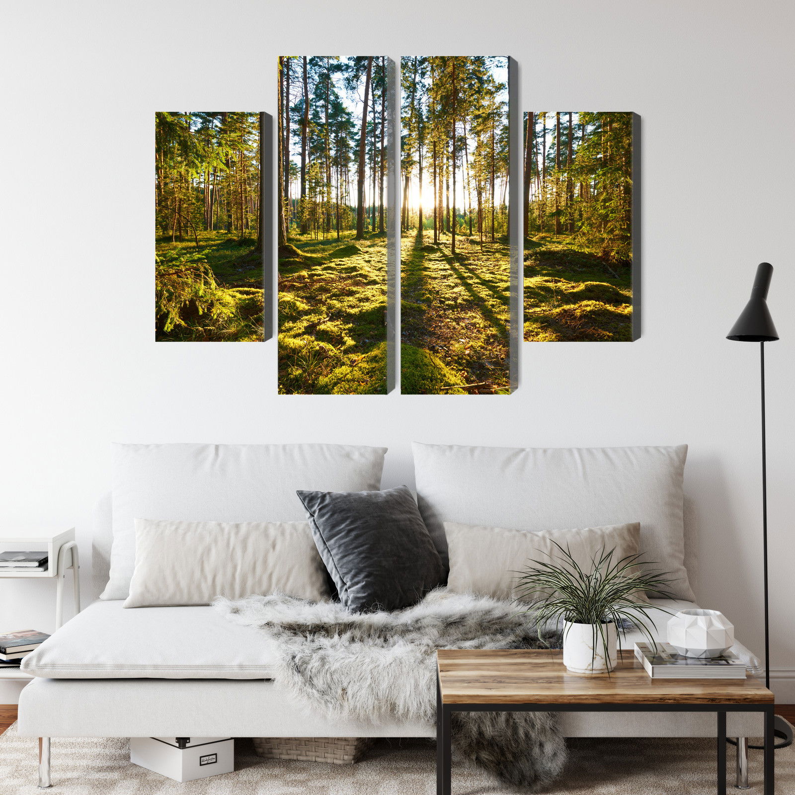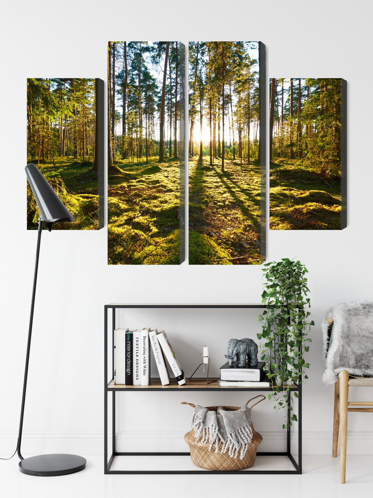 Ljuddämpande tavla – Forest landscape with sunset för lugnare rum och mjukare akustik