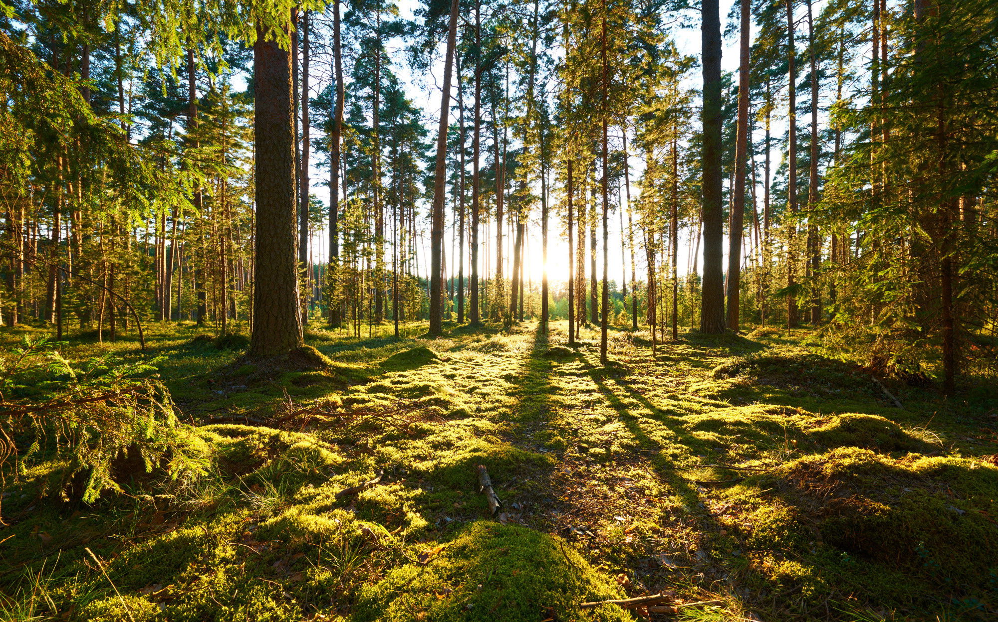 Ljuddämpande tavla – Forest landscape with sunset för lugnare rum och mjukare akustik