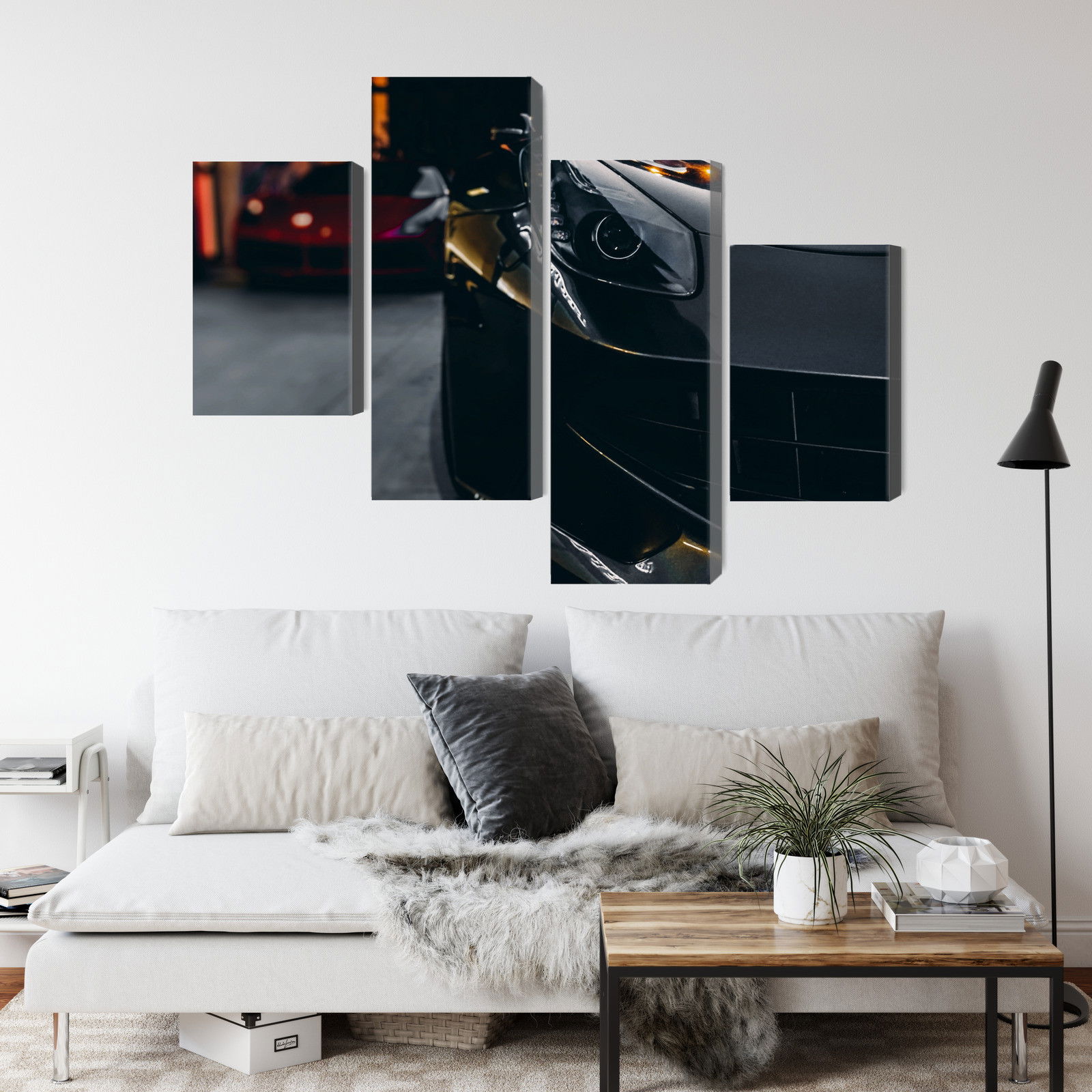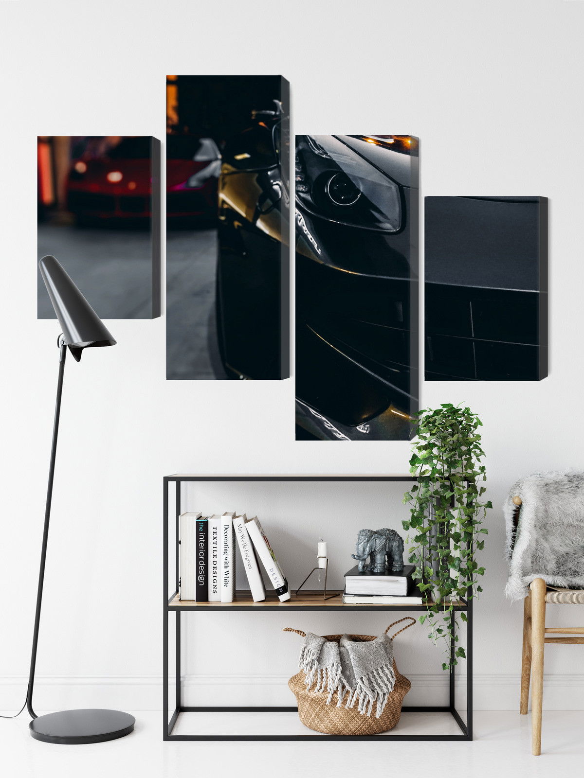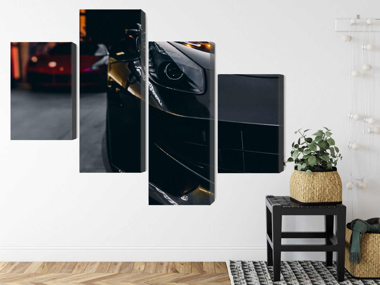 Ljuddämpande tavla – Front of a black sports car för lugnare rum och mjukare akustik