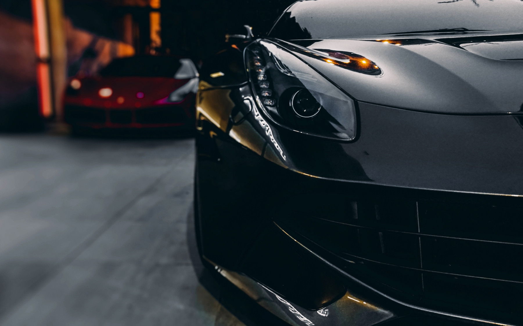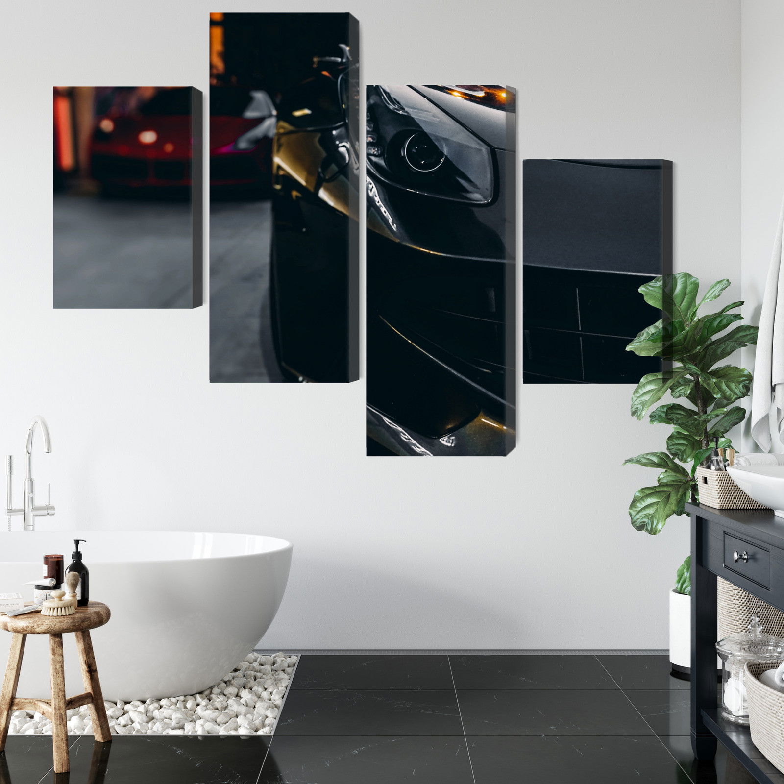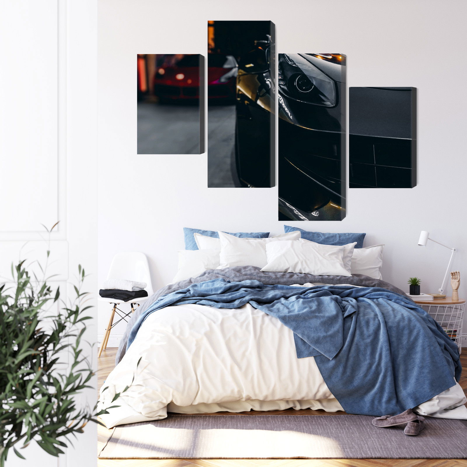 Ljuddämpande tavla – Front of a black sports car för lugnare rum och mjukare akustik