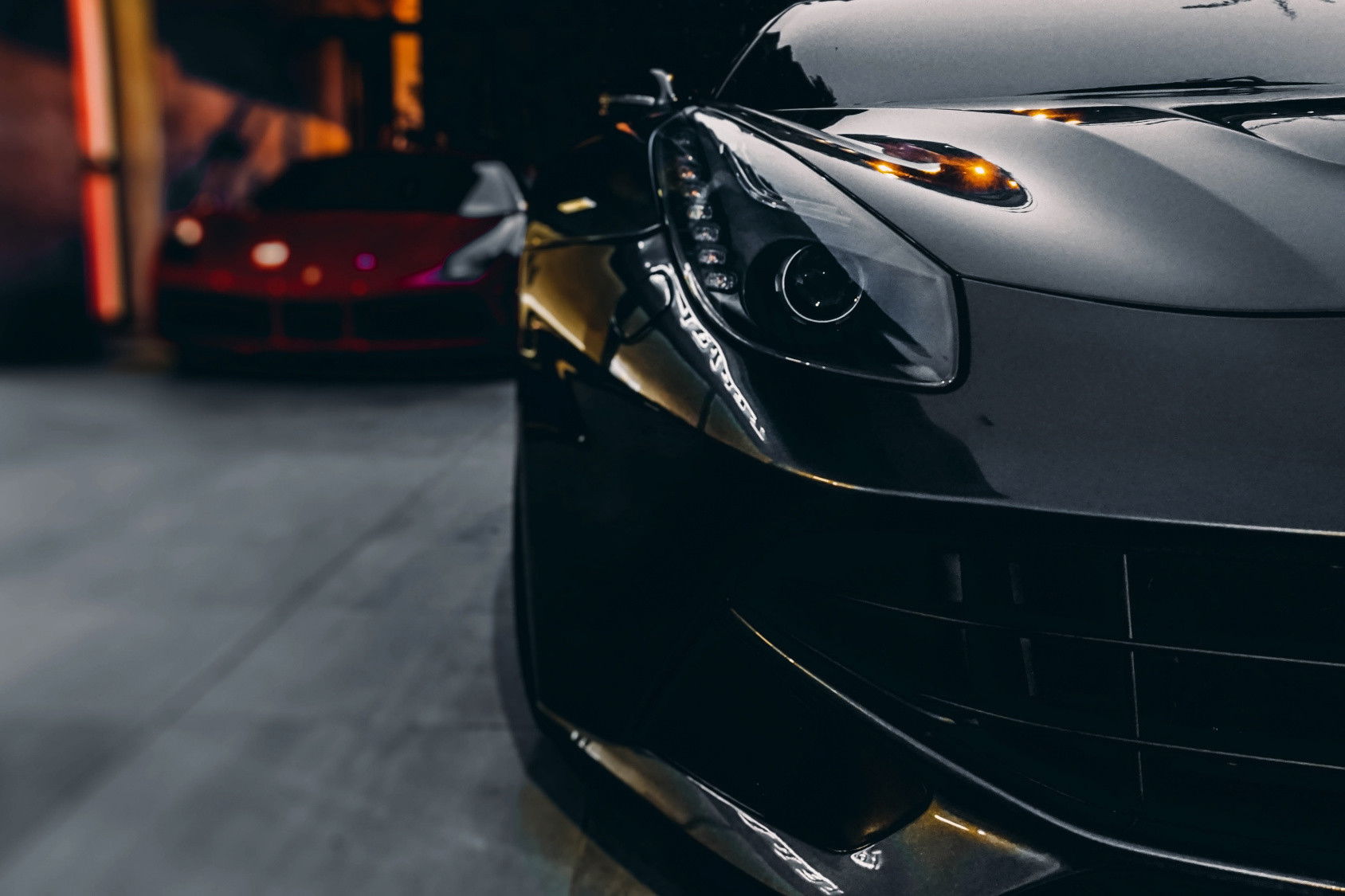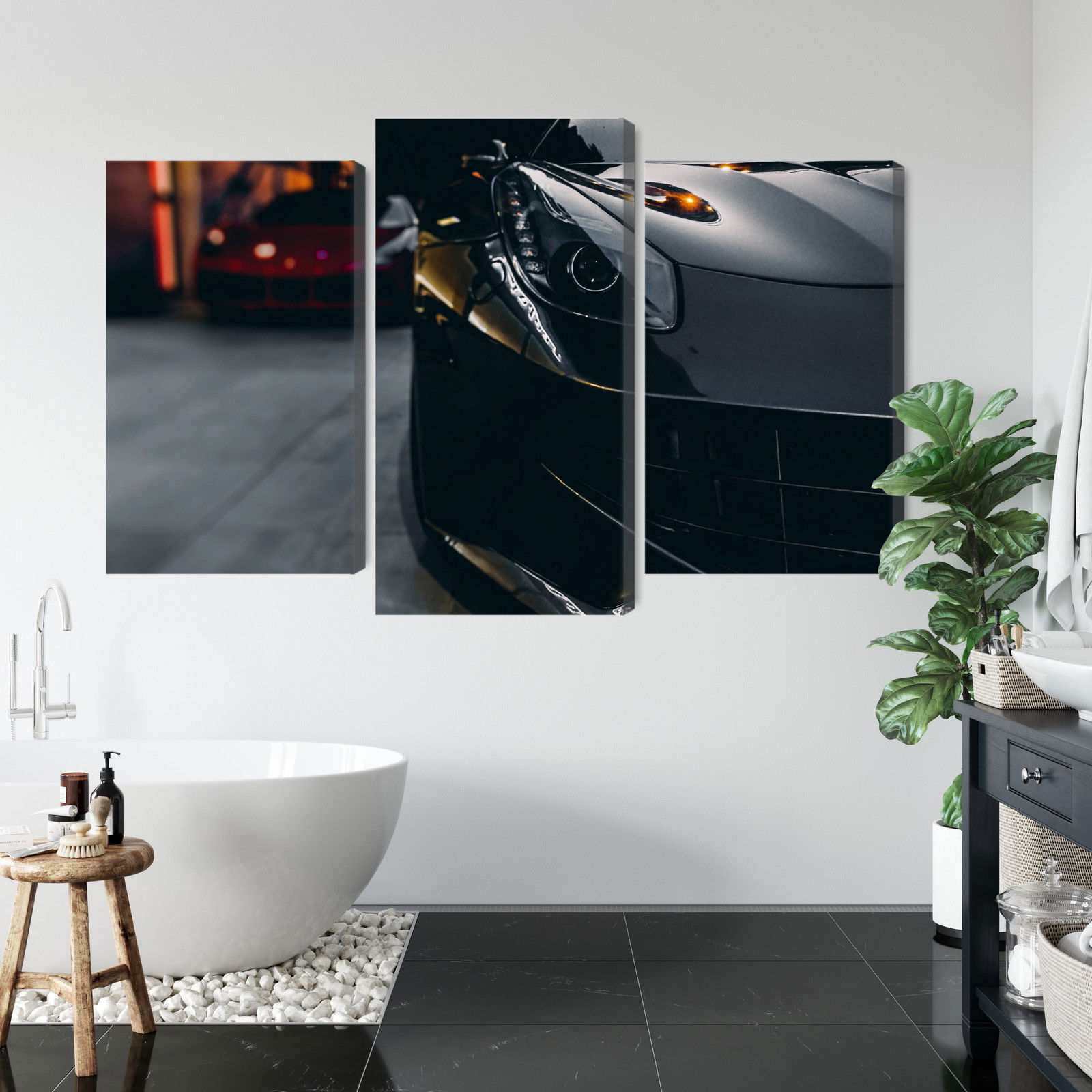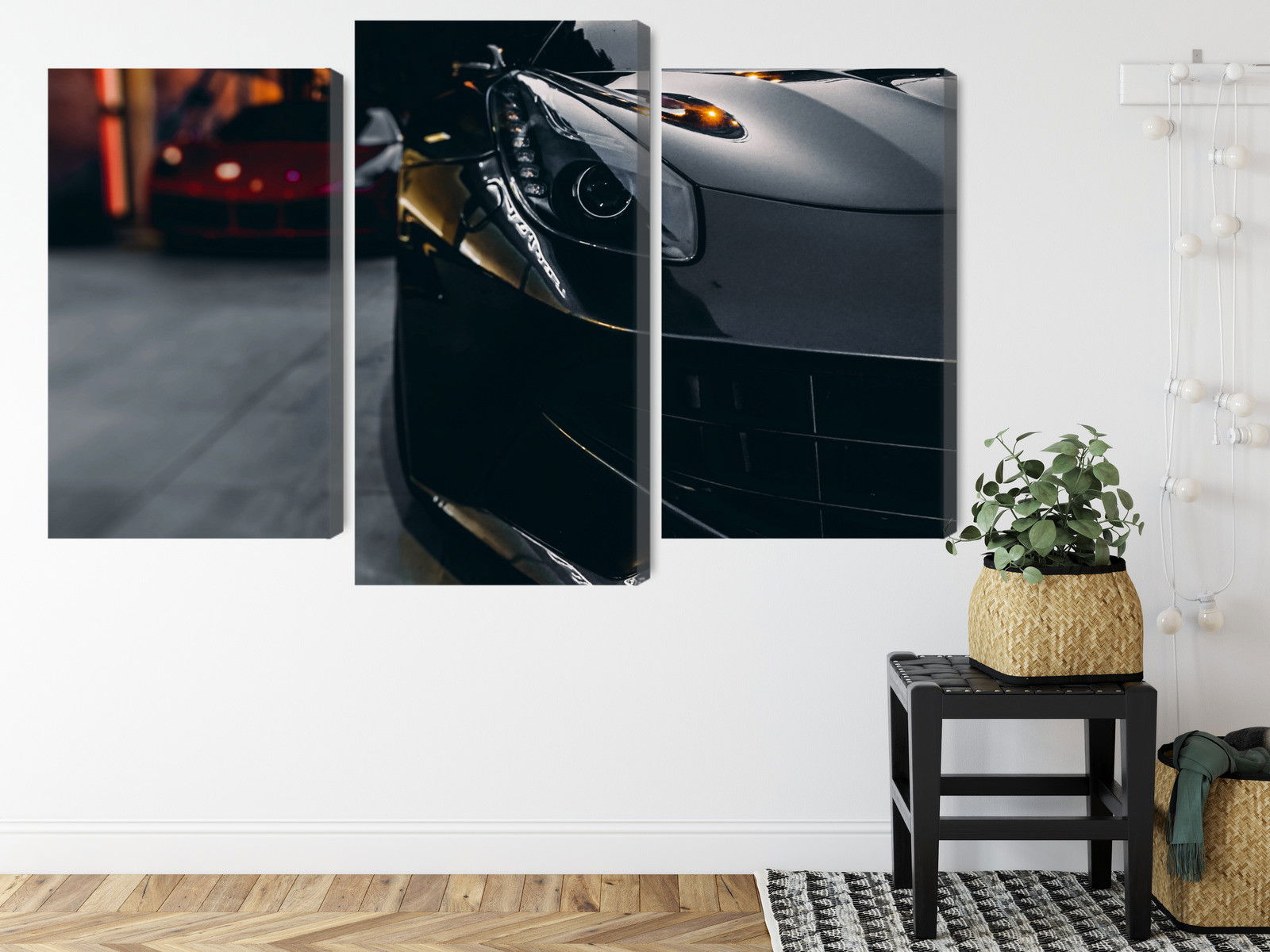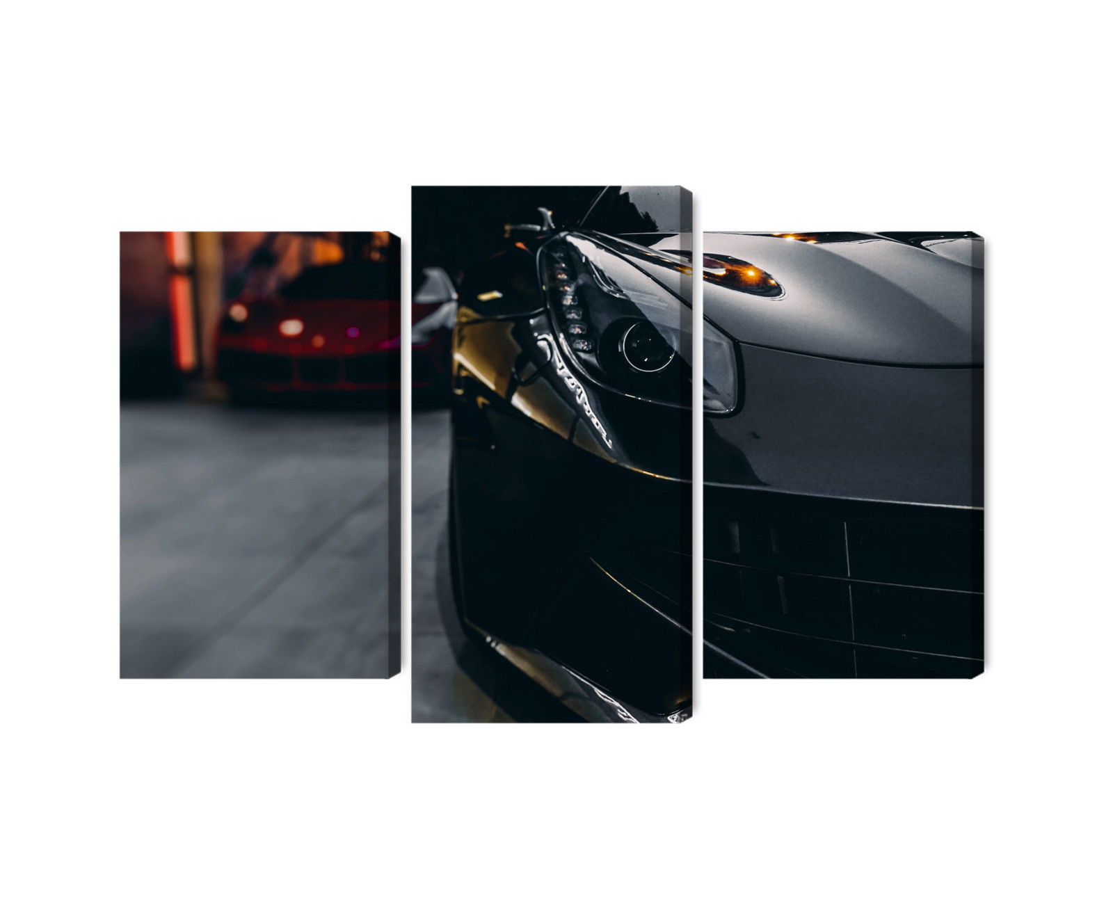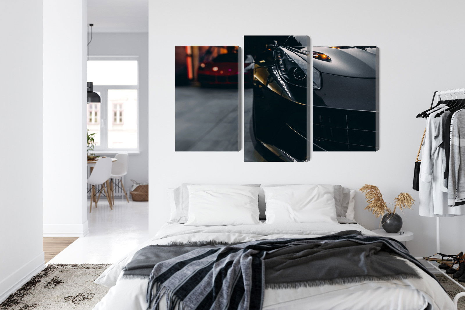 Ljuddämpande tavla – Front of a black sports car för lugnare rum och mjukare akustik