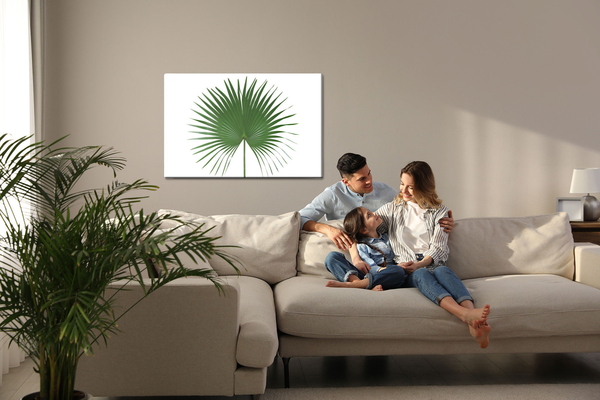 Varje tavla monteras på en massiv fururam. Format upp till 70×50 cm har en ram på 15 mm, medan format från 90×60 cm och uppåt har en ram på 20 mm. Den exakta dukspänningen gör att tavlan håller sin form över tid. Motivet Green leaf trycks runt hela ramen vilket ger ett stilrent galleriuttryck där tavlan är lika vacker från sidan som framifrån. Kombinationen av rak dukspänning, rena linjer och korrekt tryck ger en professionell finish.