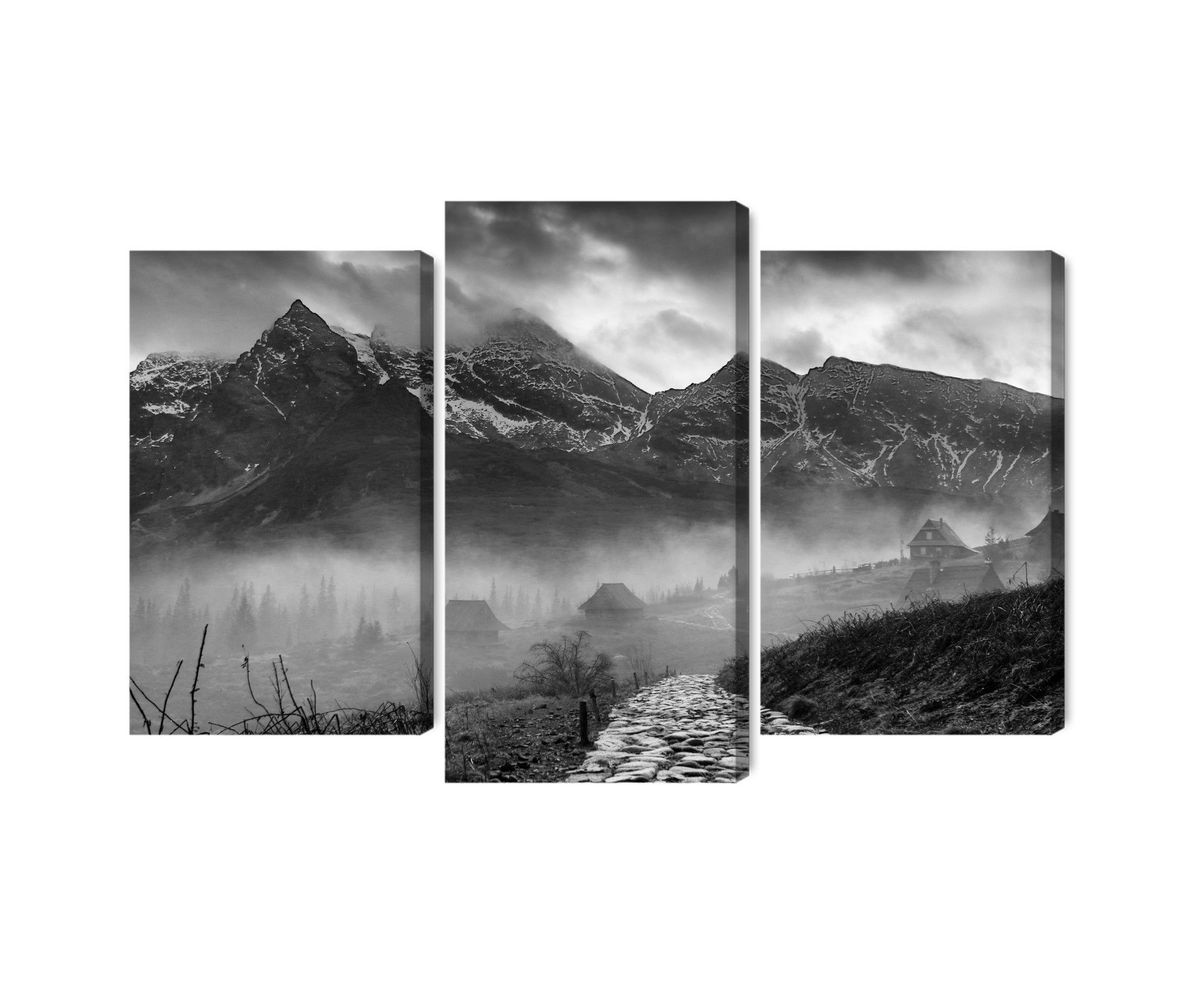 Varje tavla monteras på en massiv fururam. Format upp till 70×50 cm har en ram på 15 mm, medan format från 90×60 cm och uppåt har en ram på 20 mm. Den exakta dukspänningen gör att tavlan håller sin form över tid. Motivet Hala gasienicowa in black trycks runt hela ramen vilket ger ett stilrent galleriuttryck där tavlan är lika vacker från sidan som framifrån. Kombinationen av rak dukspänning, rena linjer och korrekt tryck ger en professionell finish.