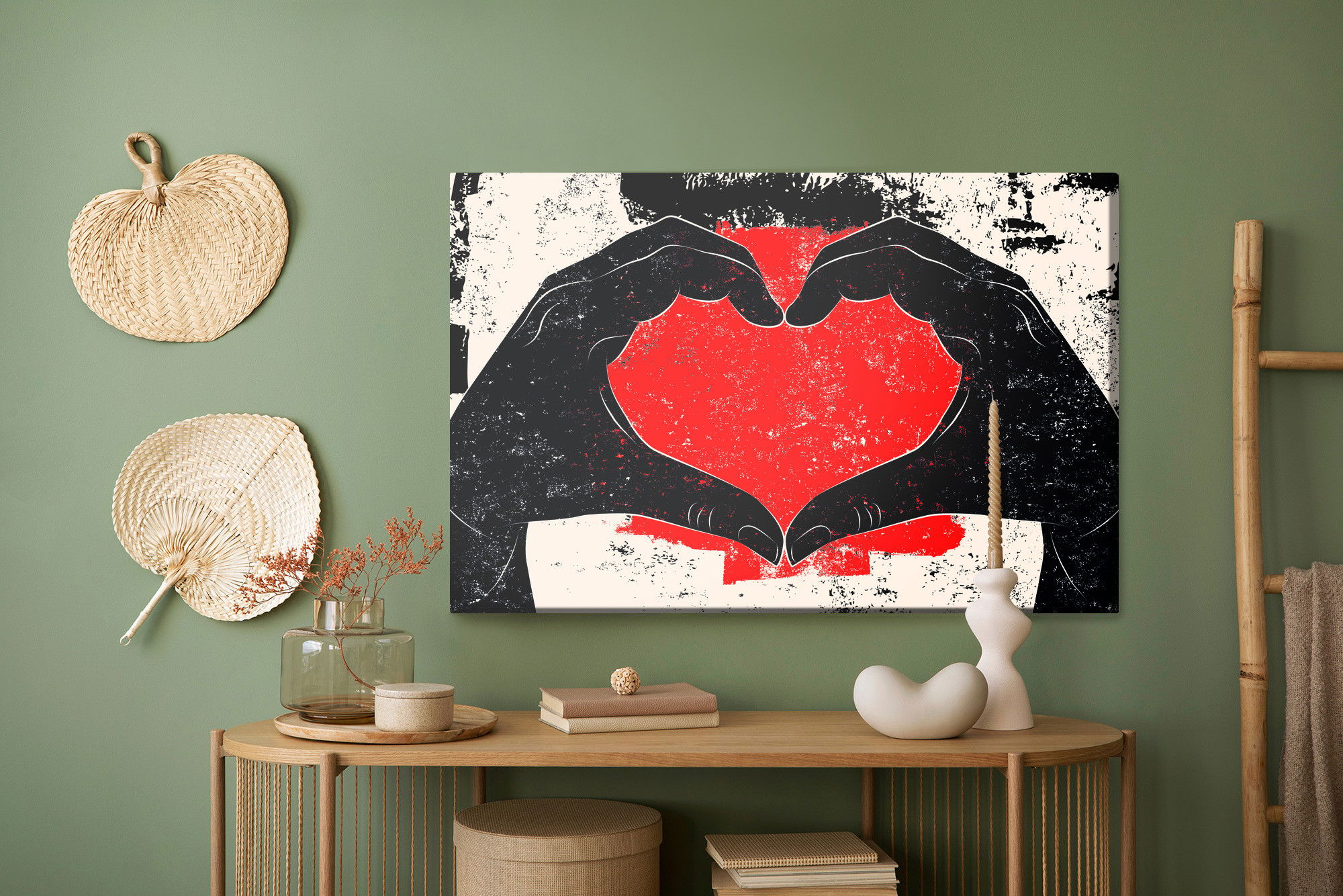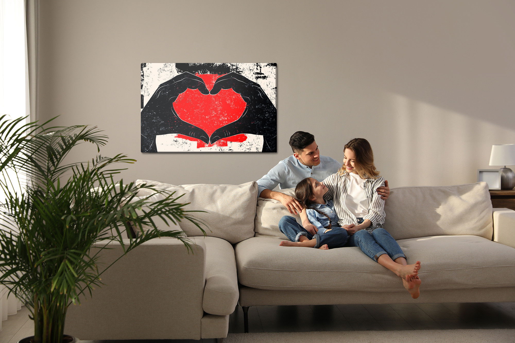 Motivet Hands arranged in a heart återges med hög färgprecision och detaljrikedom tack vare HP Latex-teknologi. Trycket sker med vattenbaserade, luktfria och GREENGUARD Gold-certifierade bläck som ger en upplösning på upp till 300 DPI. Färgerna är UV-beständiga och behåller sin styrka även i ljusa rum, vilket gör tavlan lämplig för både hem- och offentliga miljöer.
