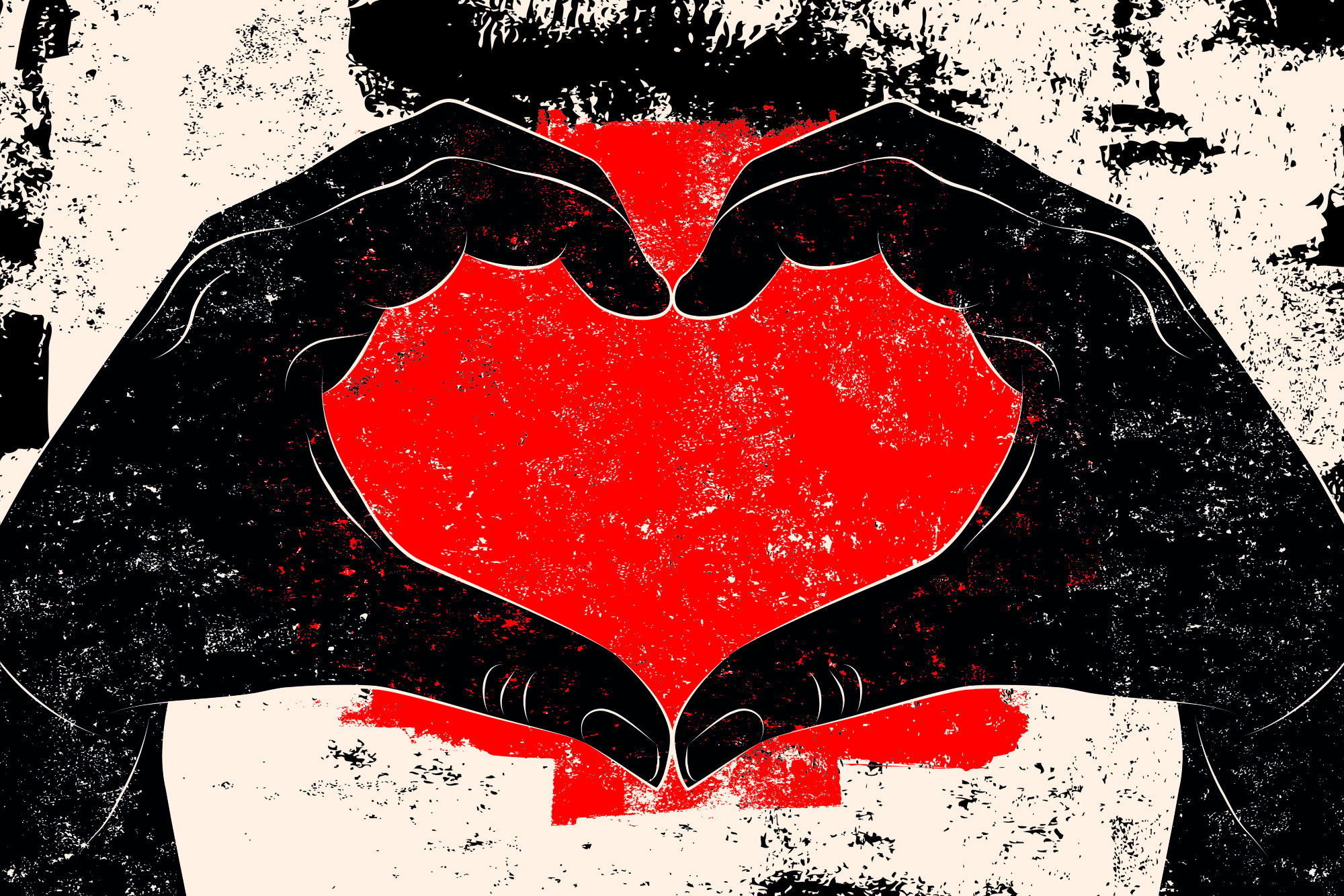 Ljuddämpande tavla – Hands arranged in a heart för lugnare rum och mjukare akustik