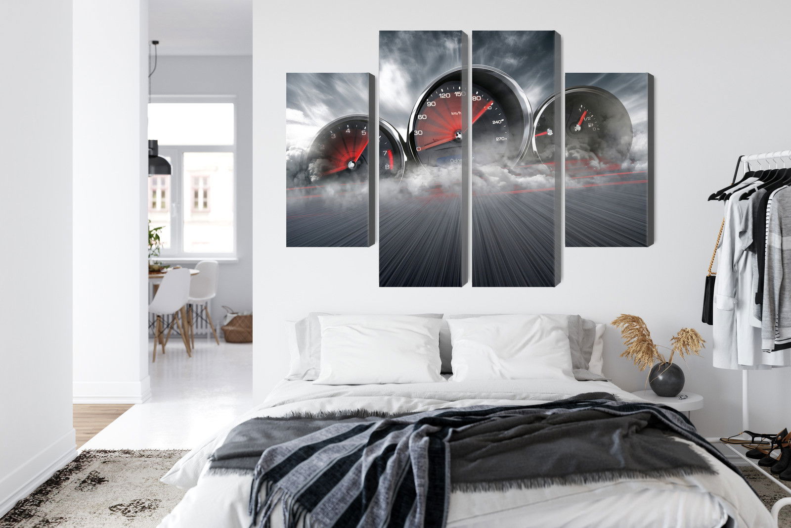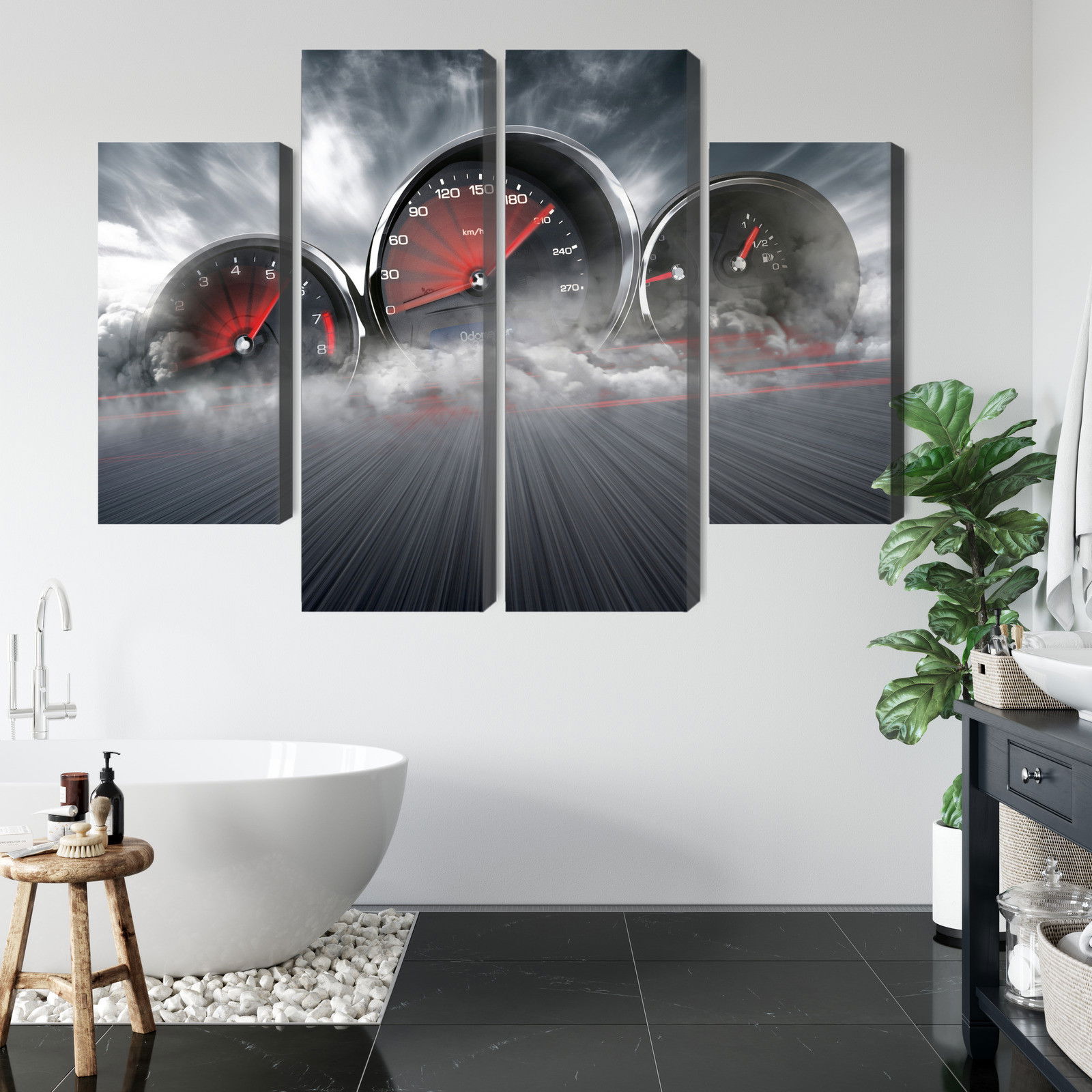 Motivet High speed car counters återges med hög färgprecision och detaljrikedom tack vare HP Latex-teknologi. Trycket sker med vattenbaserade, luktfria och GREENGUARD Gold-certifierade bläck som ger en upplösning på upp till 300 DPI. Färgerna är UV-beständiga och behåller sin styrka även i ljusa rum, vilket gör tavlan lämplig för både hem- och offentliga miljöer.