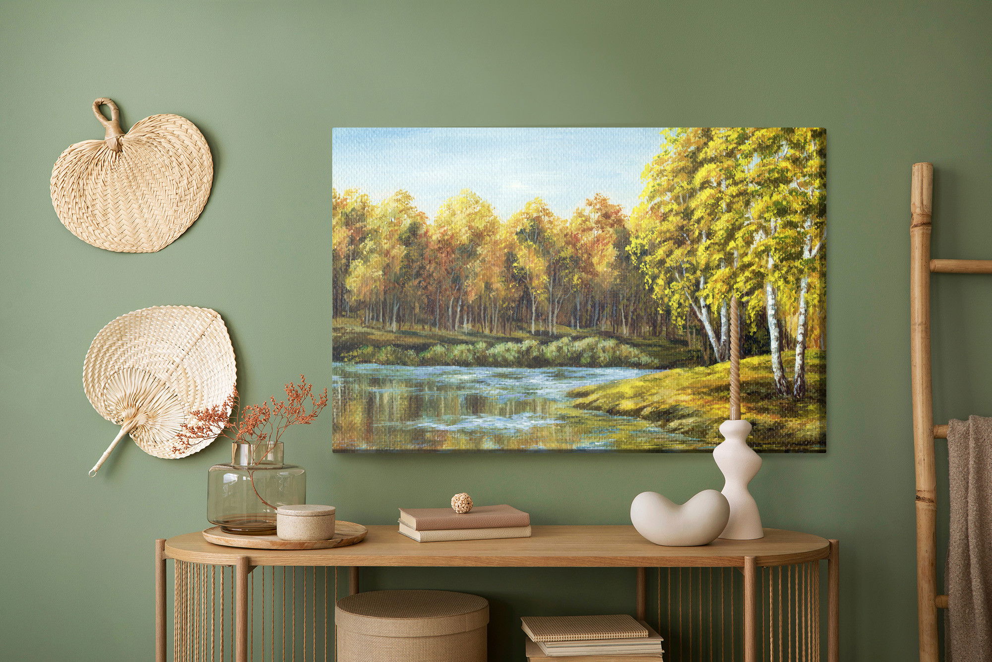 Ljuddämpande tavla – Landscape with a lake för lugnare rum och mjukare akustik