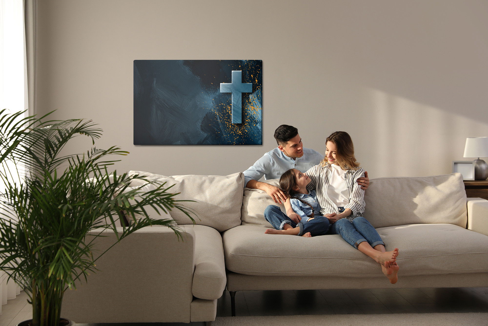 Varje tavla monteras på en massiv fururam. Format upp till 70×50 cm har en ram på 15 mm, medan format från 90×60 cm och uppåt har en ram på 20 mm. Den exakta dukspänningen gör att tavlan håller sin form över tid. Motivet Latin cross trycks runt hela ramen vilket ger ett stilrent galleriuttryck där tavlan är lika vacker från sidan som framifrån. Kombinationen av rak dukspänning, rena linjer och korrekt tryck ger en professionell finish.