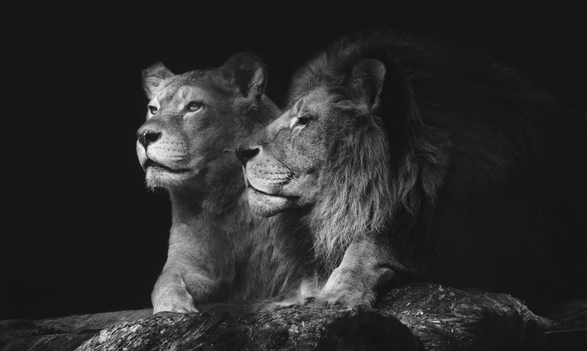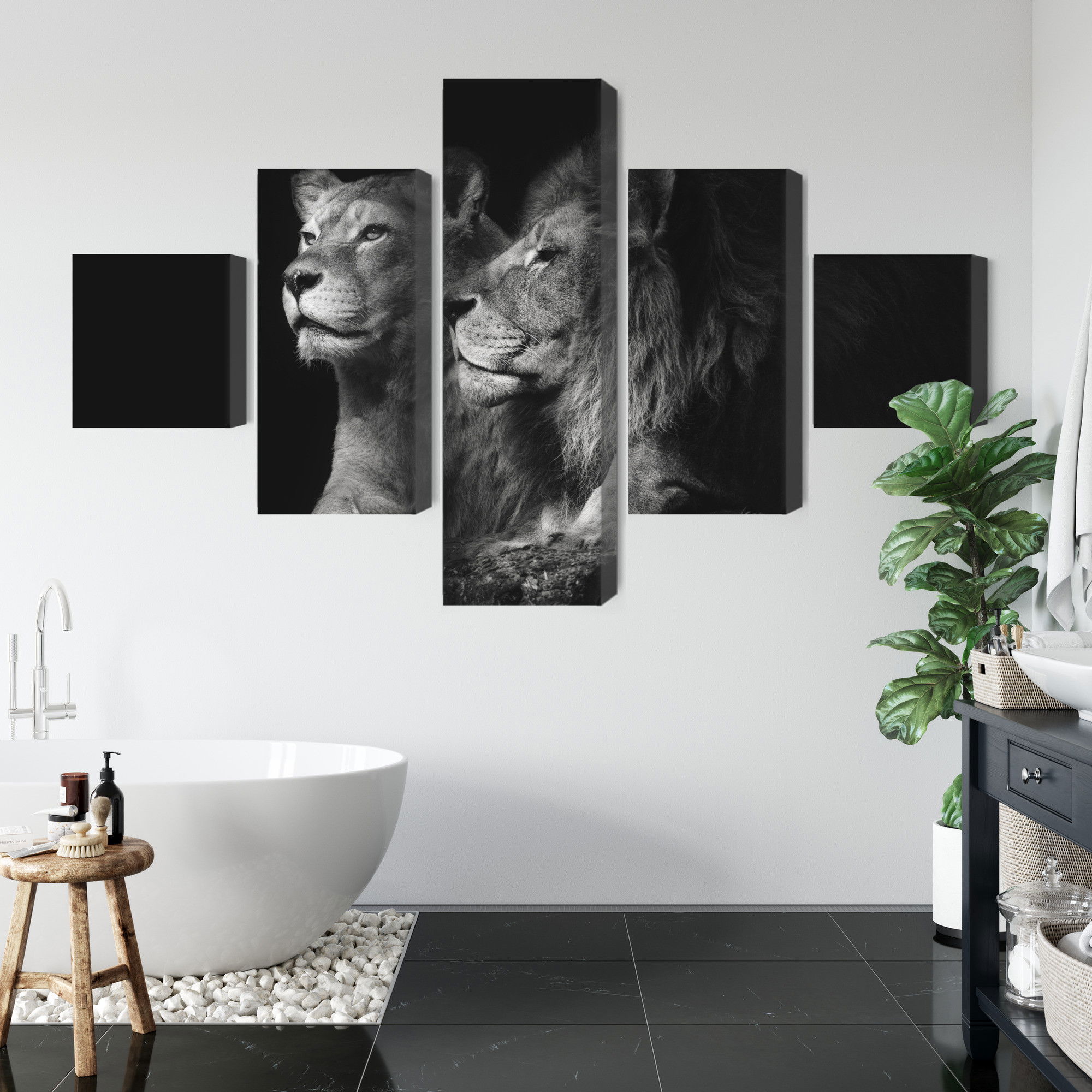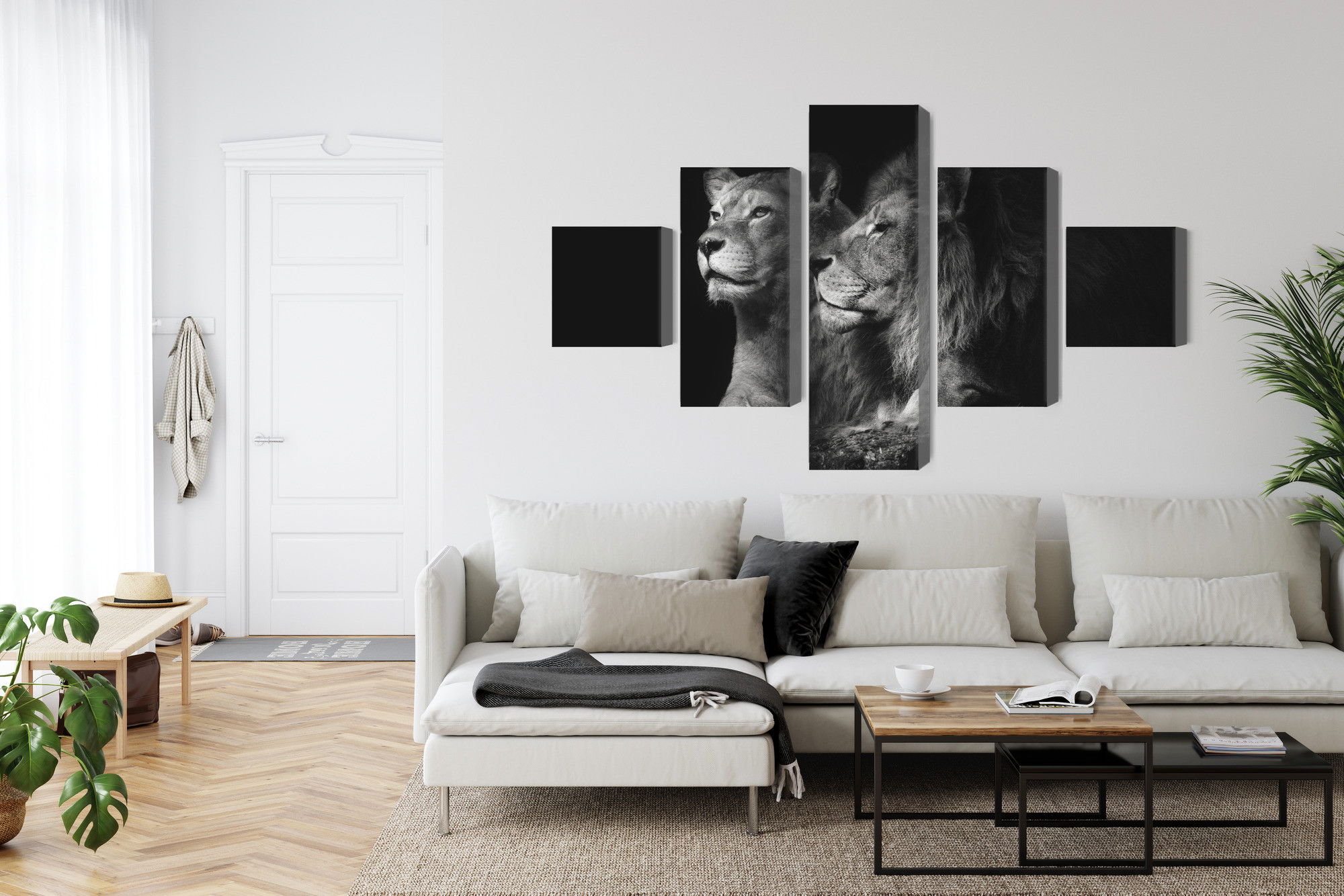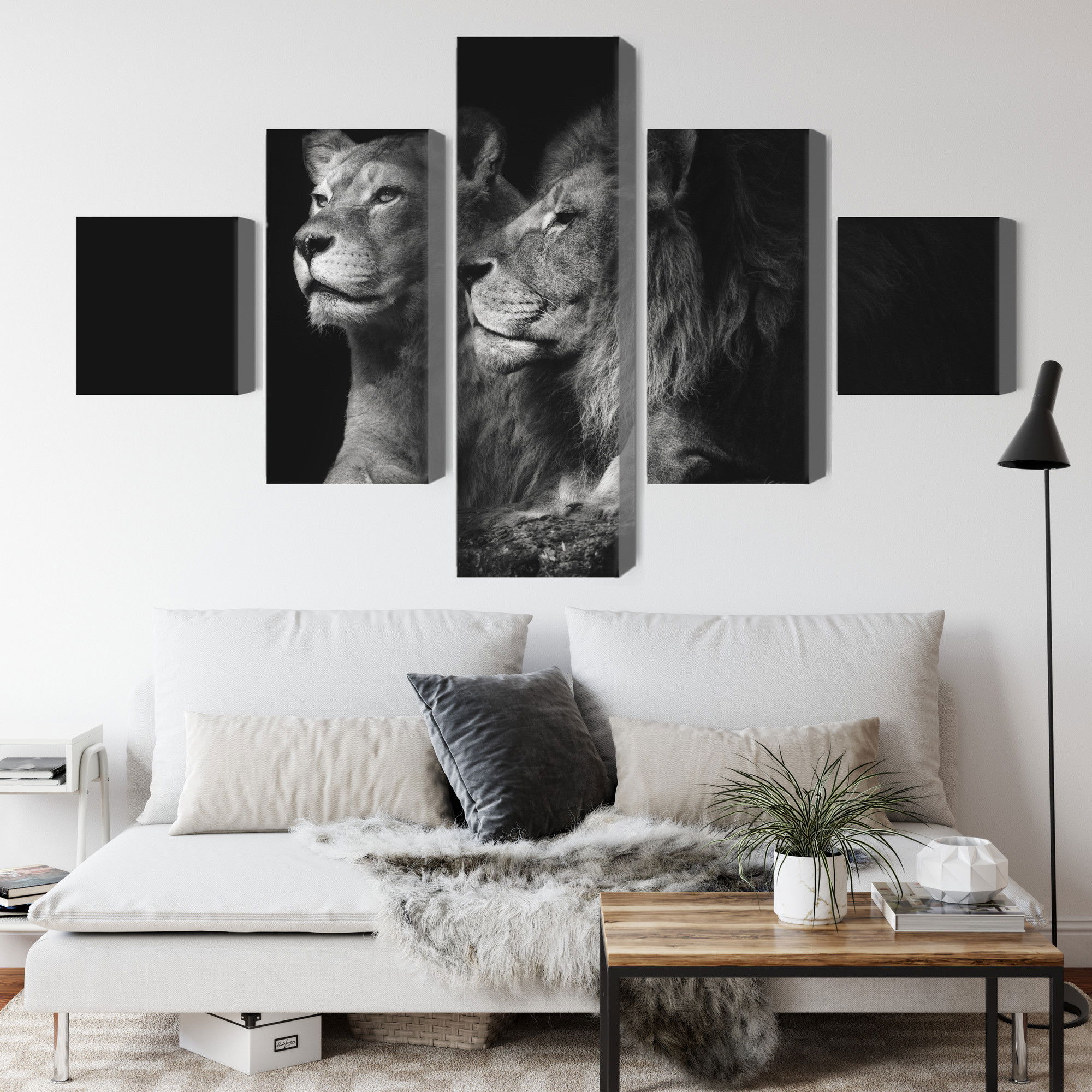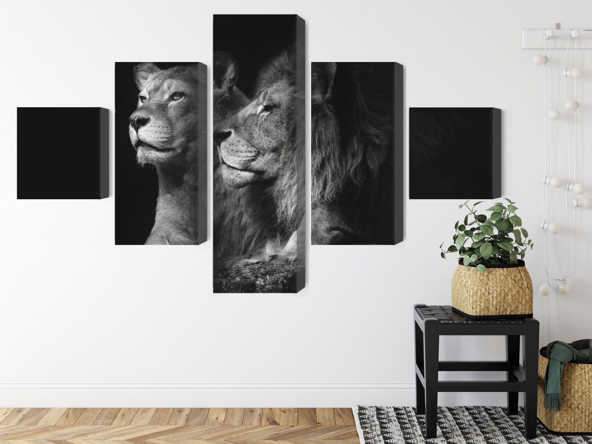 Ljuddämpande tavla – Lion and lioness on a black för lugnare rum och mjukare akustik