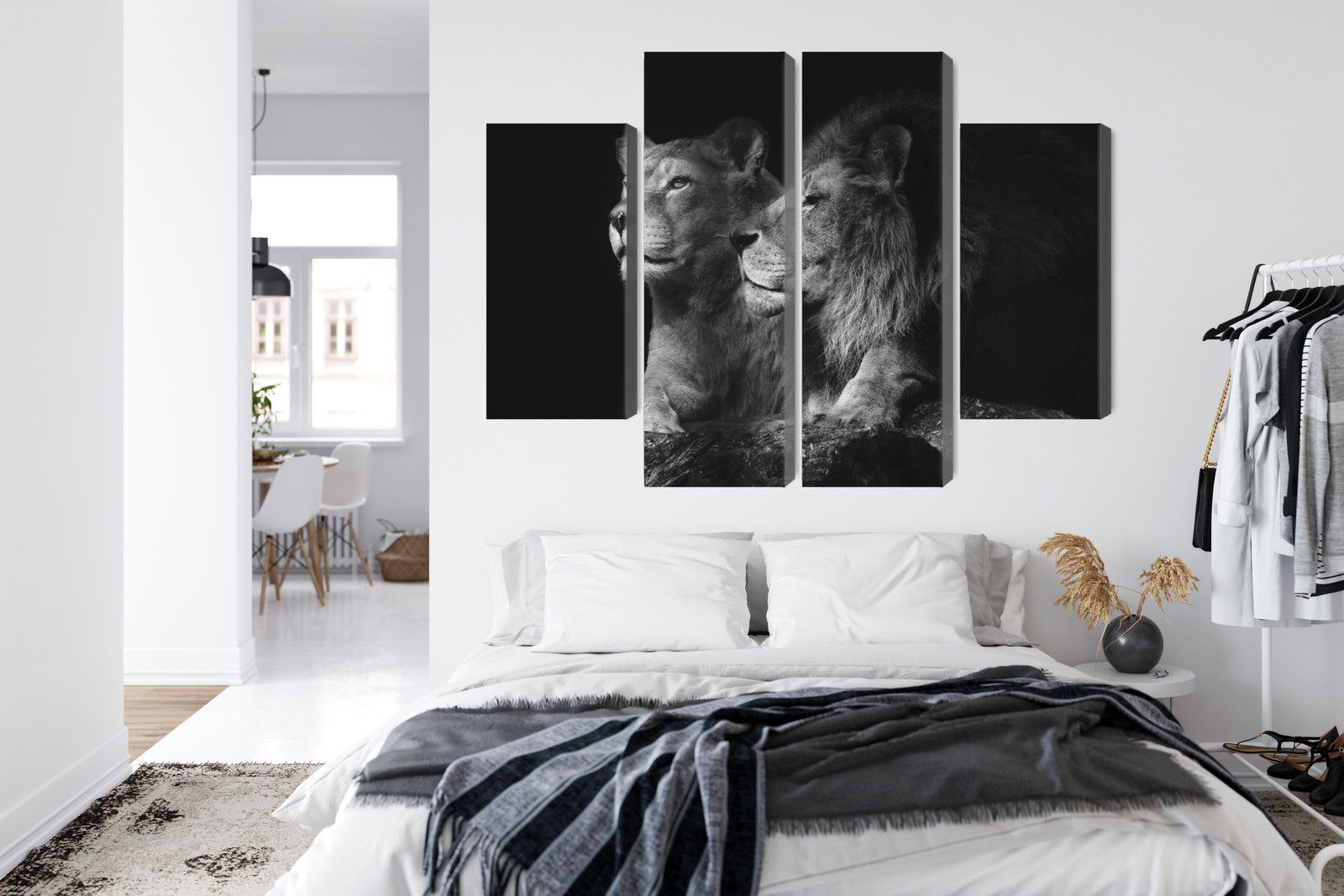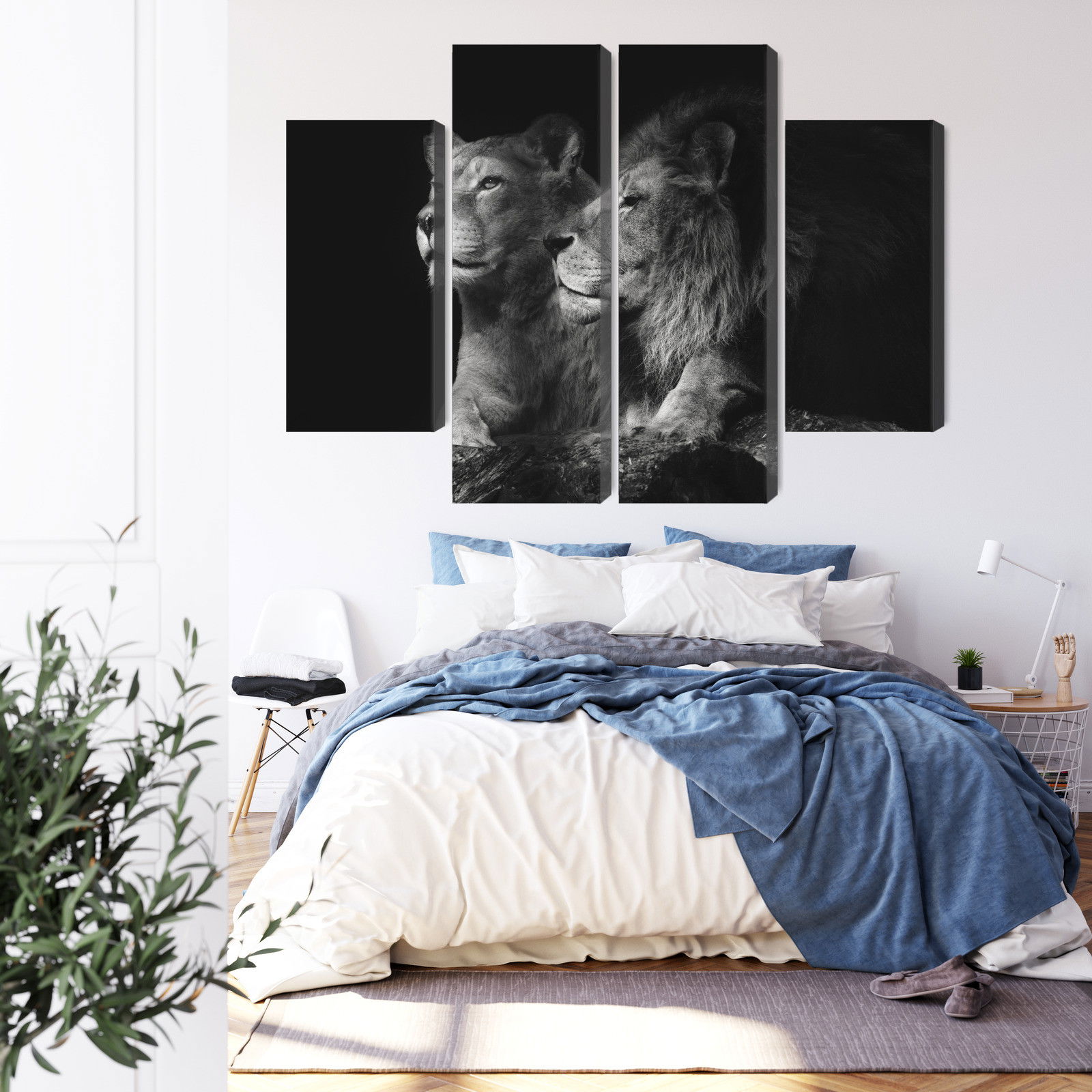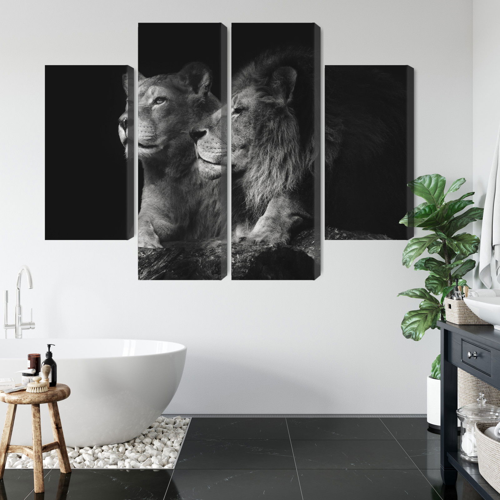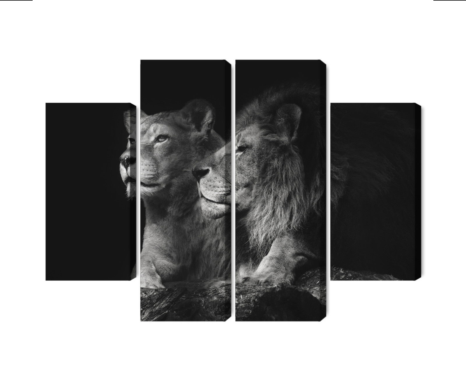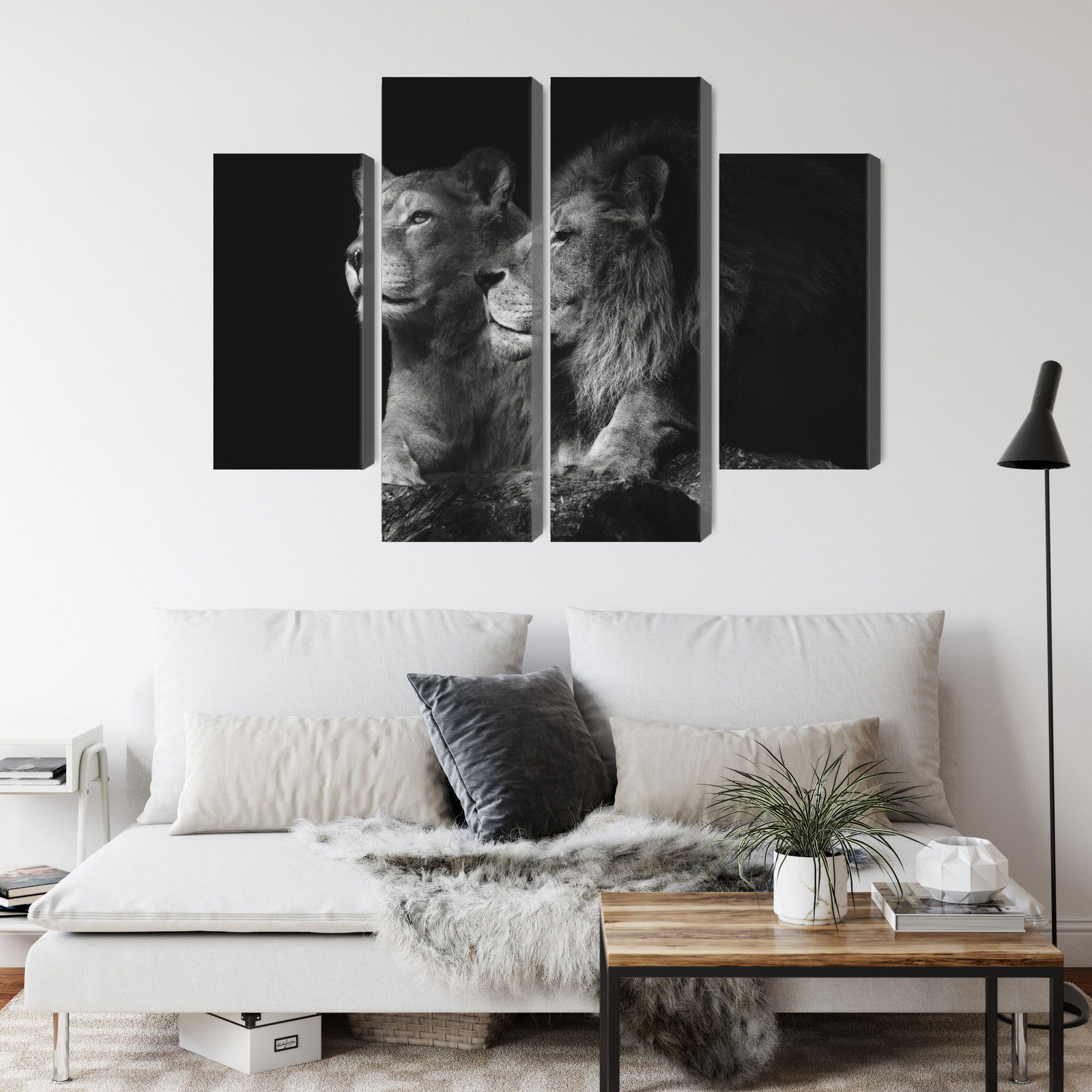 Ljuddämpande tavla – Lion and lioness on a black för lugnare rum och mjukare akustik
