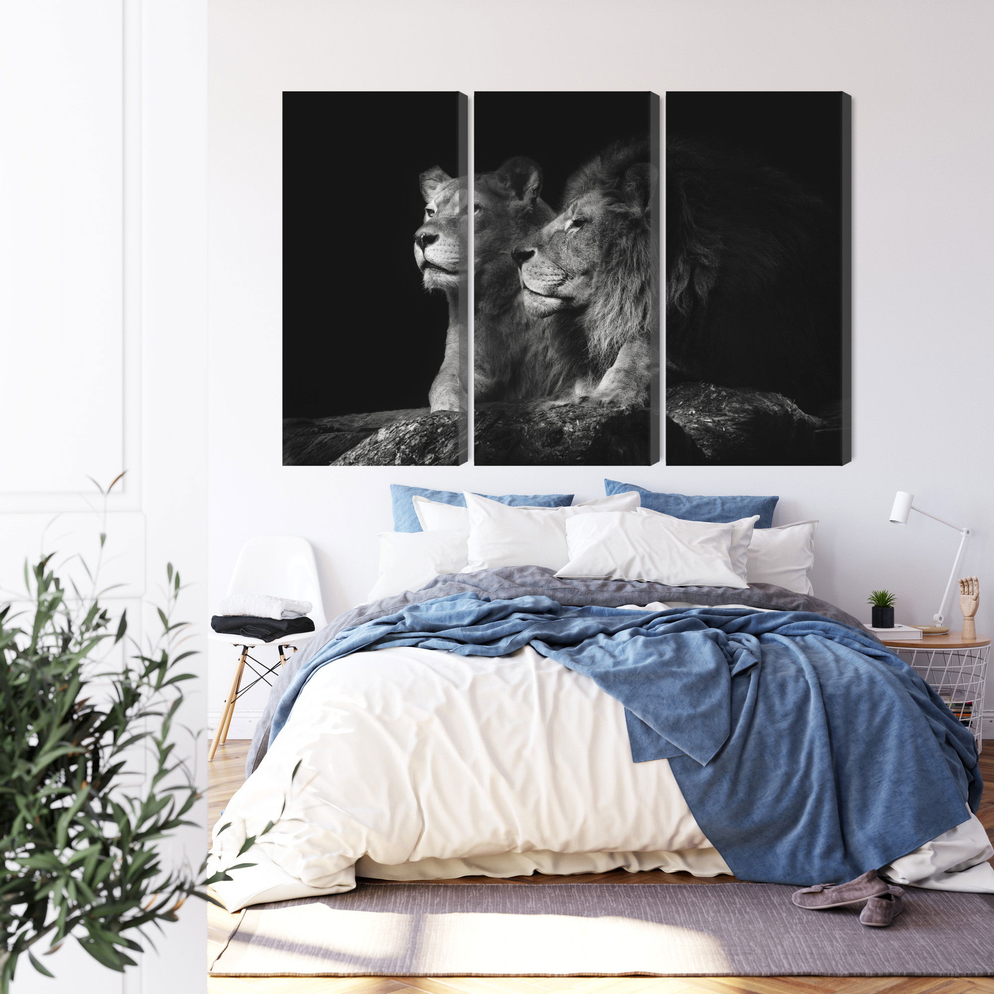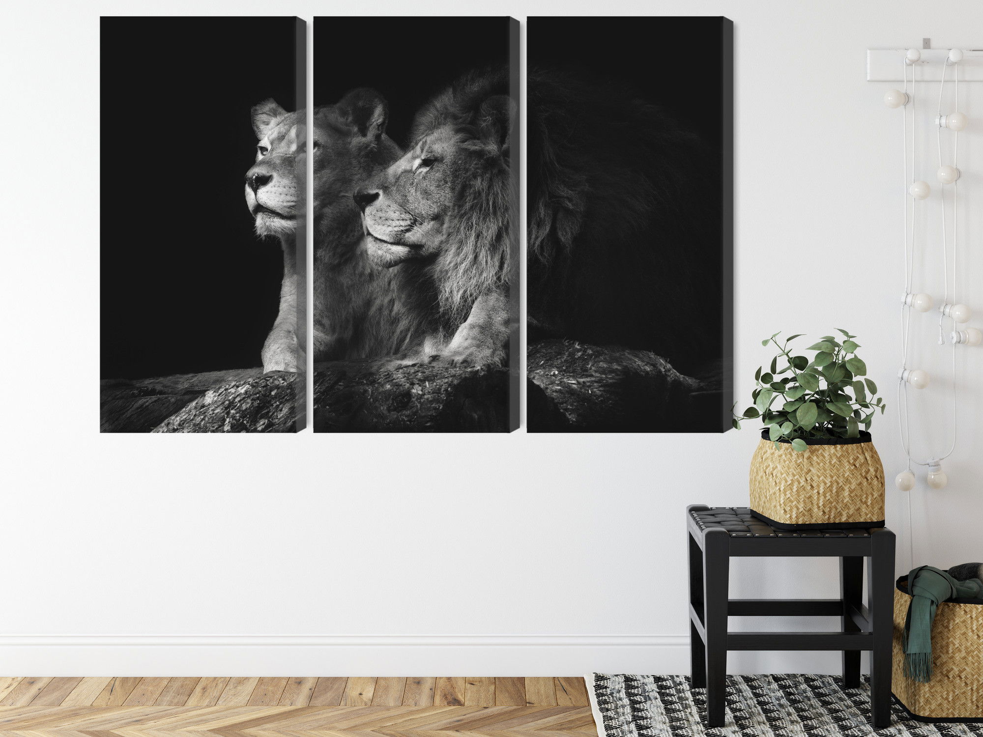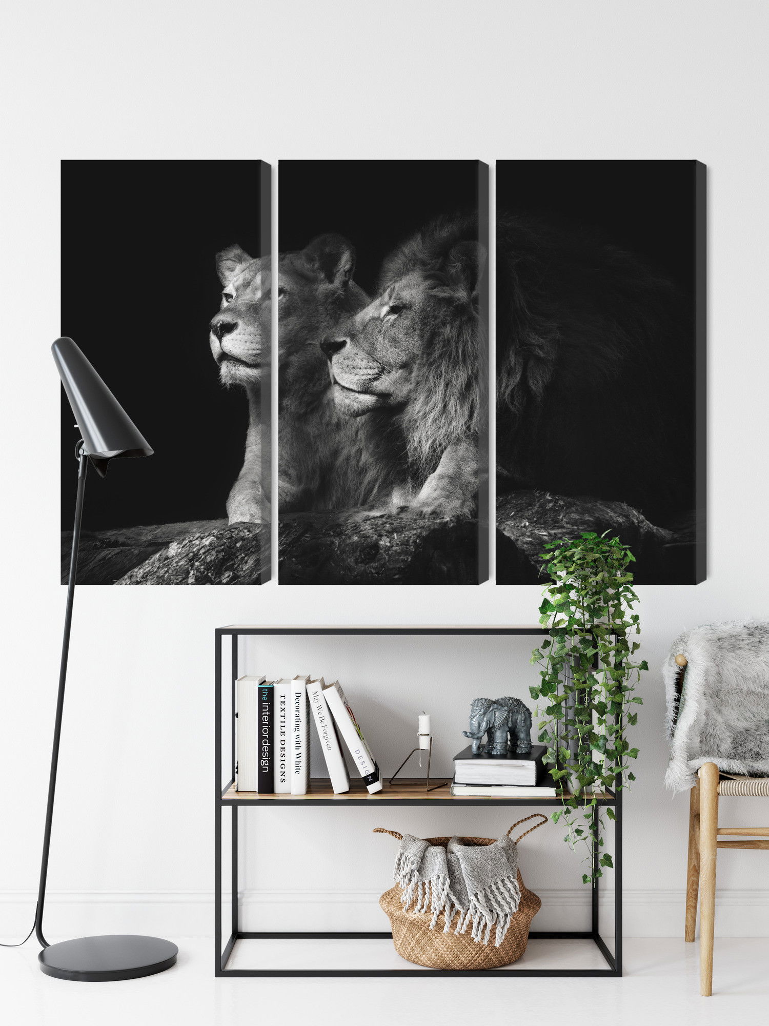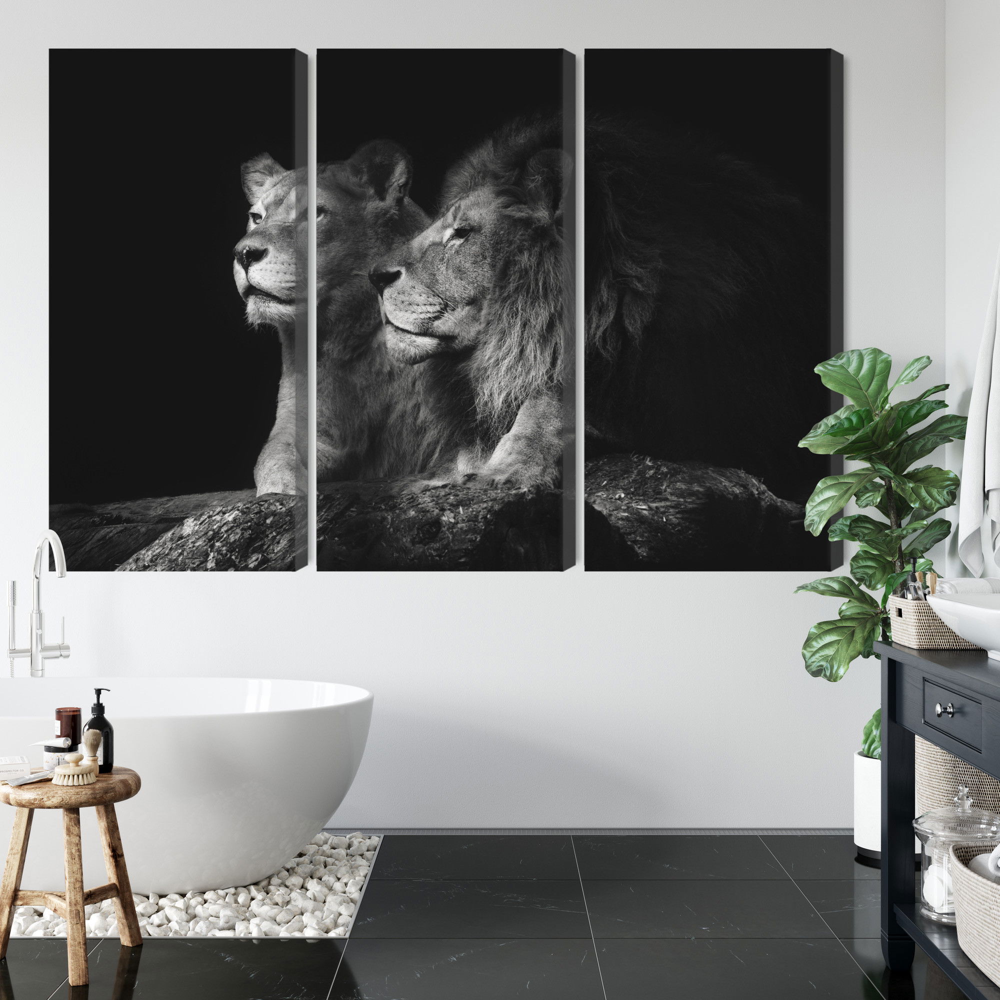 Ljuddämpande tavla – Lion and lioness on a black för lugnare rum och mjukare akustik