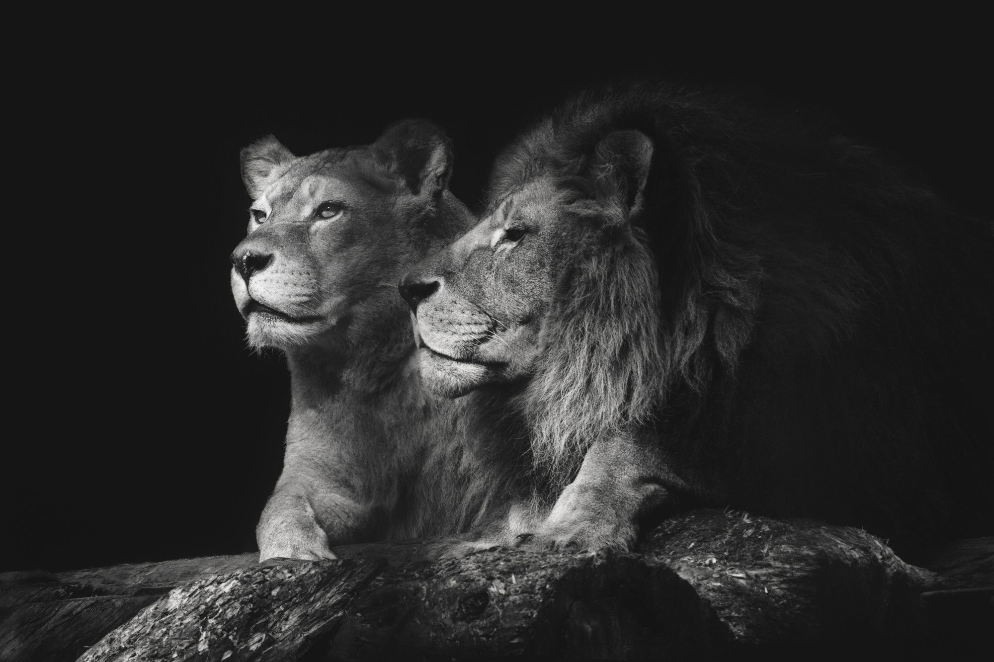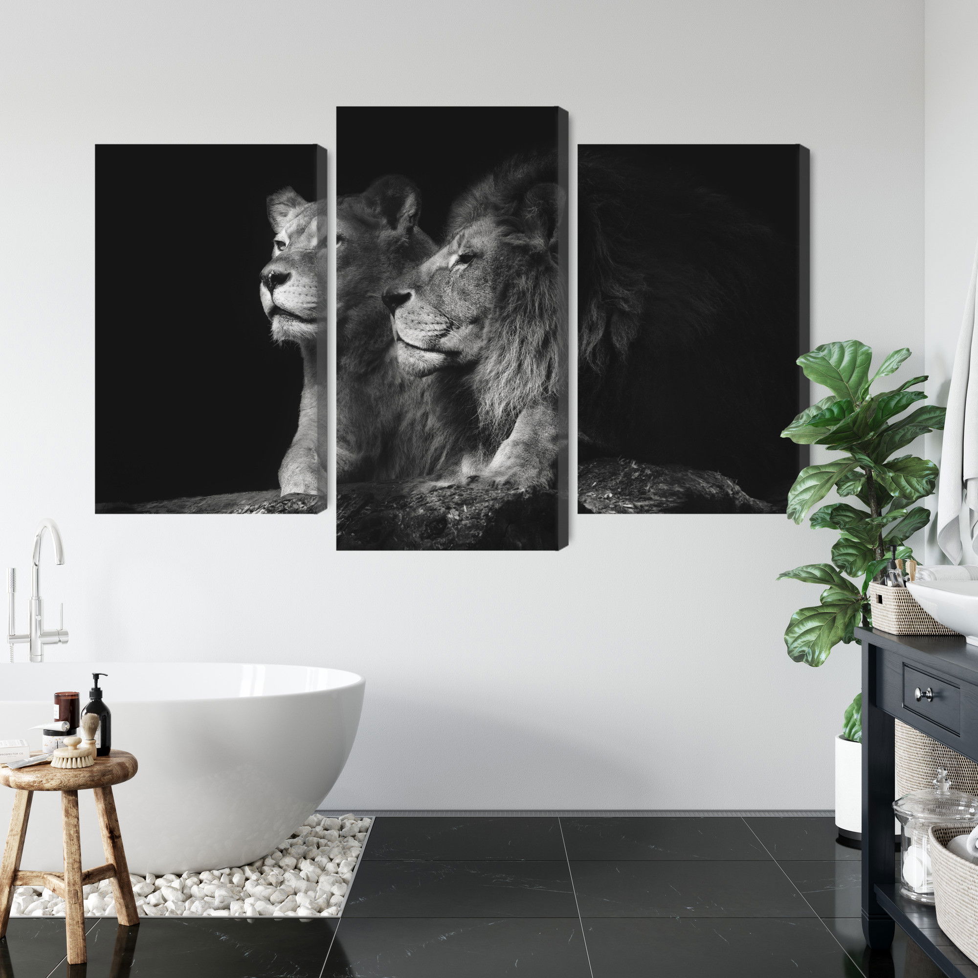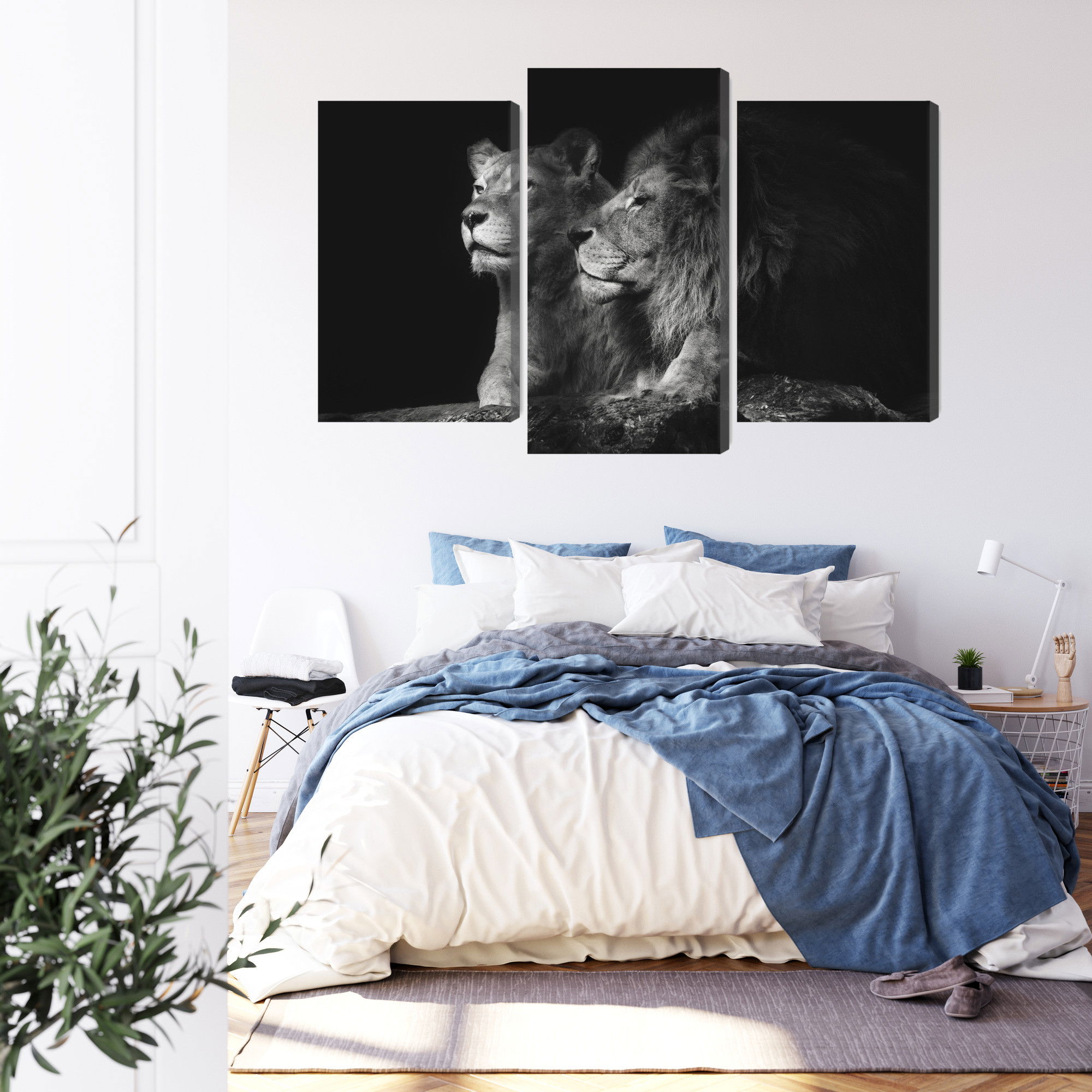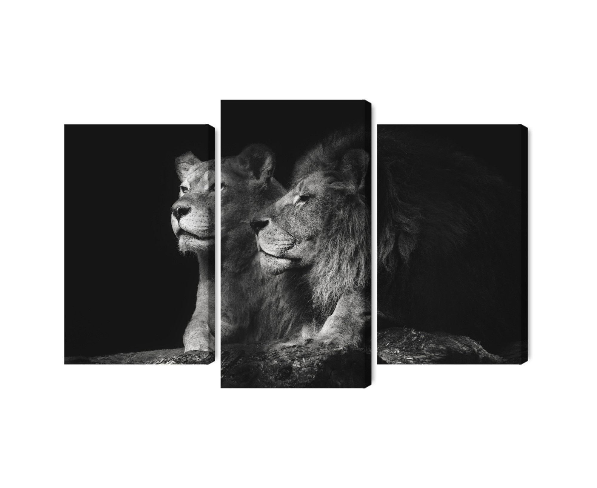 Ljuddämpande tavla – Lion and lioness on a black för lugnare rum och mjukare akustik