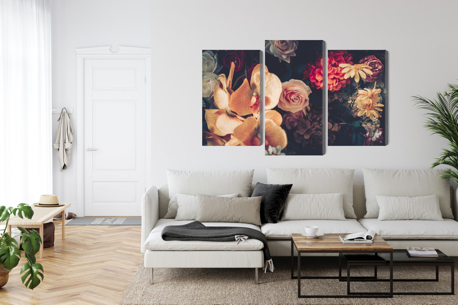 Motivet Multi-colored flowers återges med hög färgprecision och detaljrikedom tack vare HP Latex-teknologi. Trycket sker med vattenbaserade, luktfria och GREENGUARD Gold-certifierade bläck som ger en upplösning på upp till 300 DPI. Färgerna är UV-beständiga och behåller sin styrka även i ljusa rum, vilket gör tavlan lämplig för både hem- och offentliga miljöer.