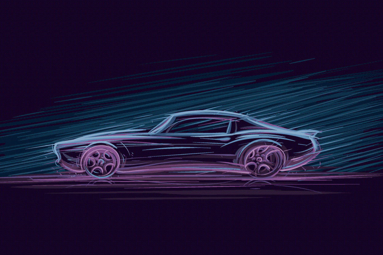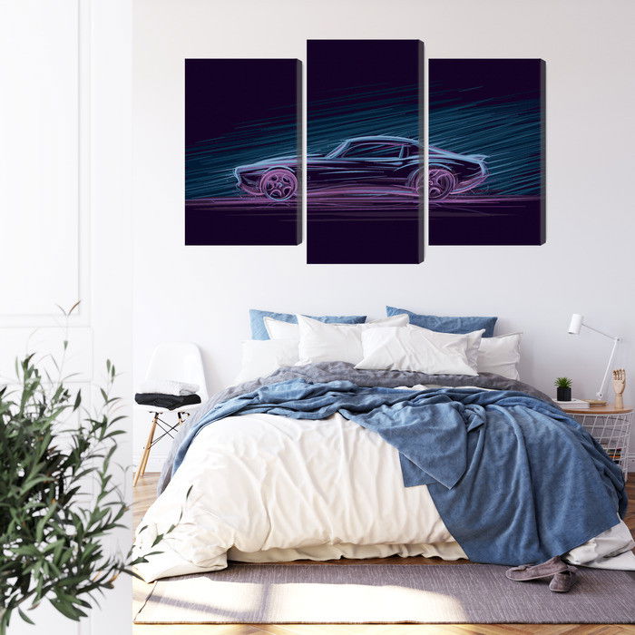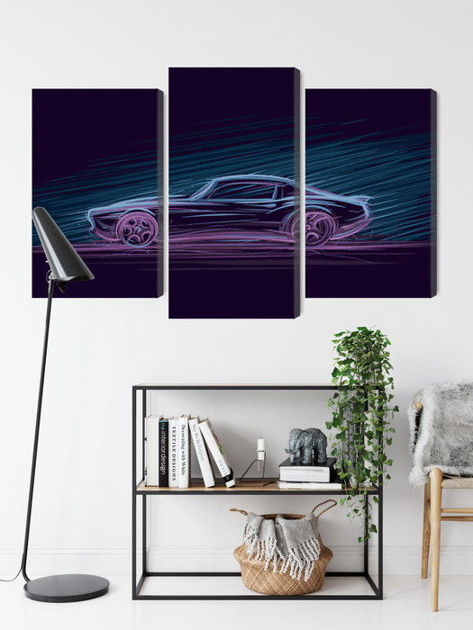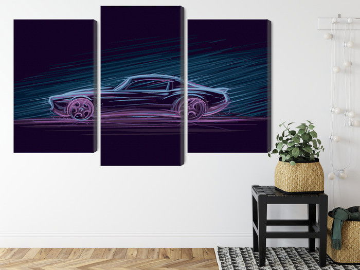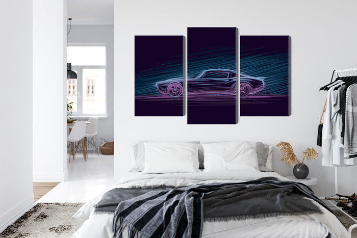 Ljuddämpande tavla – Neon muscle car för lugnare rum och mjukare akustik