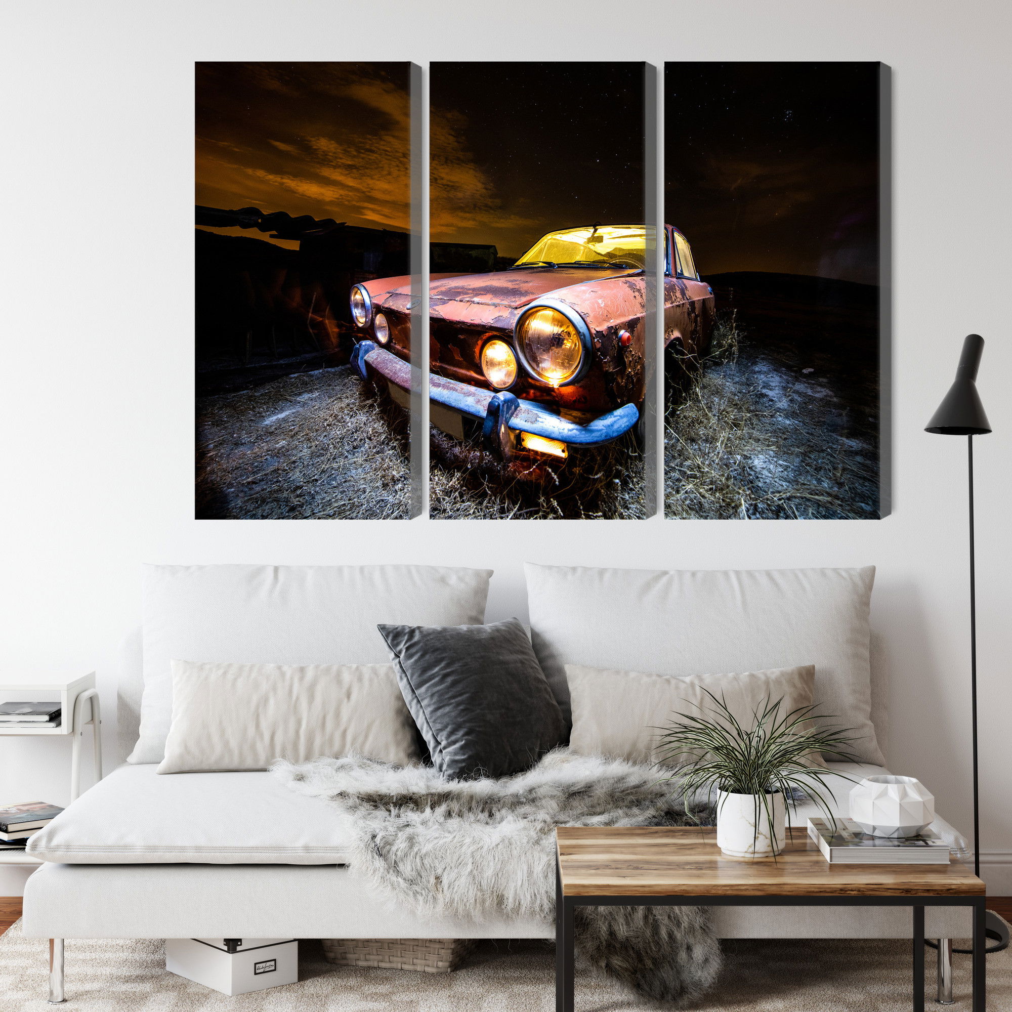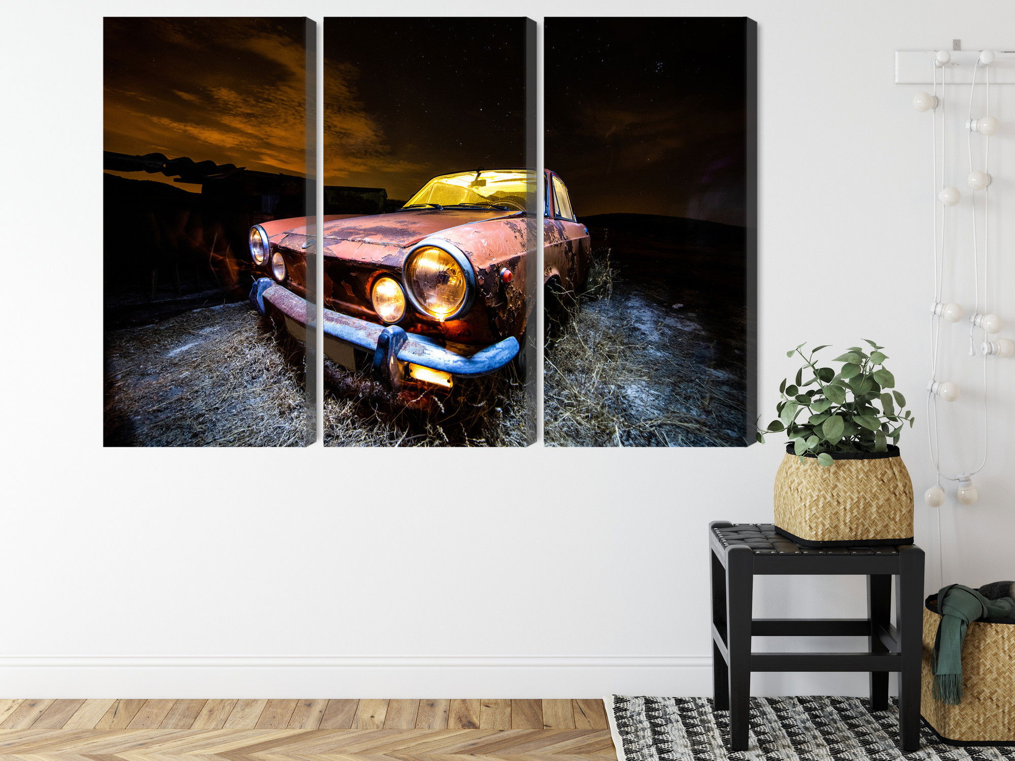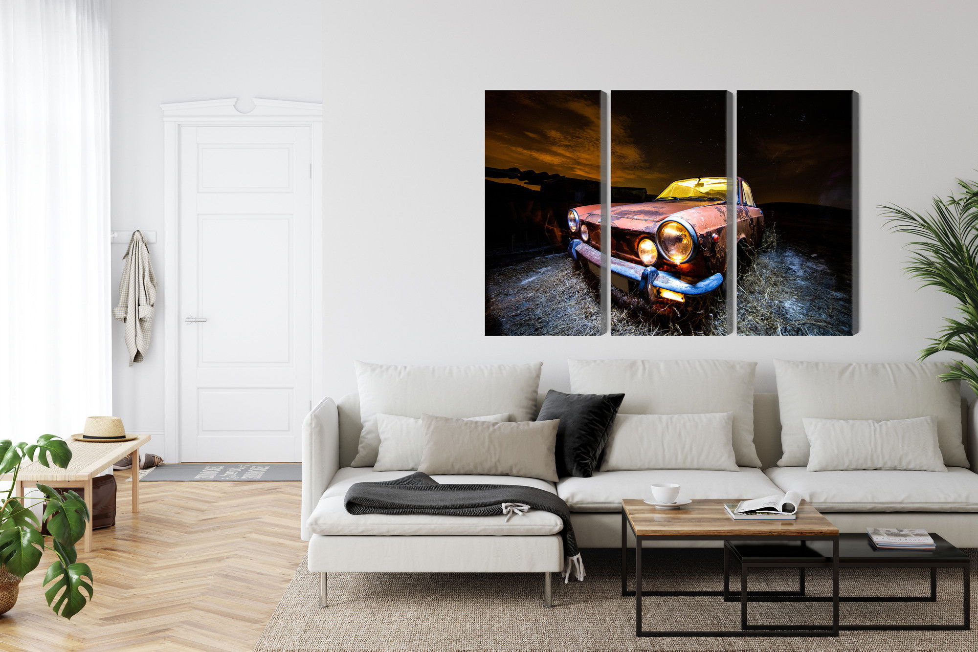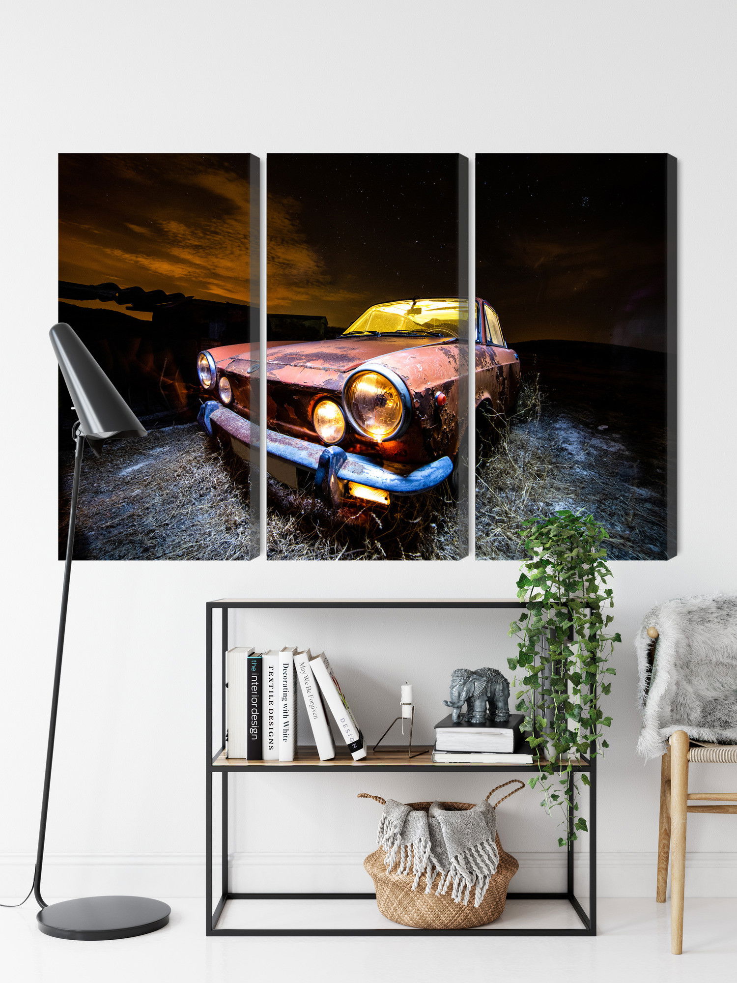 Ljuddämpande tavla – Old abandoned car 3d för lugnare rum och mjukare akustik