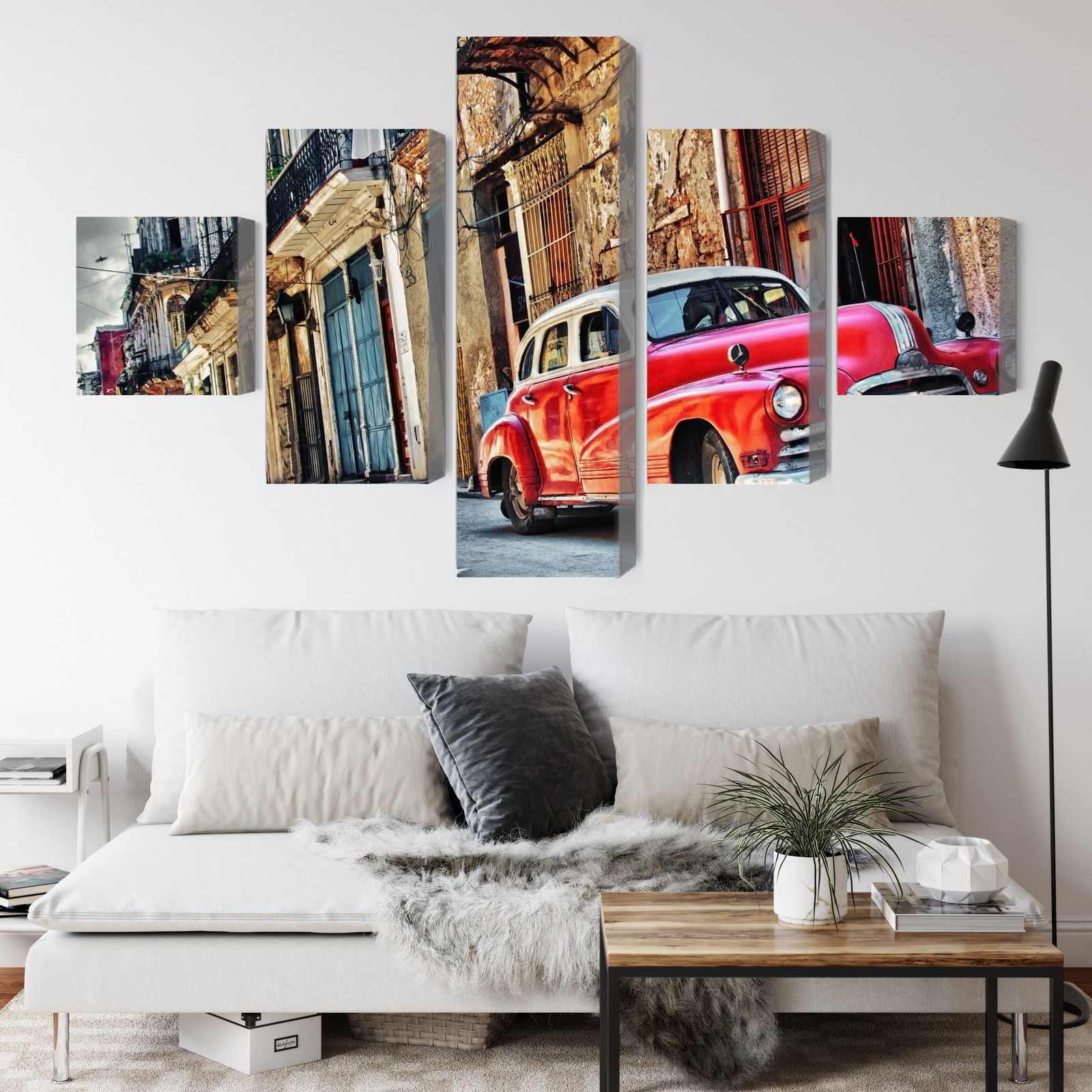 Ljuddämpande tavla – Old american car and havana för lugnare rum och mjukare akustik