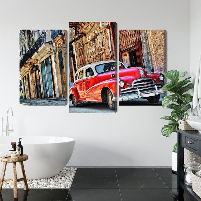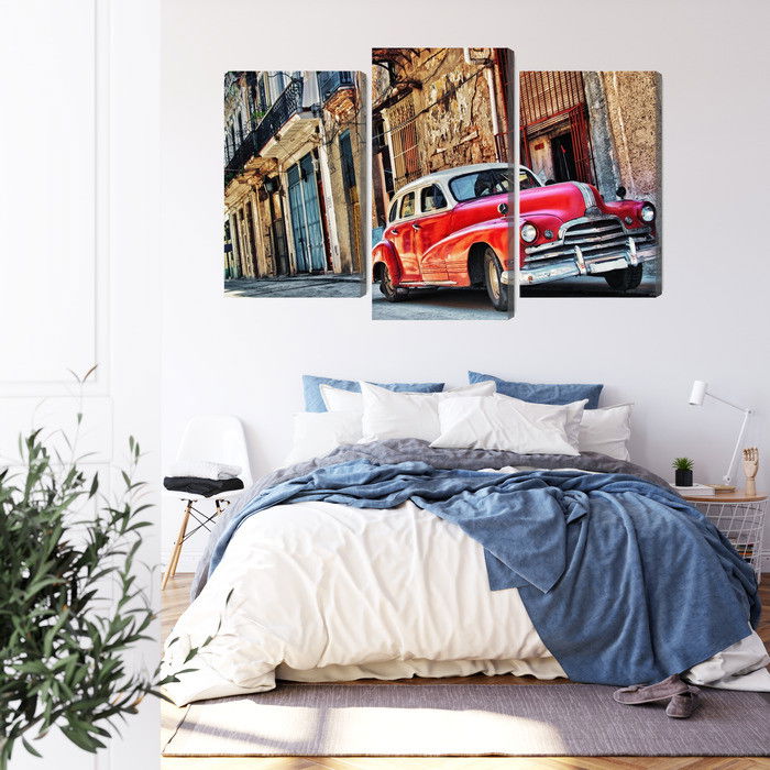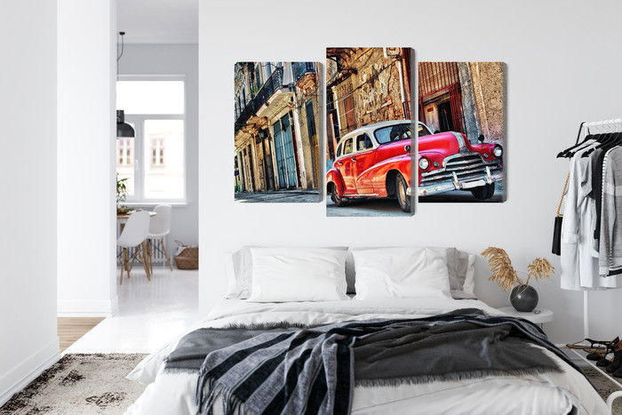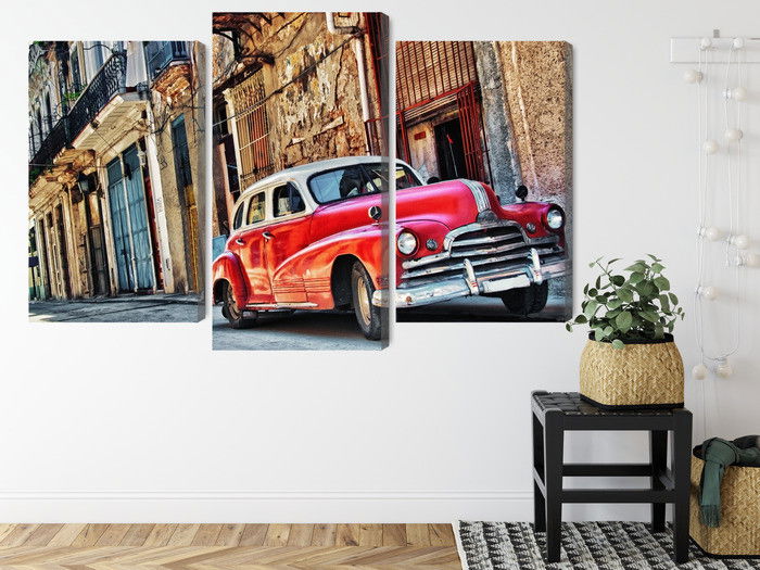 Ljuddämpande tavla – Old american car and havana för lugnare rum och mjukare akustik