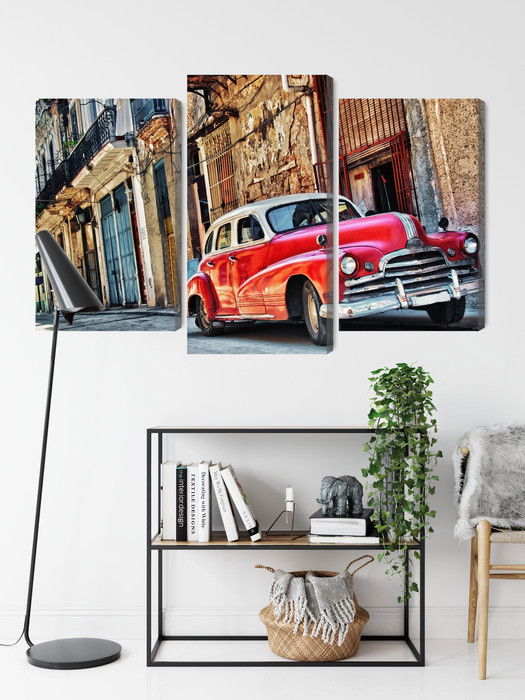 SilentDirects ljuddämpande tavla Old american car and havana kombinerar ett högupplöst motiv med avancerad akustikteknik. Varje tavla monteras i Sverige och bygger på en stabil canvastavla med fururam, där insidan av ramen fylls med en ljudabsorberande kärna av återvunnen polyester. Konstruktionen gör tavlan till ett både estetiskt och funktionellt inslag i rummet.