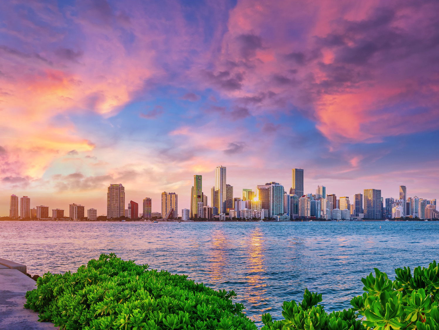 Ljuddämpande tavla – Panorama of miami during för lugnare rum och mjukare akustik